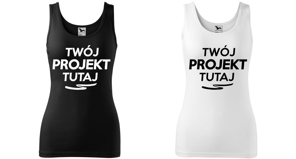 damska koszulka bez rękawów (tank top) - własny nadruk, napis, zdjęcie, logo, dowolna grafika