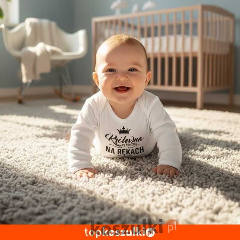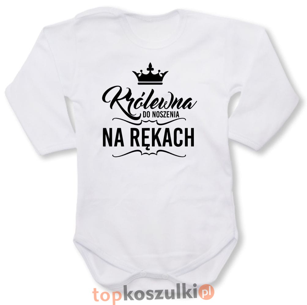 Urocze body niemowlęce z napisem "Królewna Do Noszenia Na Rękach" i koroną. Must-have dla każdej małej księżniczki! 100% miękka bawełna, długi rękaw. Wygodne i stylowe – idealne na prezent. Kup teraz!