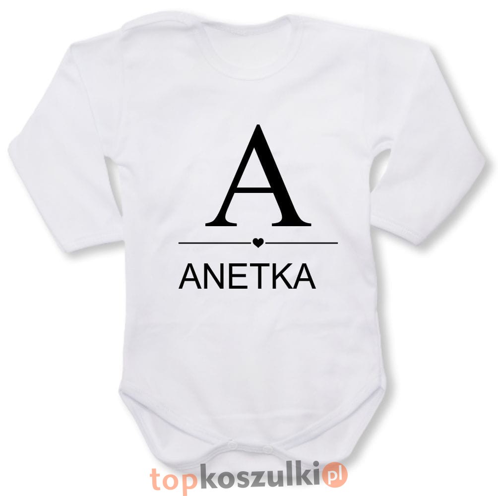 Dziecięce body z dł. rękawem - pierwsza litera imienia + imię