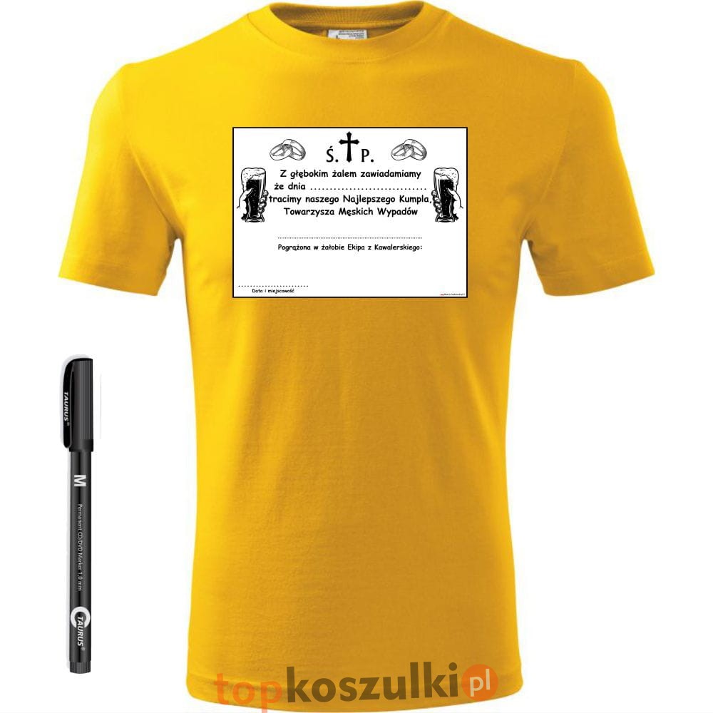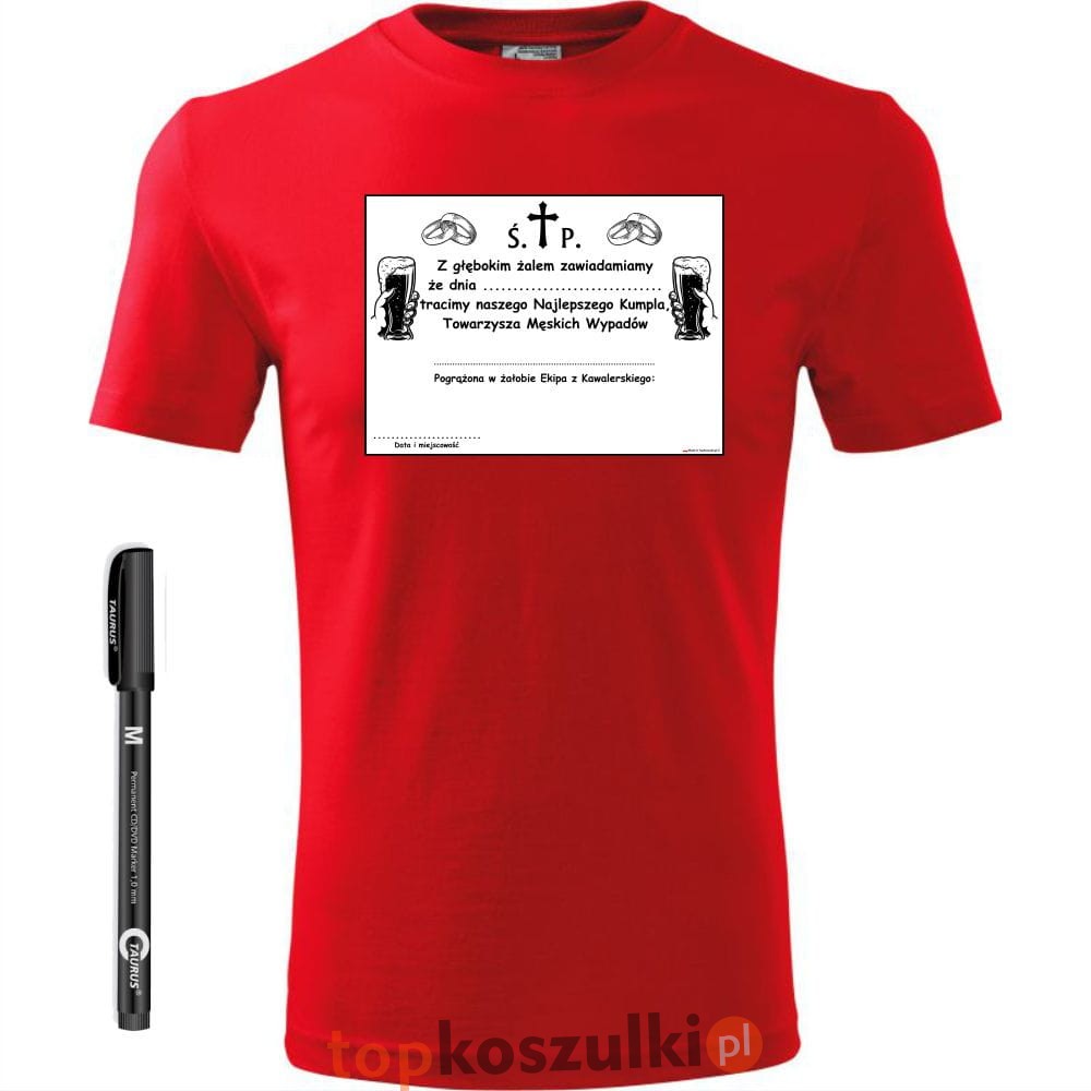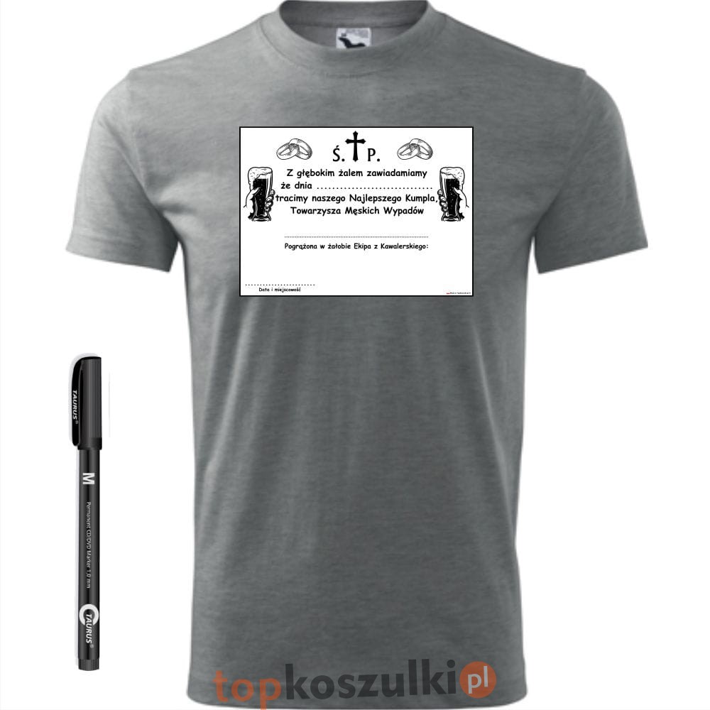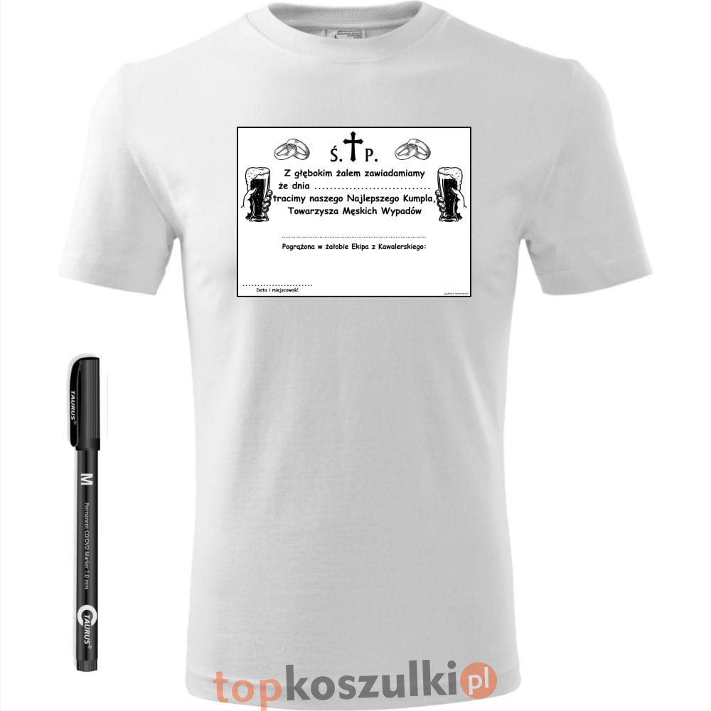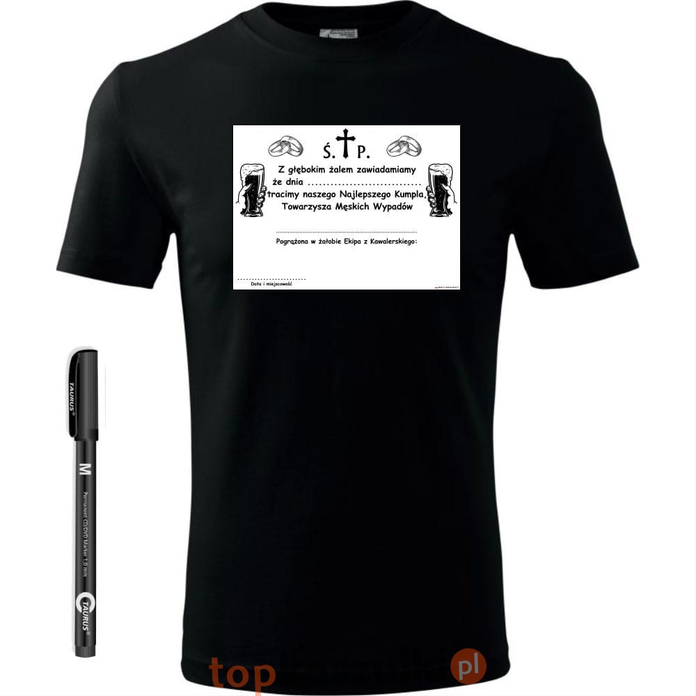 Męska koszulka - klepsydra wieczóru kawalerskiego + pisak do ręcznego wypisania prezent, pamiątka na wieczór kawalerski dla pana młodego