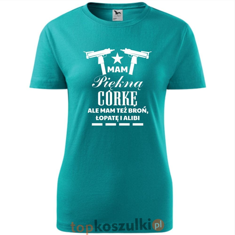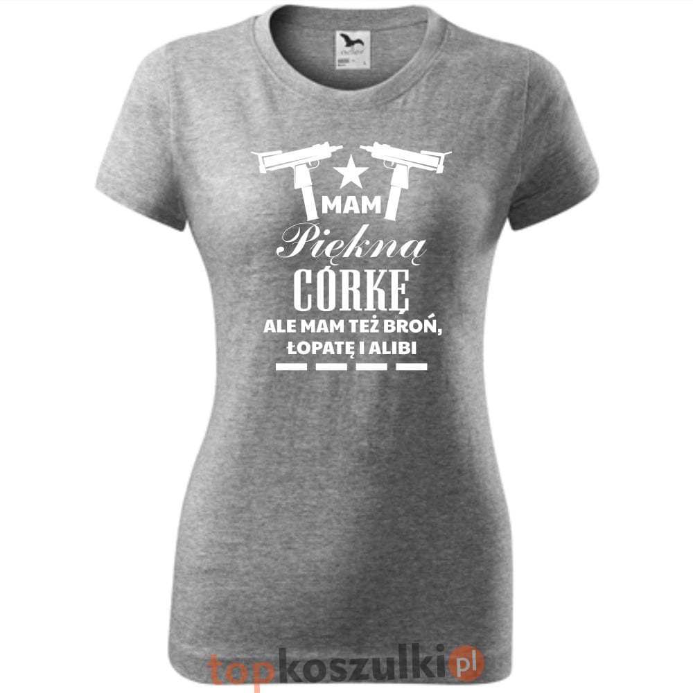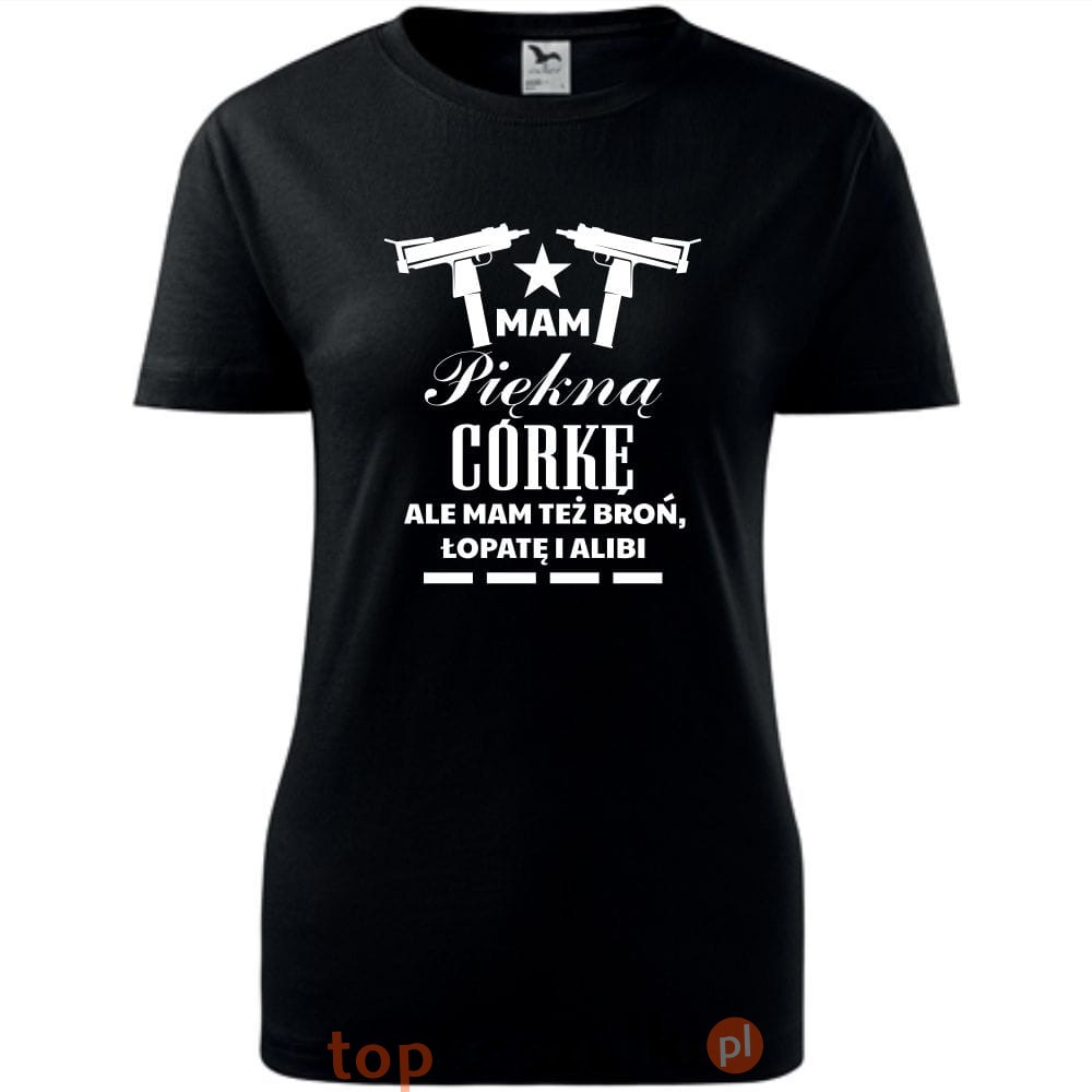 damska koszulka taliowana - mam piękną córkę, ale mam też broń łopatę i alibi 02
