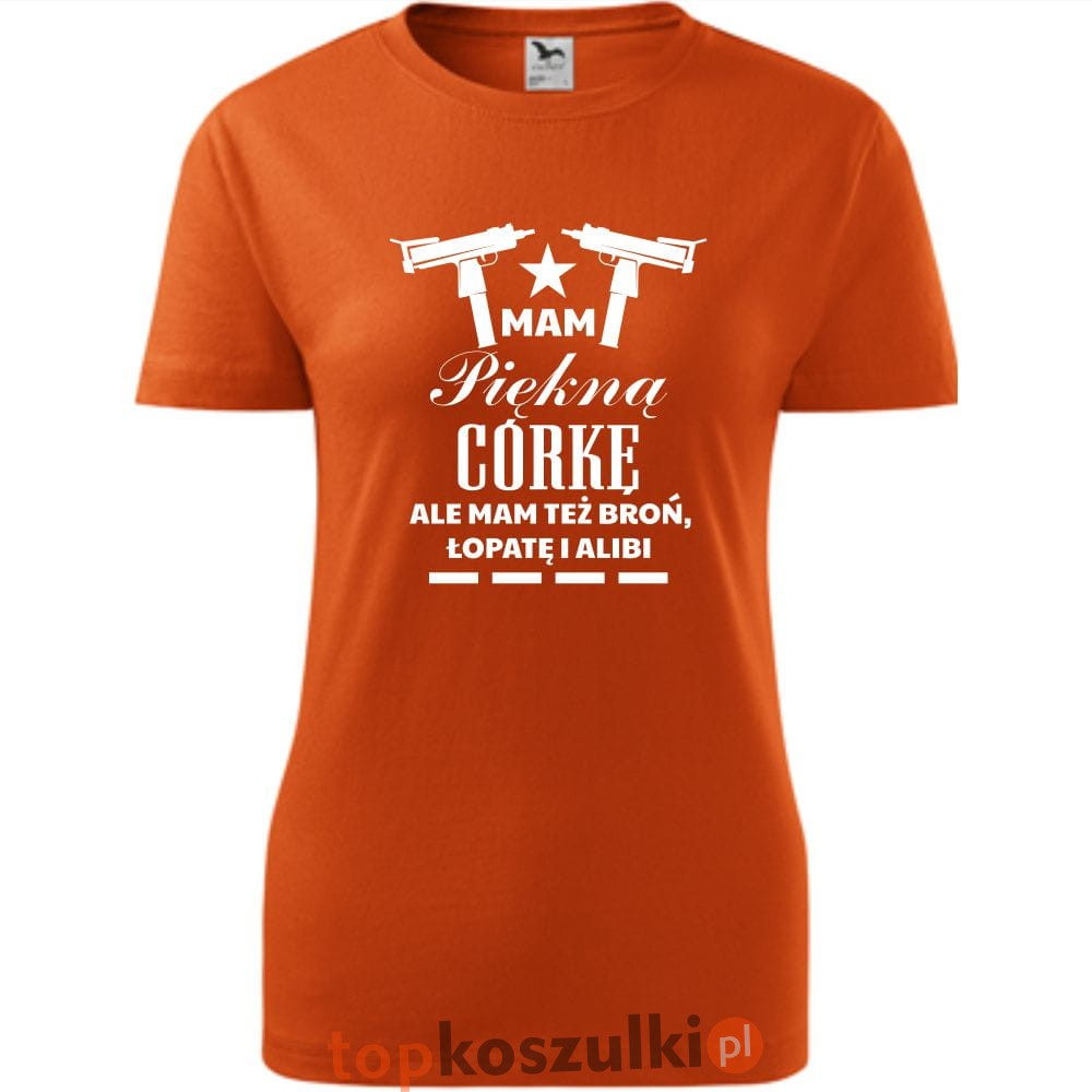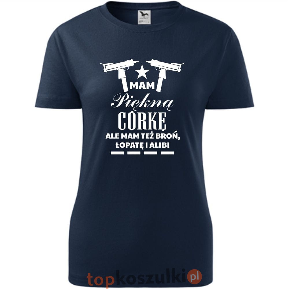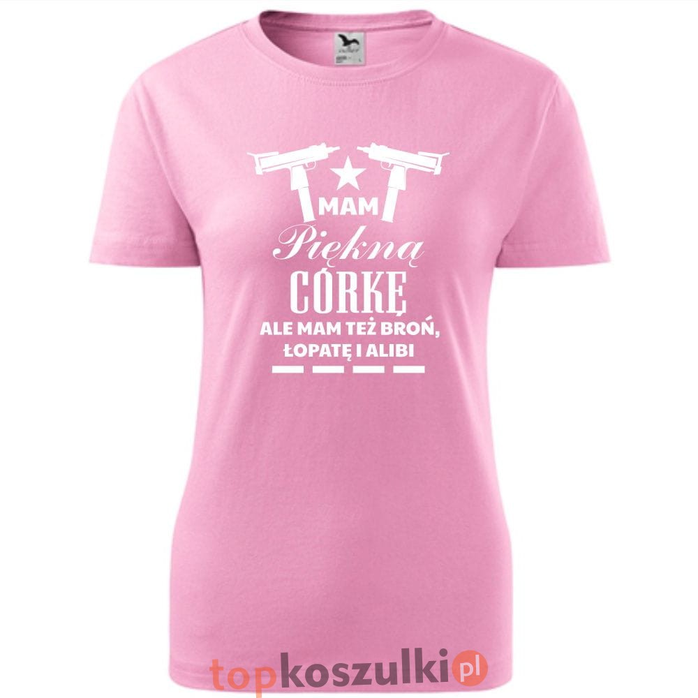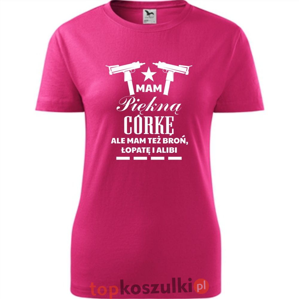 damska koszulka taliowana - mam piękną córkę, ale mam też broń łopatę i alibi 02