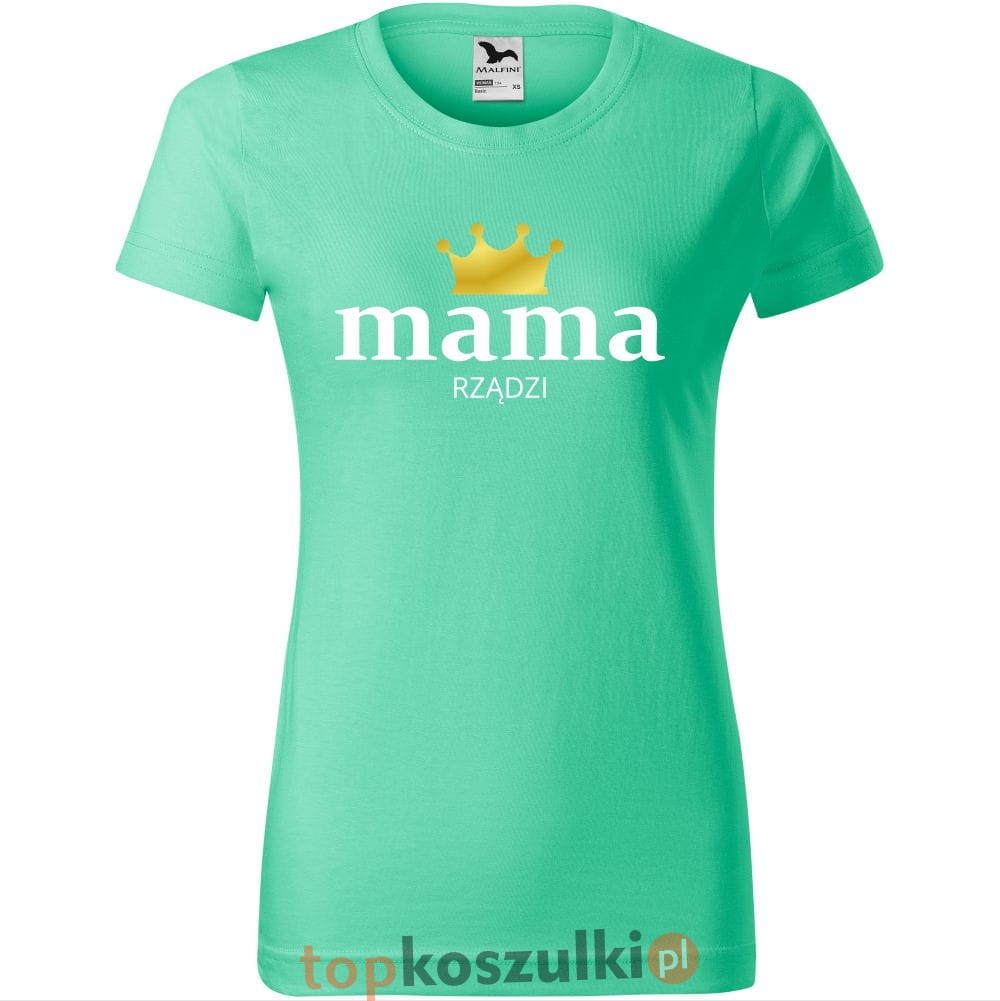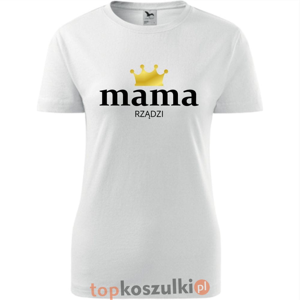 damska koszulka taliowana - mama rządzi 02 prezent dla mamy