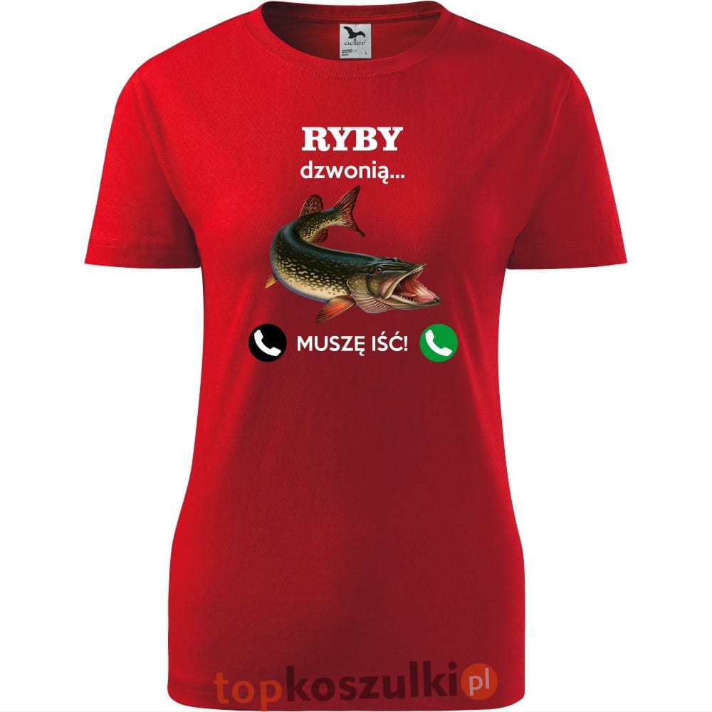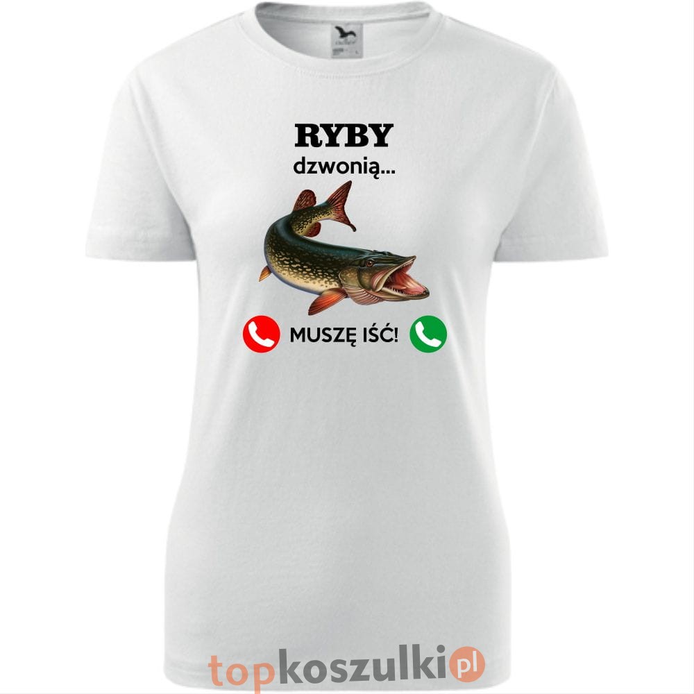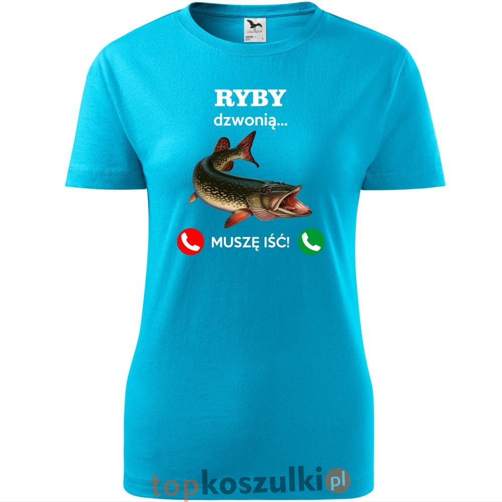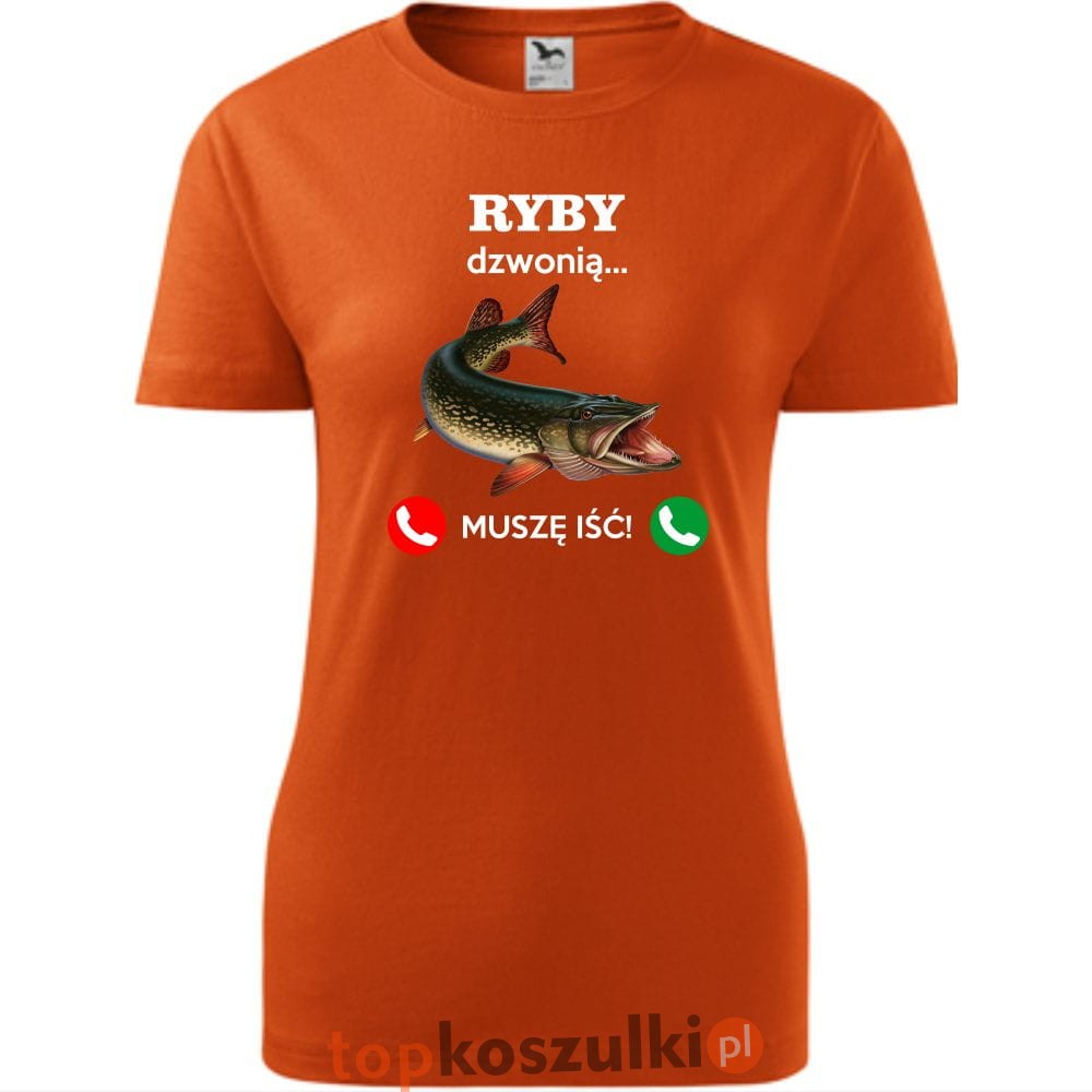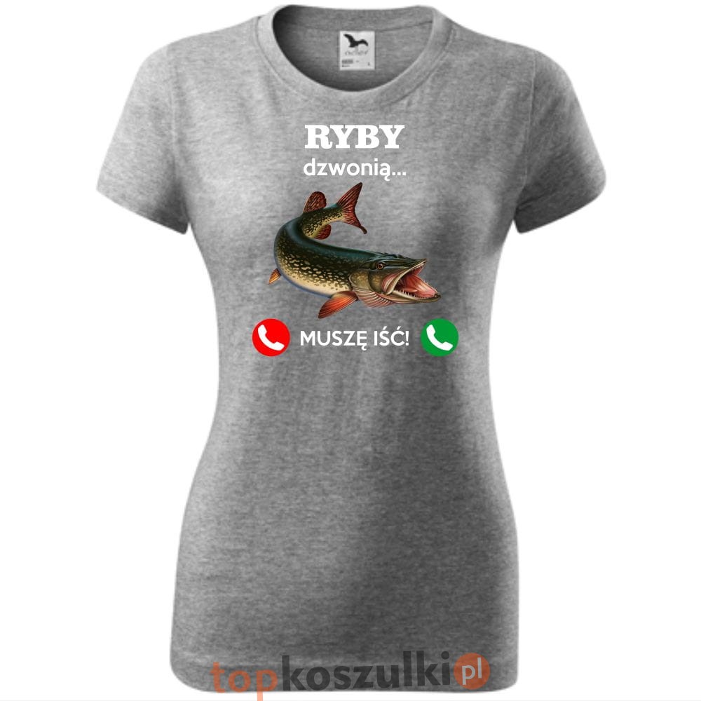 damska koszulka taliowana - ryby dzwonią. muszę iść!