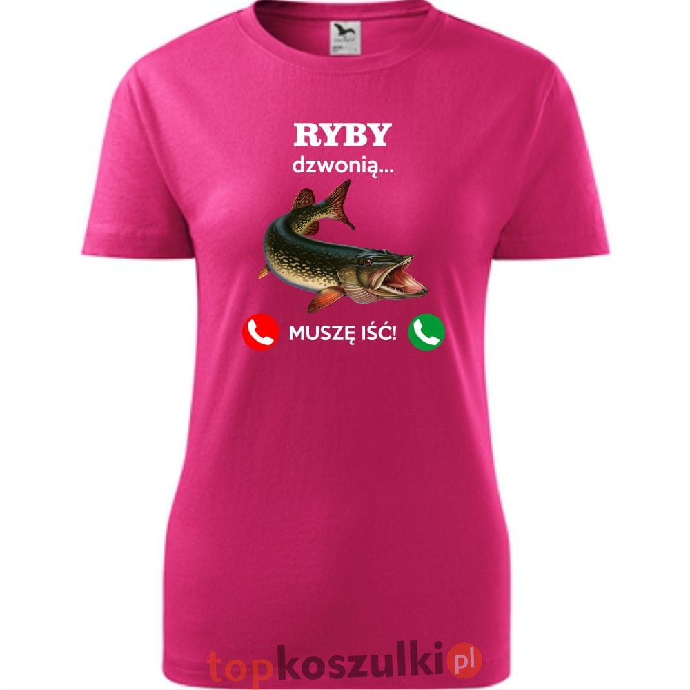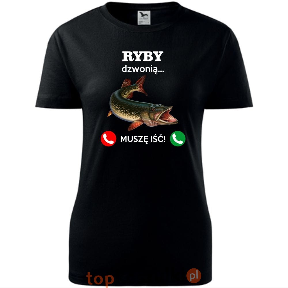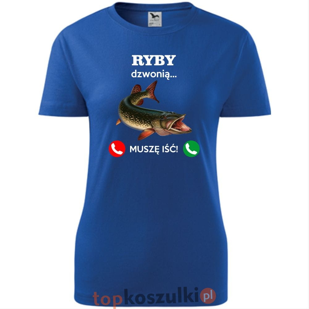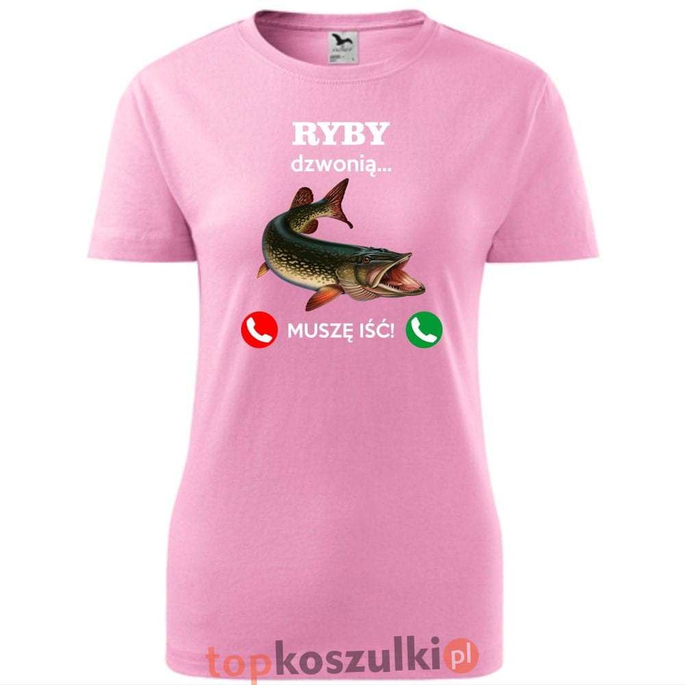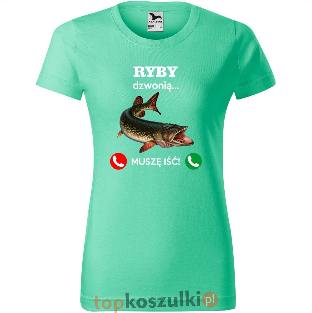 damska koszulka taliowana - ryby dzwonią. muszę iść!