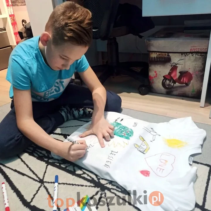 Słowa kluczowe (tags): koszulka do malowania, t-shirt do samodzielnego malowania, pisaki do tkanin, kreatywny zestaw, prezent dla dziecka, biała koszulka, personalizowana koszulka, malowanie na tkaninach, zestaw artystyczny, koszulka z nadrukiem DIY.