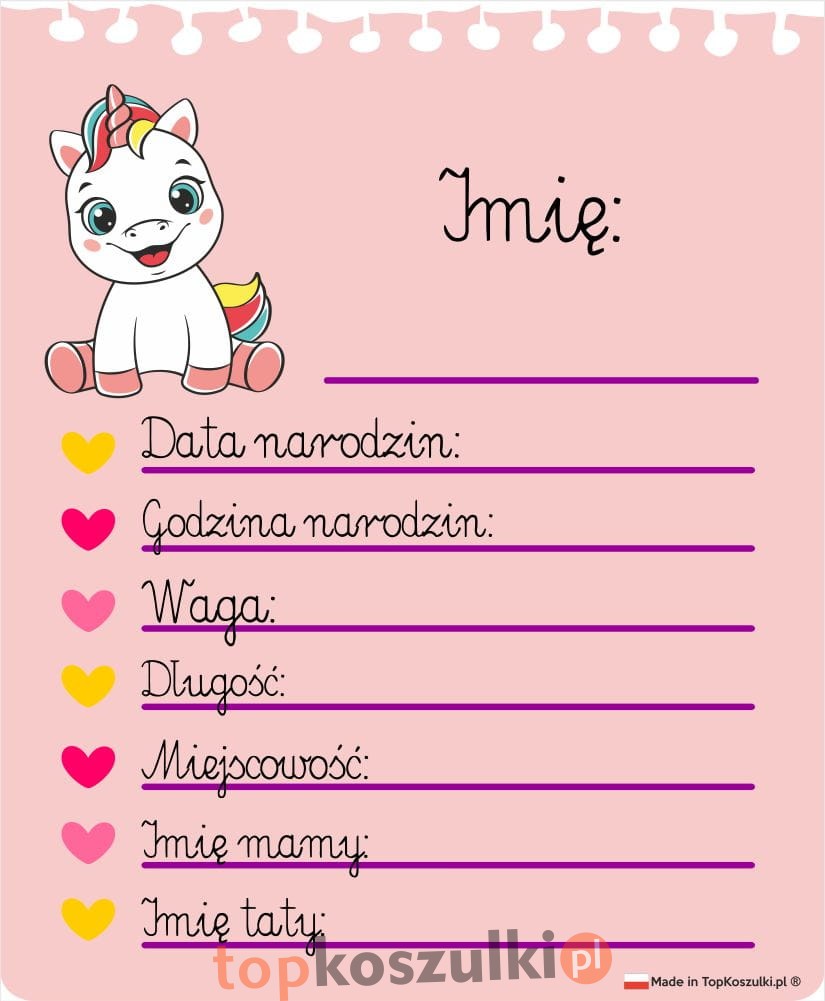 Opcja - Twój dodatkowy napis z tyłu, np. imię dziecka...