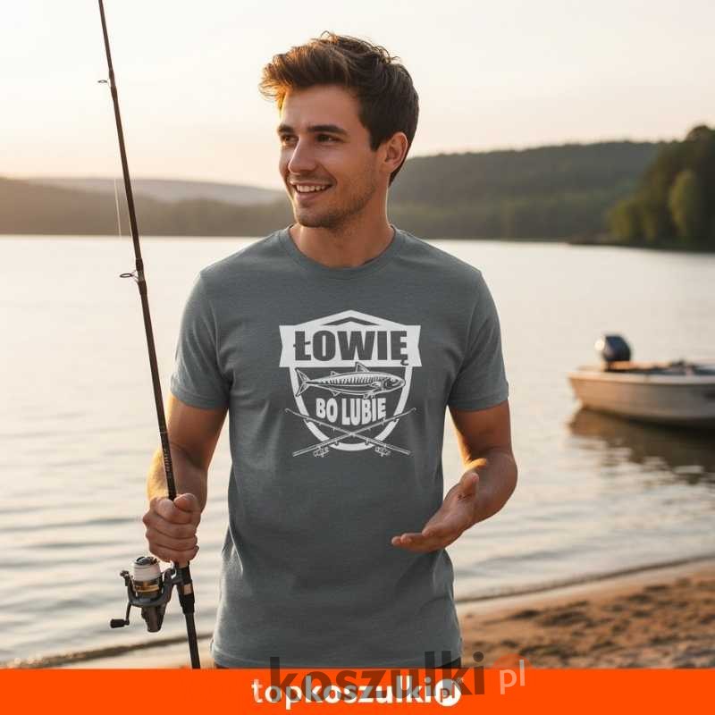 Męska koszulka - łowię bo lubię dla wędkarza na ryby