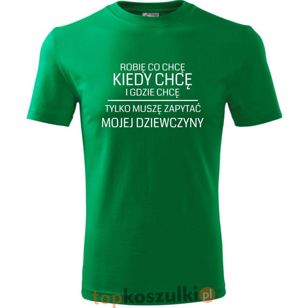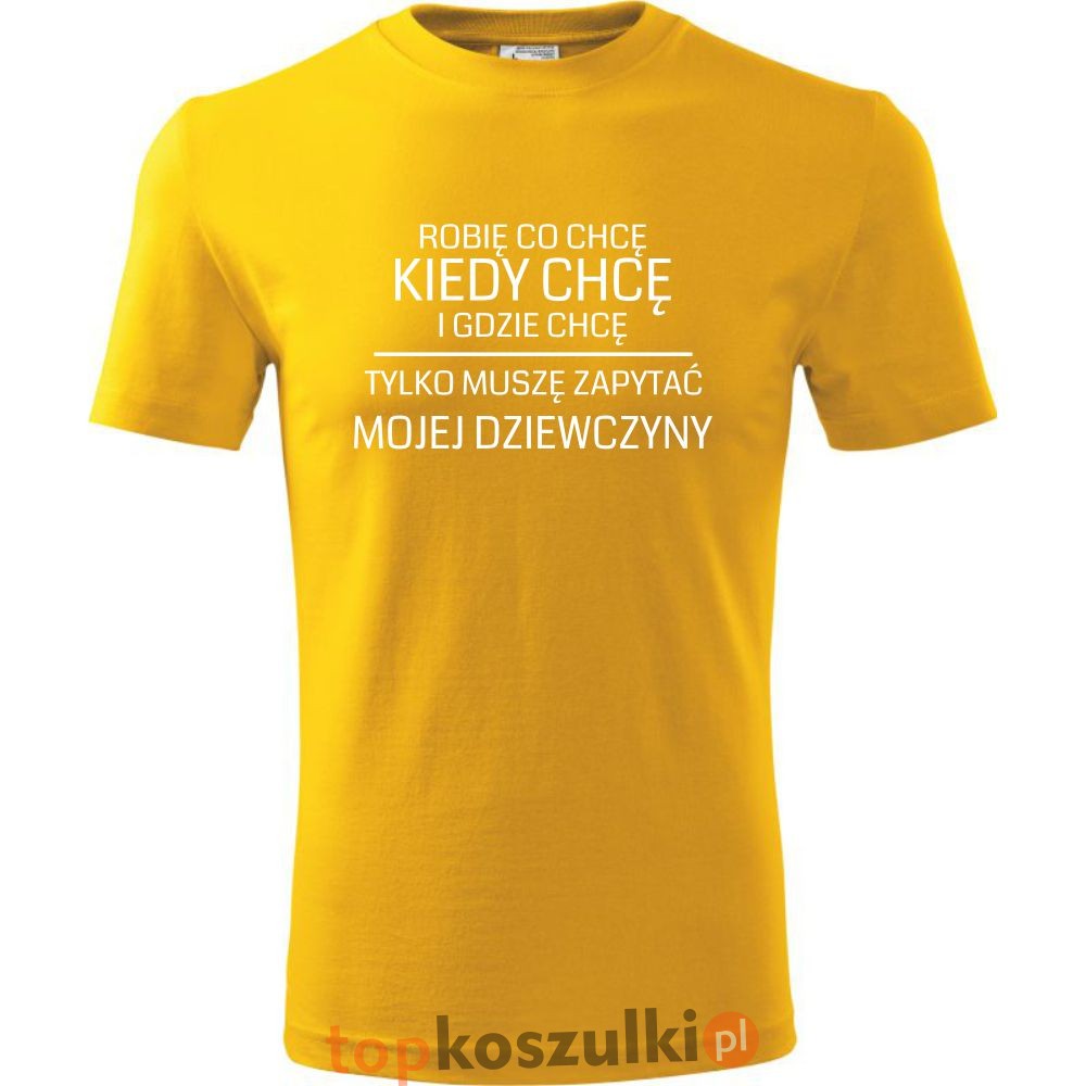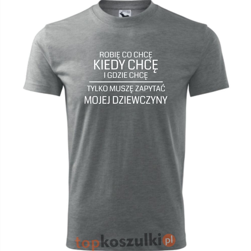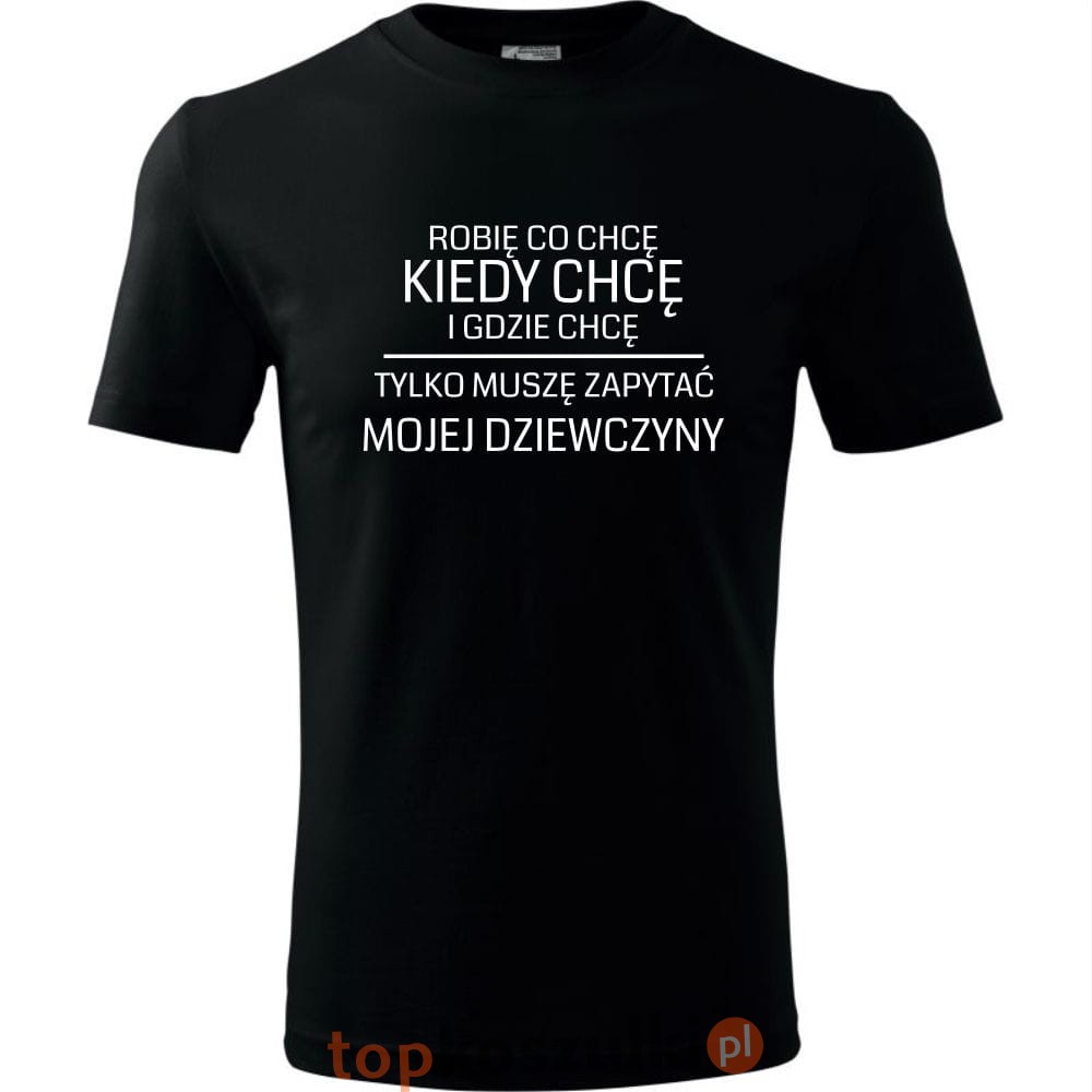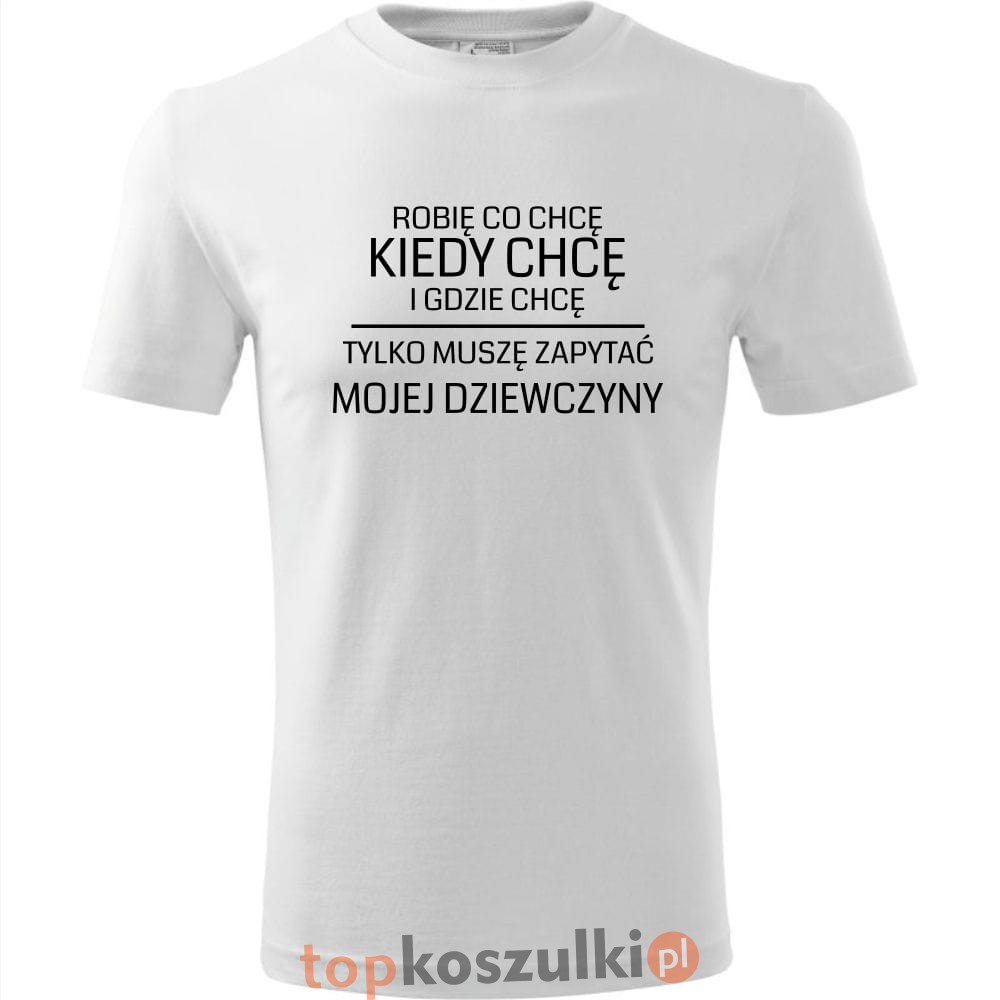 męska koszulka - robię co chcę, kiedy chcę i gdzie chcę, tylko muszę zapytać mojej dziewczyny