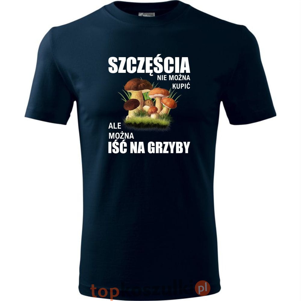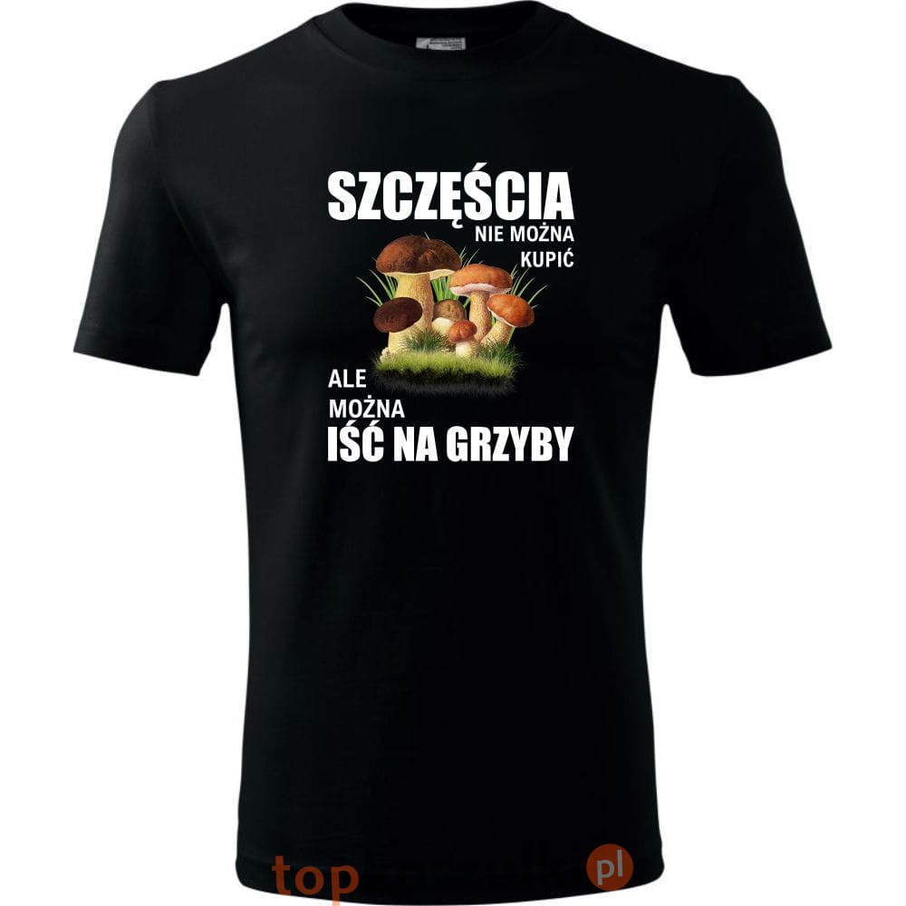 męska koszulka - szczęścia nie można kupić, ale można iść na grzyby. T-shirt dla grzybiarza, prezent na urodziny