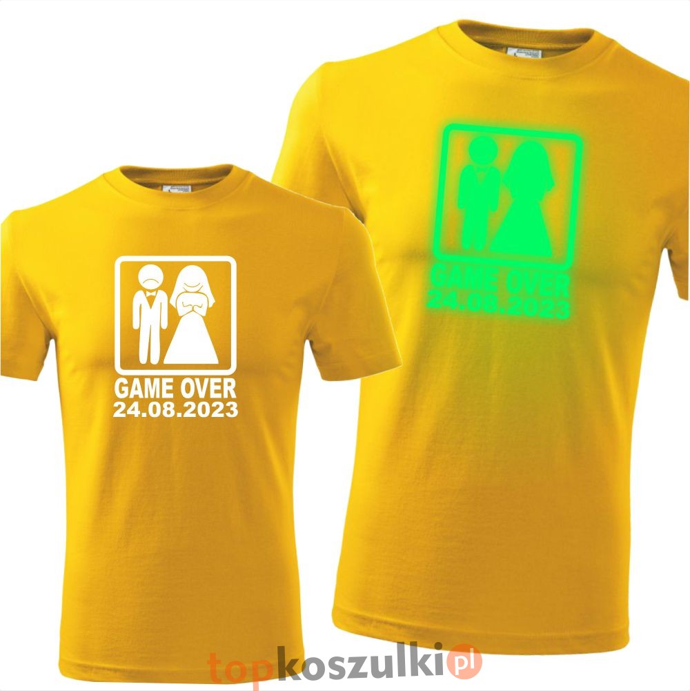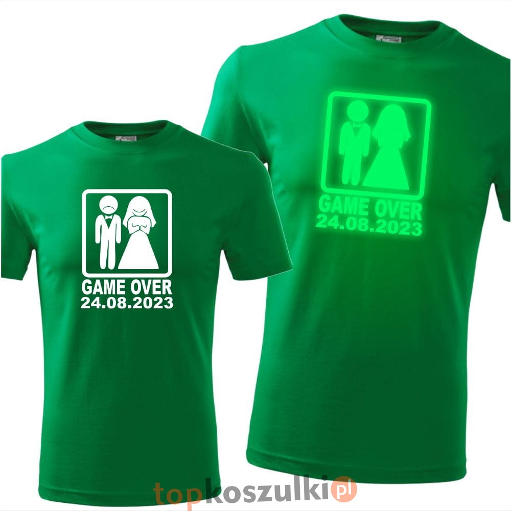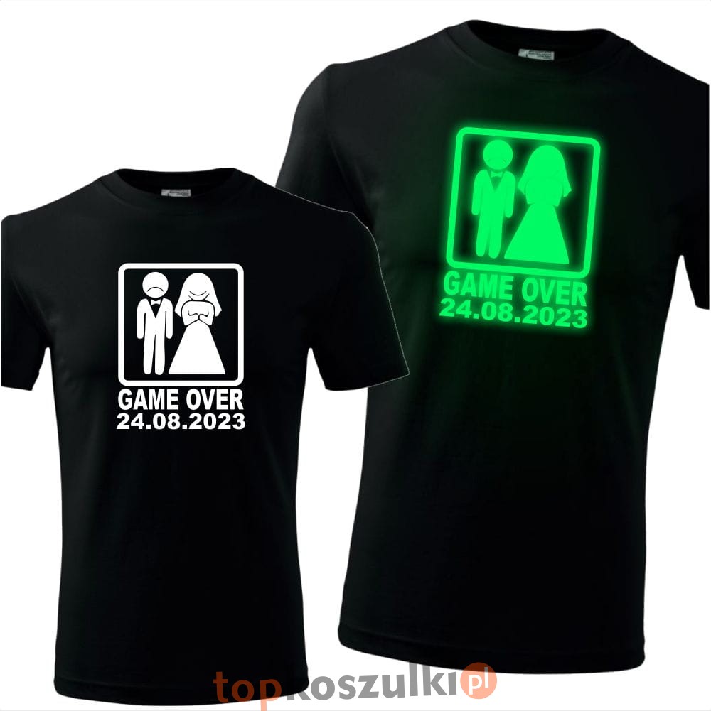 męska koszulka z nadrukiem świecącym w ciemności - game over 03 + dowolna data wieczór kawalerski prezent dla kawalera