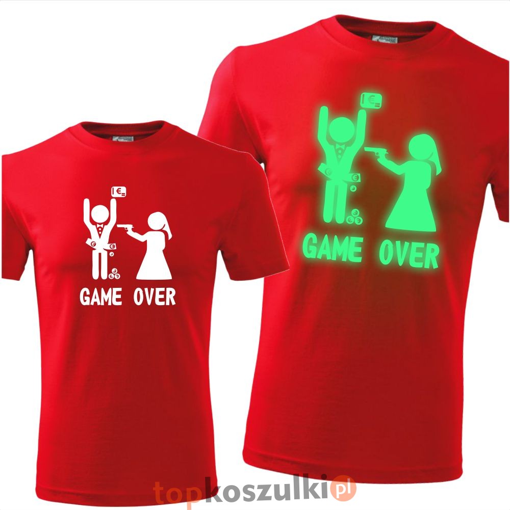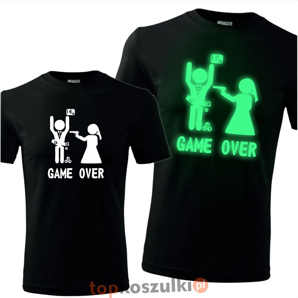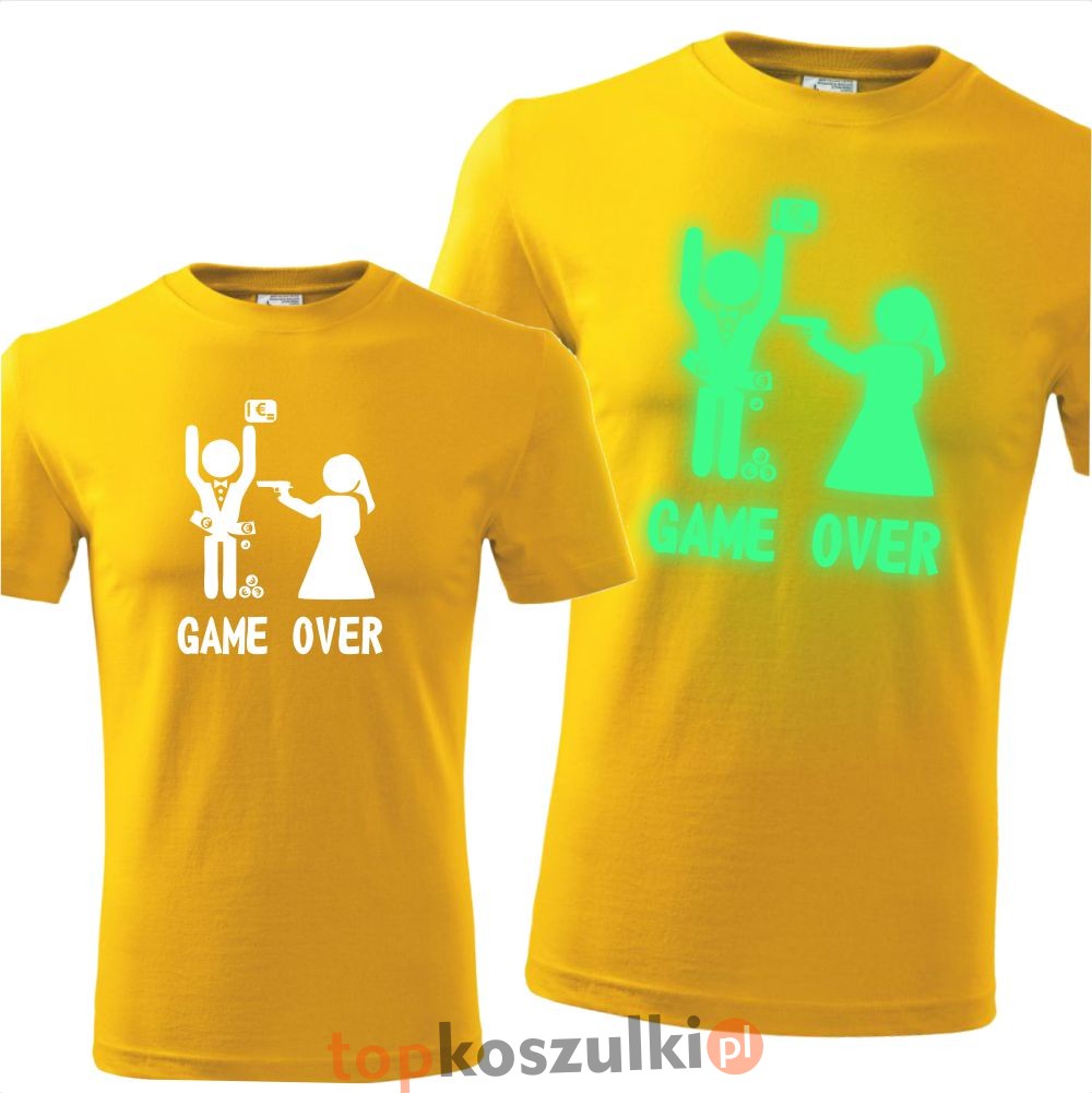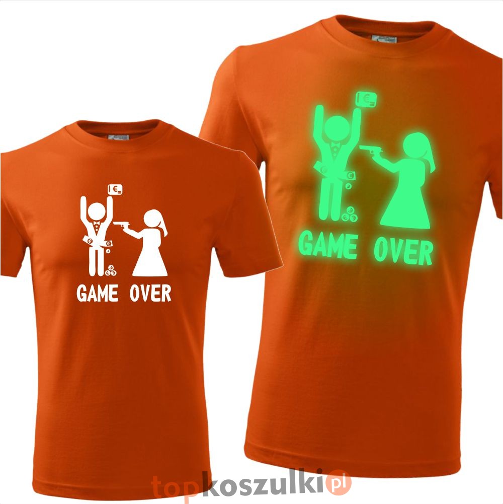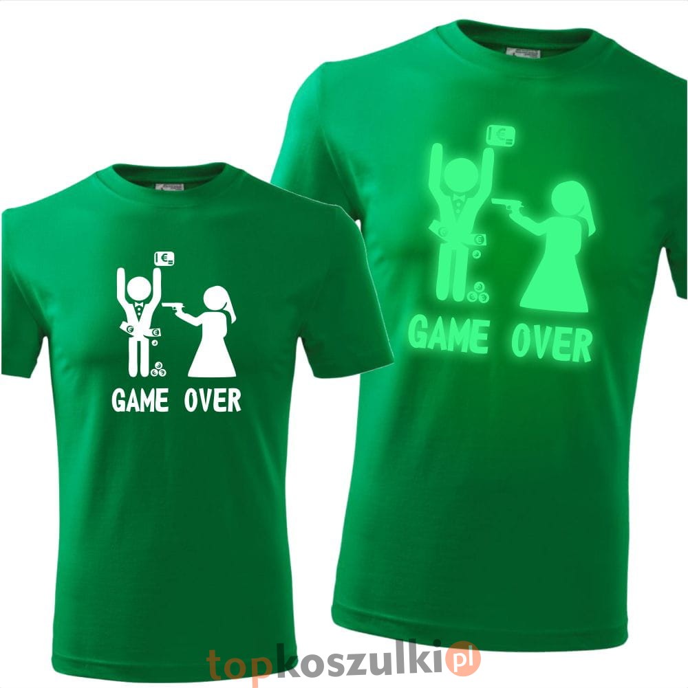 męska koszulka z nadrukiem świecącym w ciemności - game over 07
