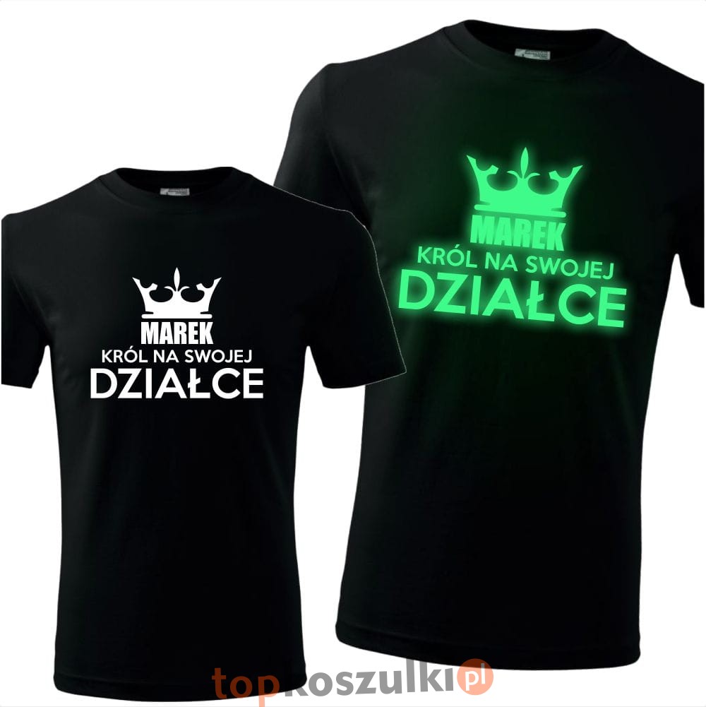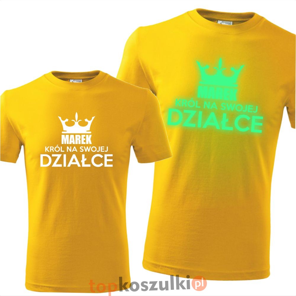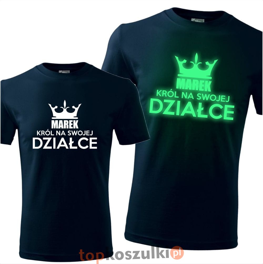 męska koszulka z nadrukiem świecącym w ciemności - król na swojej działce + twoje imię