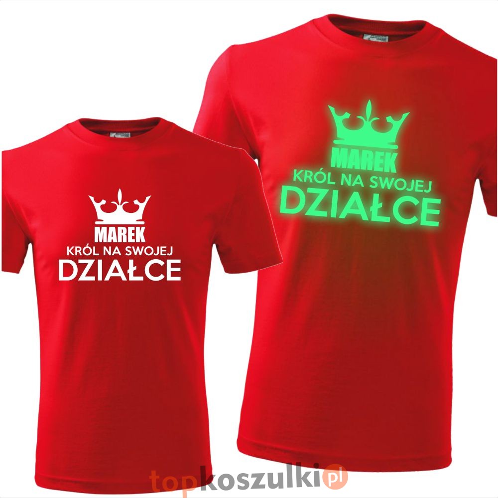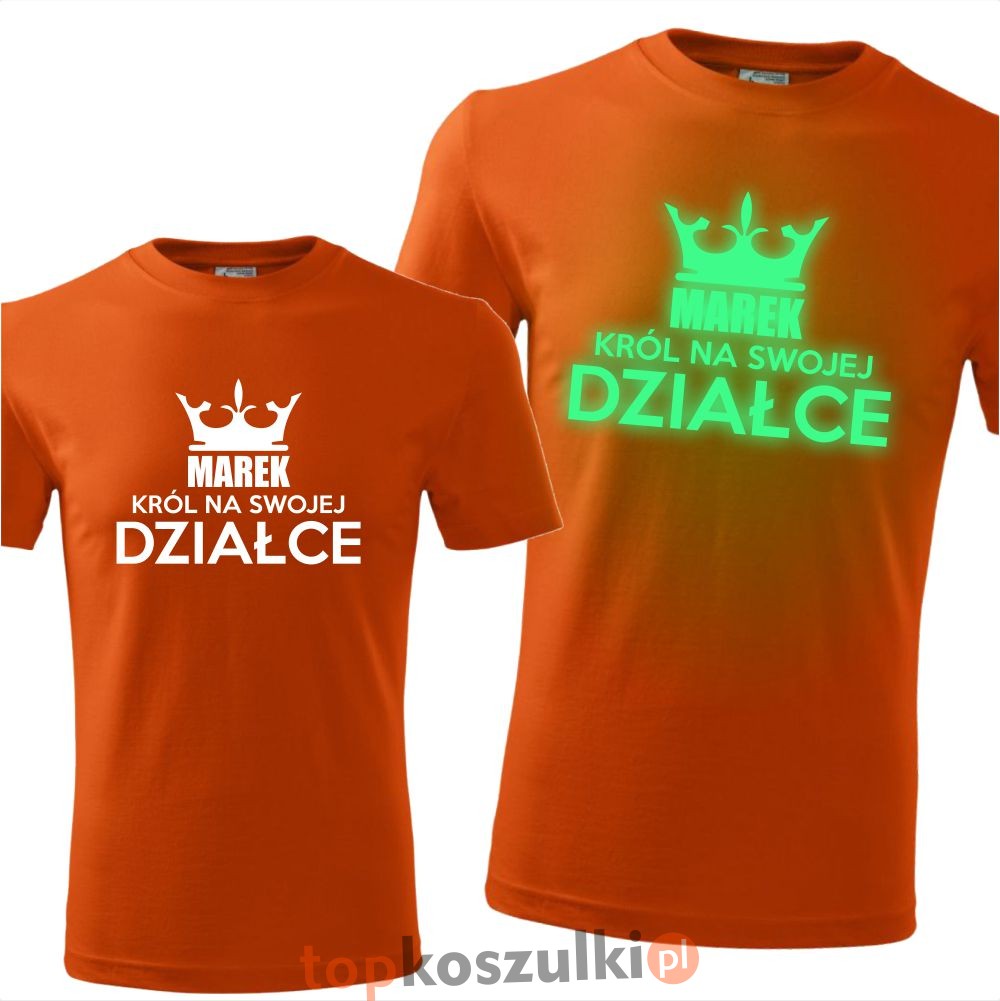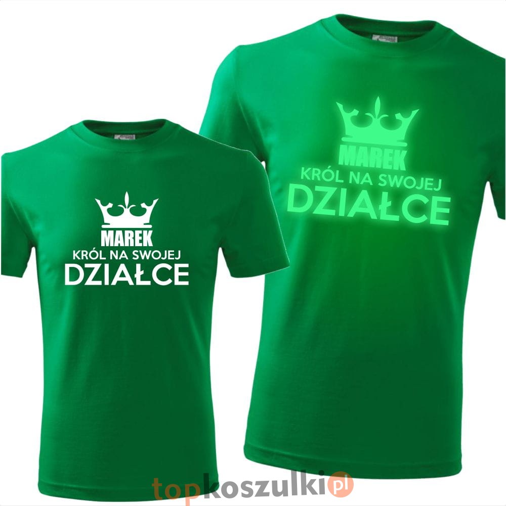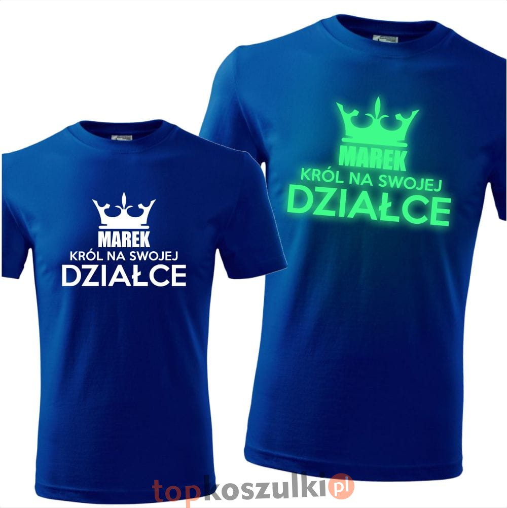 męska koszulka z nadrukiem świecącym w ciemności - król na swojej działce + twoje imię