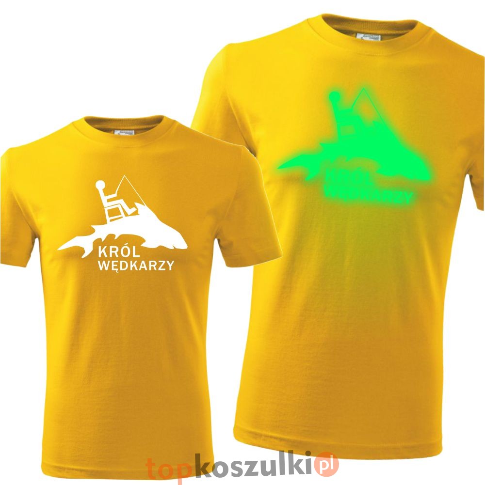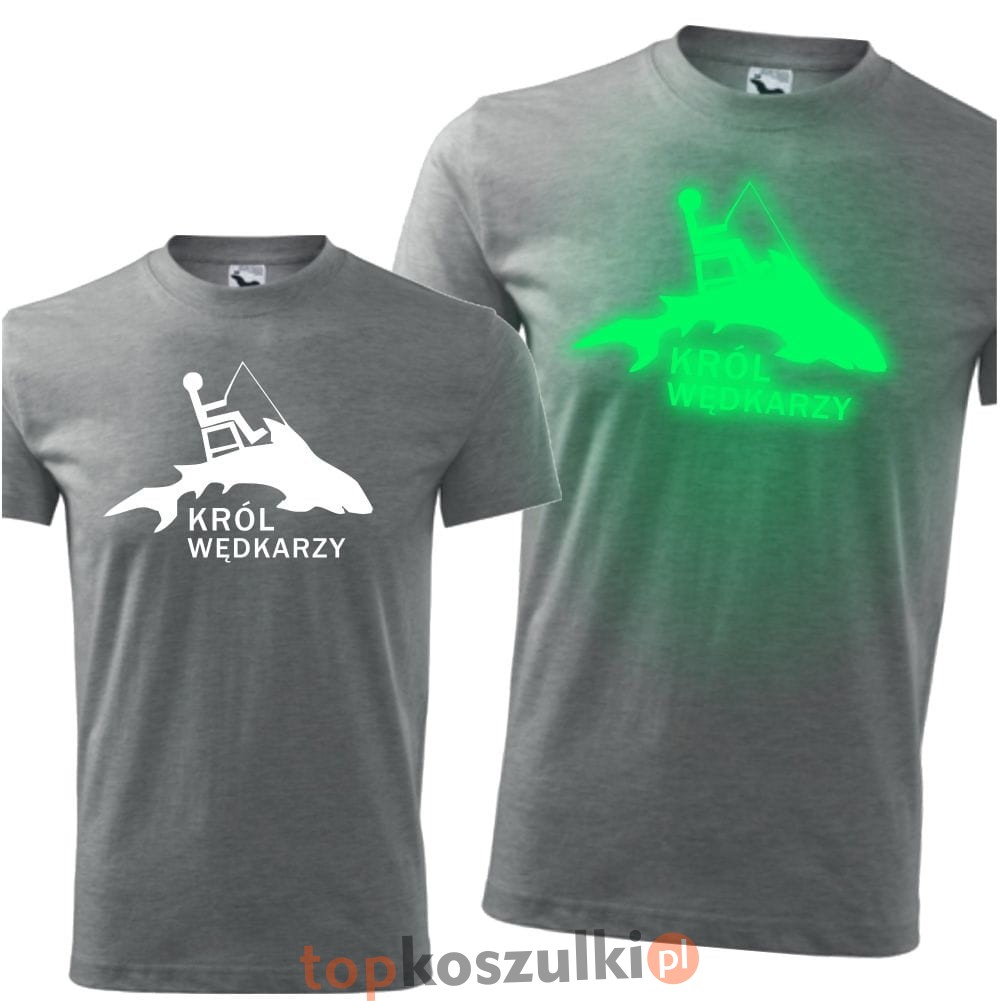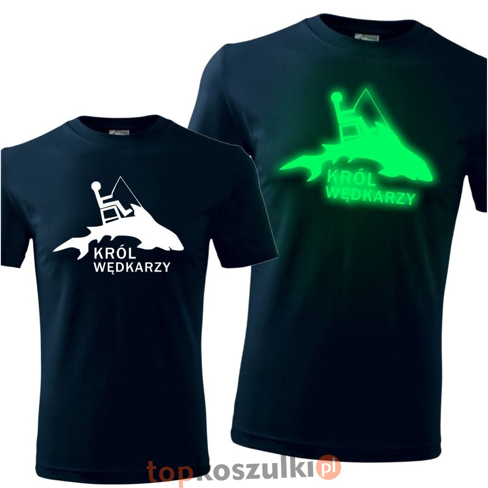 męska koszulka z nadrukiem świecącym w ciemności - król wędkarzy we 01