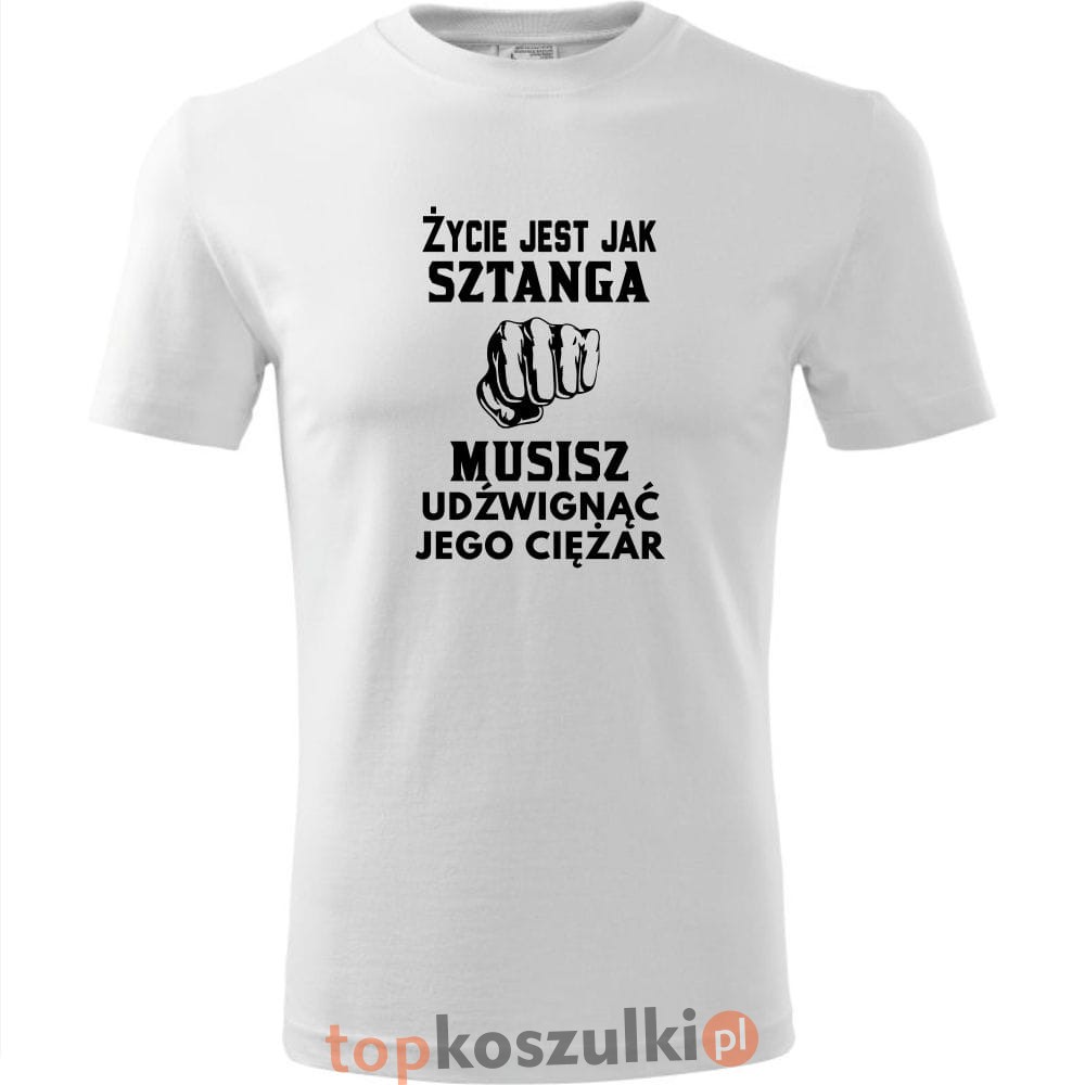 męska koszulka - życie jest jak sztanga - musisz udźwignąć jego ciężar