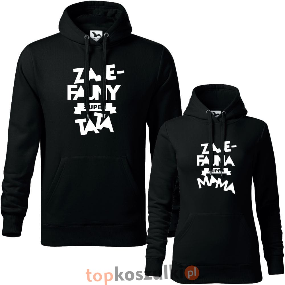 zestaw bluz z kapturem damska i męska - zajefajna super mama, zajefajny super tata