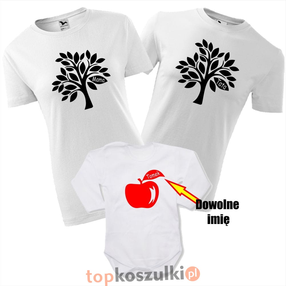 zestaw body niemowlęce, koszulka damska i męska - drzewo mama, drzewo tata, jabłko + twoje imię