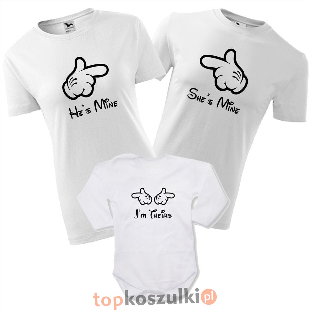 zestaw body niemowlęce, koszulka damska i męska - he's mine, she's mine, i'm theirs