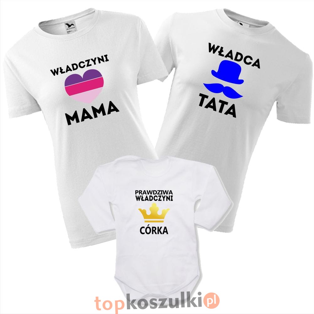 zestaw body niemowlęce, koszulka damska i męska - władczyni mama, władca tata, prawdziwa władczyni córka