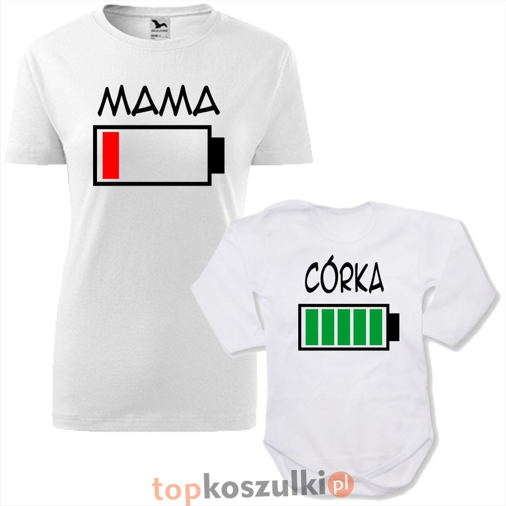 zestaw body niemowlęce + damska koszulka taliowana - bateria mama i bateria córka