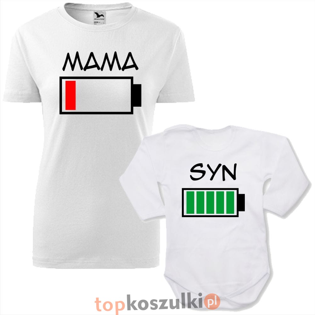 zestaw body niemowlęce + damska koszulka taliowana - bateria mama i bateria syn