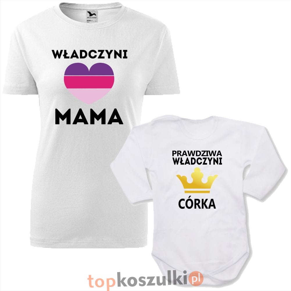 zestaw body niemowlęce + damska koszulka taliowana - władczyni mama i prawdziwa władczyni córka