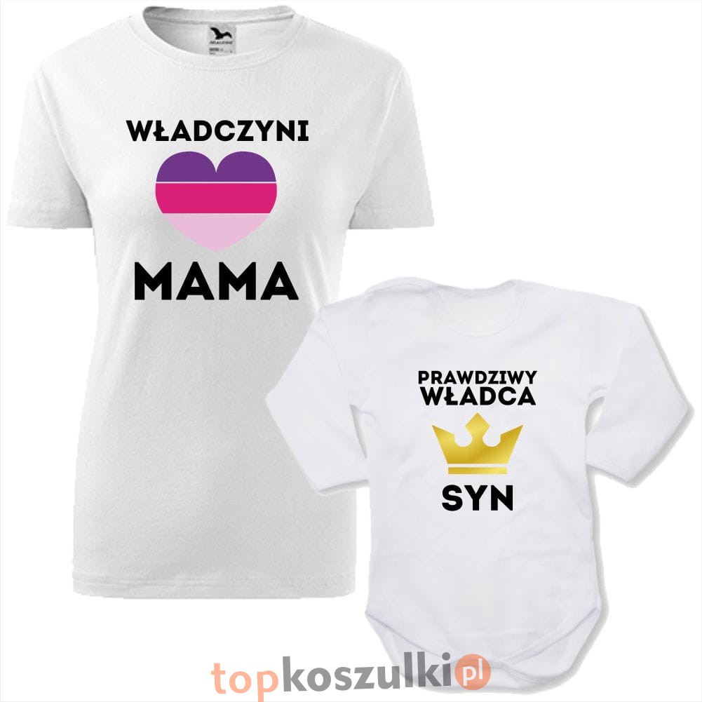 zestaw body niemowlęce + damska koszulka taliowana - władczyni mama i prawdziwy władca syn