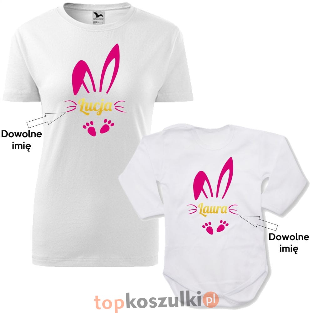 zestaw body niemowlęce + damska koszulka taliowana - zając 04 + twoje damskie imiona (mamy i córki), prezent na Wielkanoc