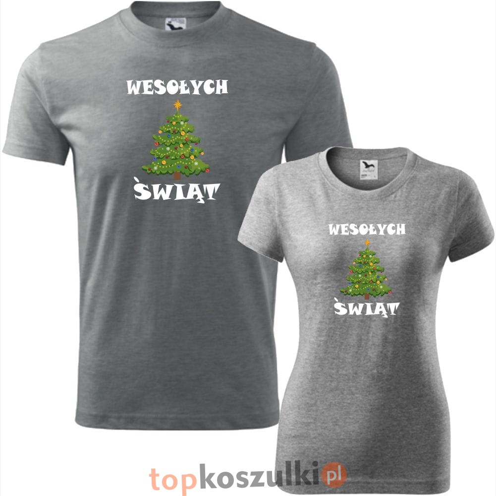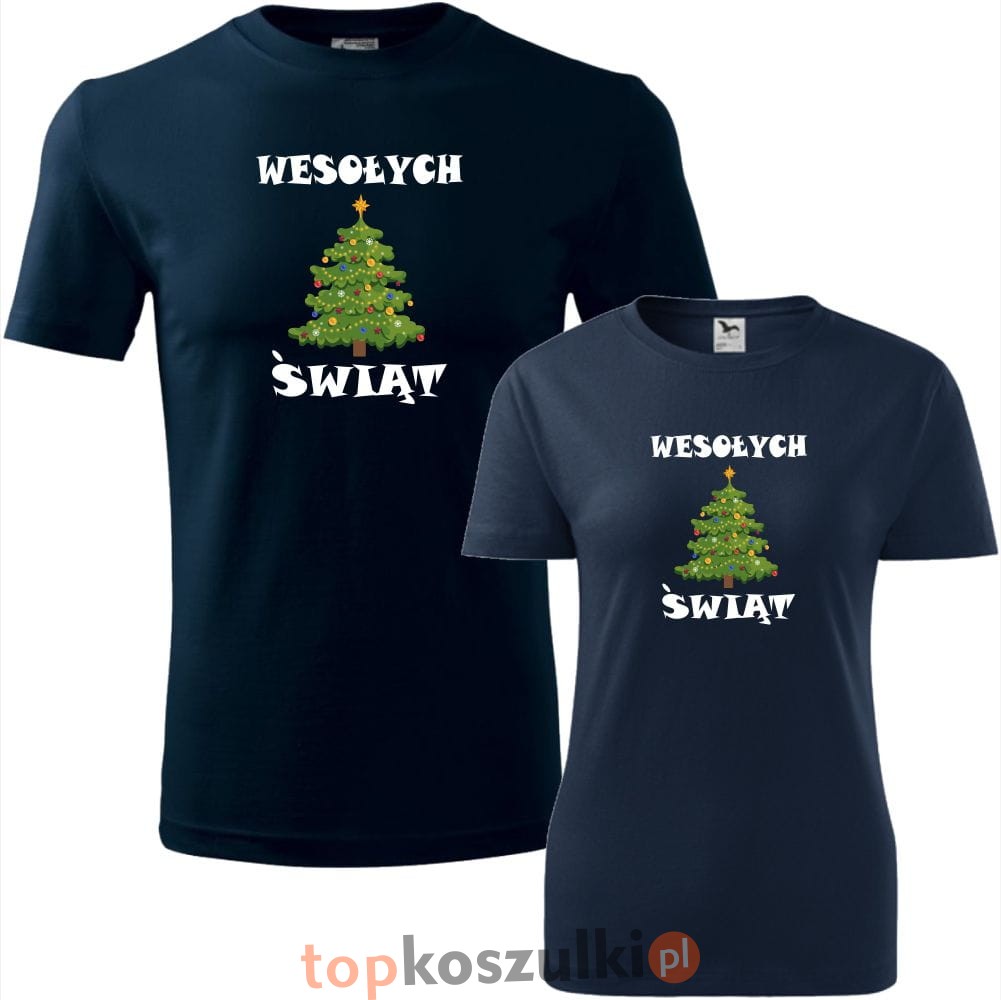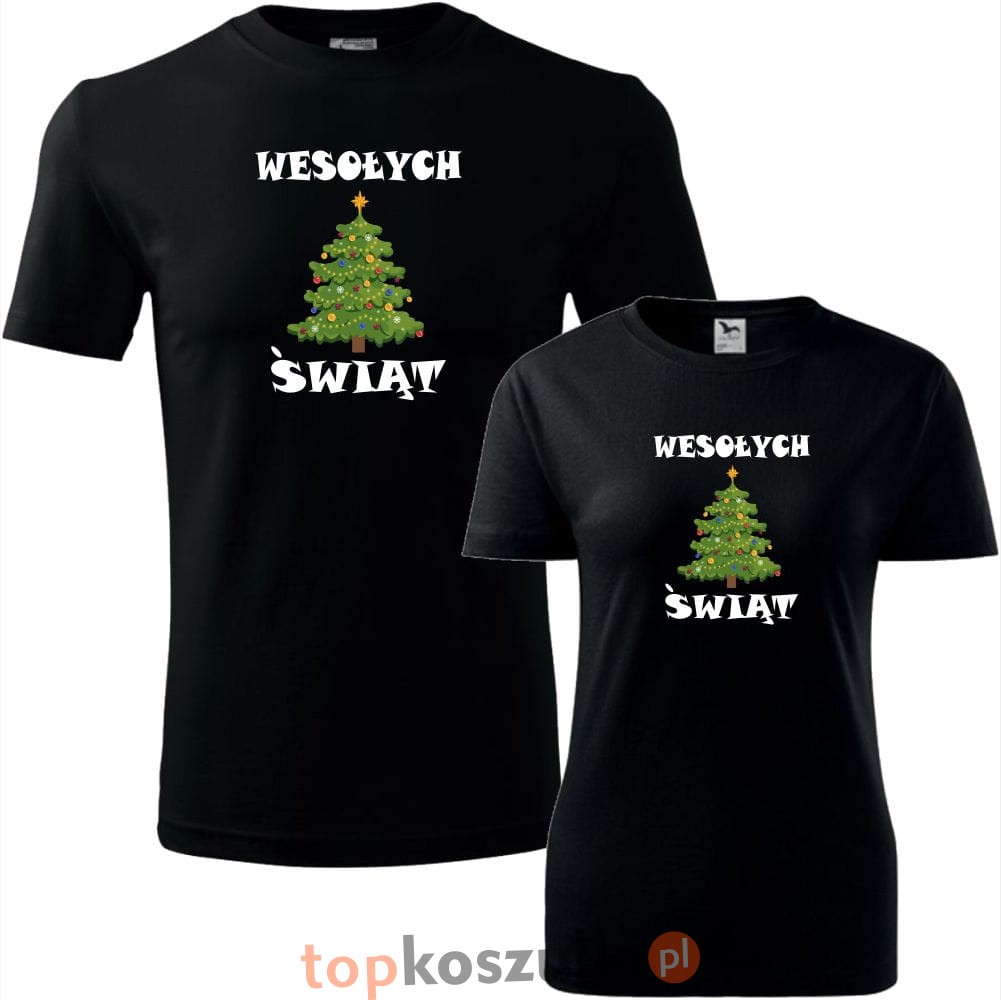 zestaw koszulek damska i męska - choinka - wesołych świąt cudowny zestaw dla par na święta bożego narodzenia od xs-4xl czerwony, czarny, grantowy, biały