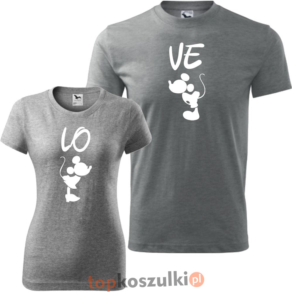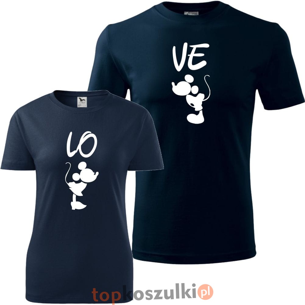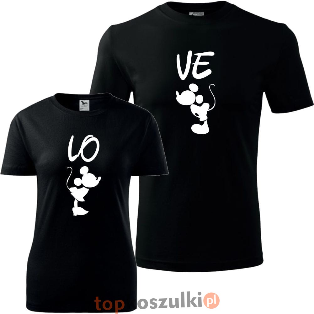 Zestaw 2 czarnych koszulek dla par, ozdobionych unikatowym nadrukiem z Myszką Miki. Idealny wybór na prezent na walentynki, rocznicę, ślub lub inną wyjątkową okazję. Wysokiej jakości bawełna zapewnia komfort i trwałość, a nadruk wykonany w technologii DTG gwarantuje żywe kolory i odporność na pranie. Dostępne w różnych rozmiarach, zarówno damskie (krój taliowany), jak i męskie (krój prosty).