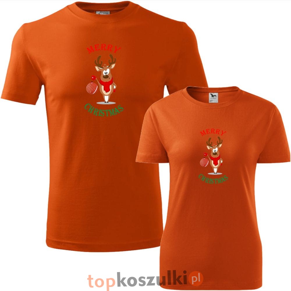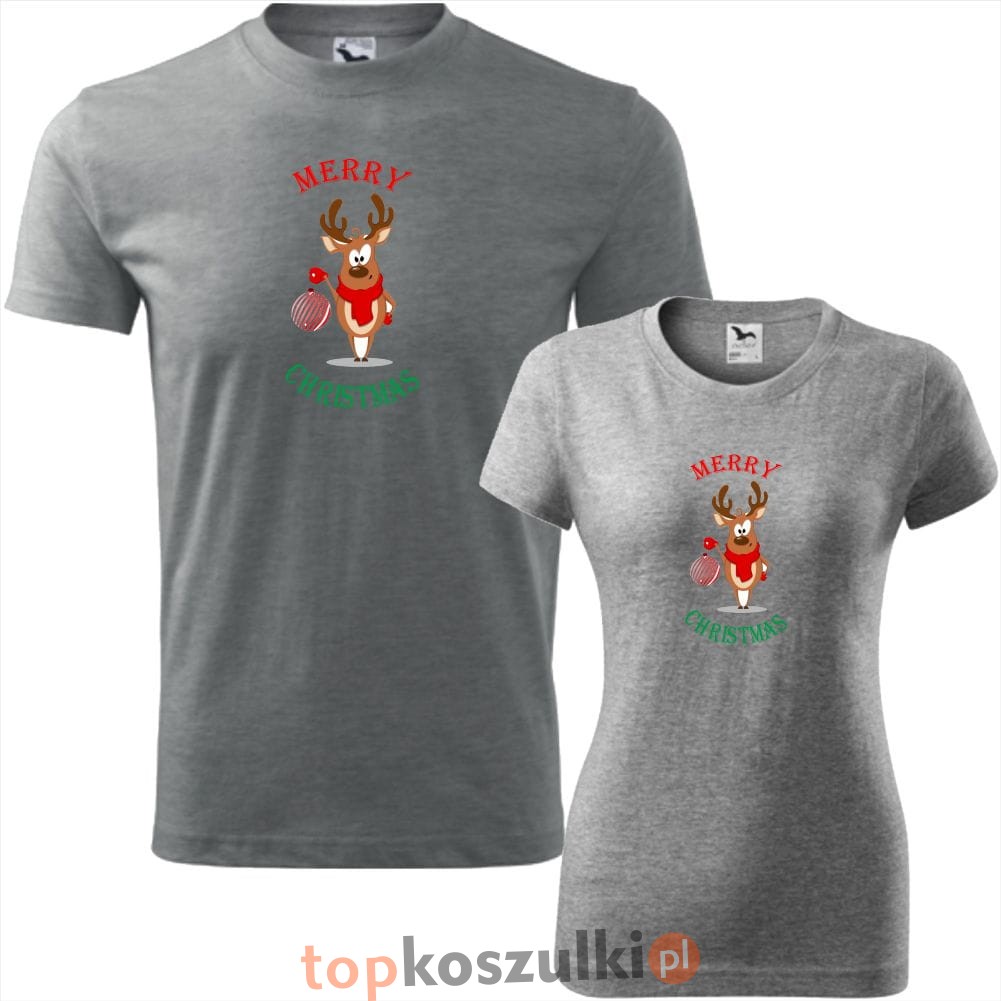 zestaw koszulek damska i męska - renifer - merry christmas