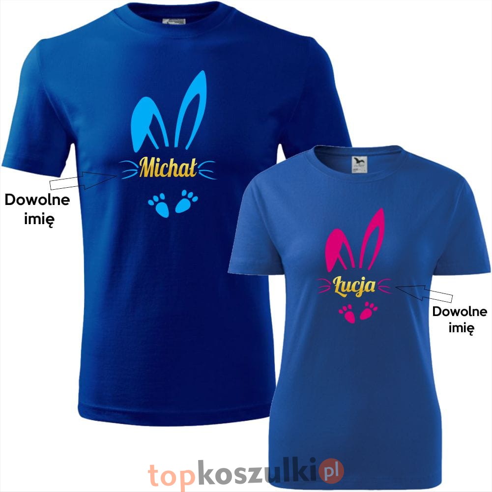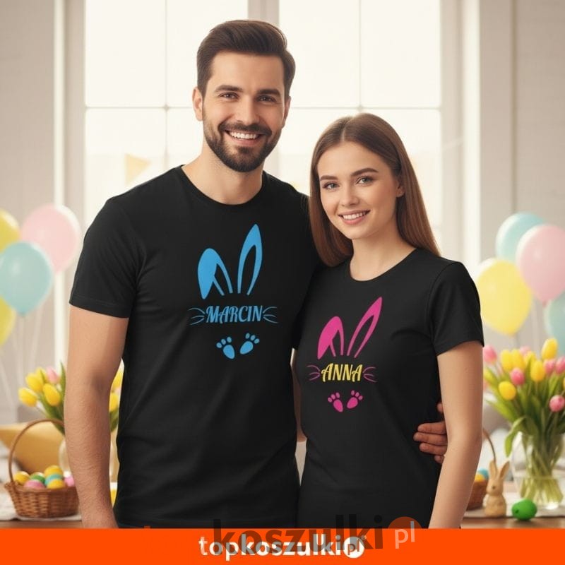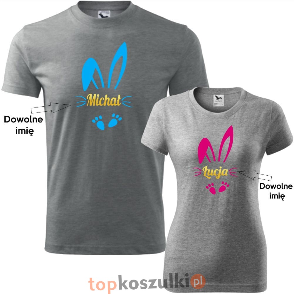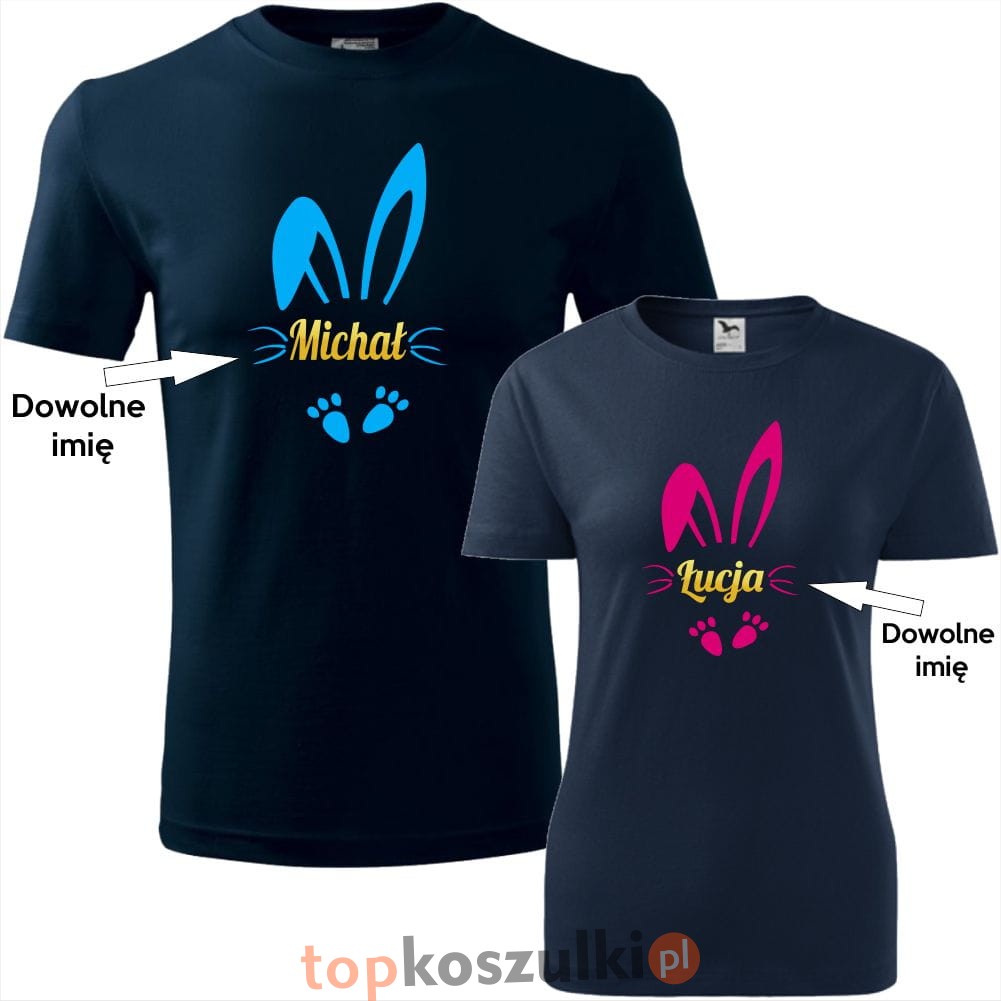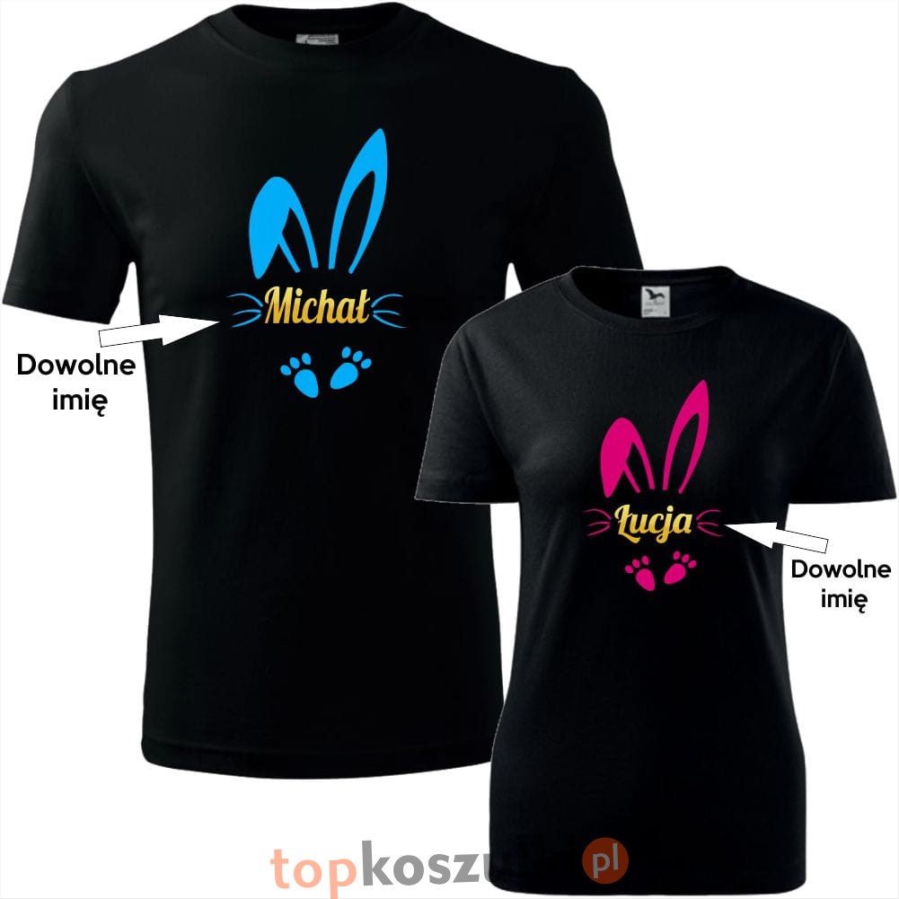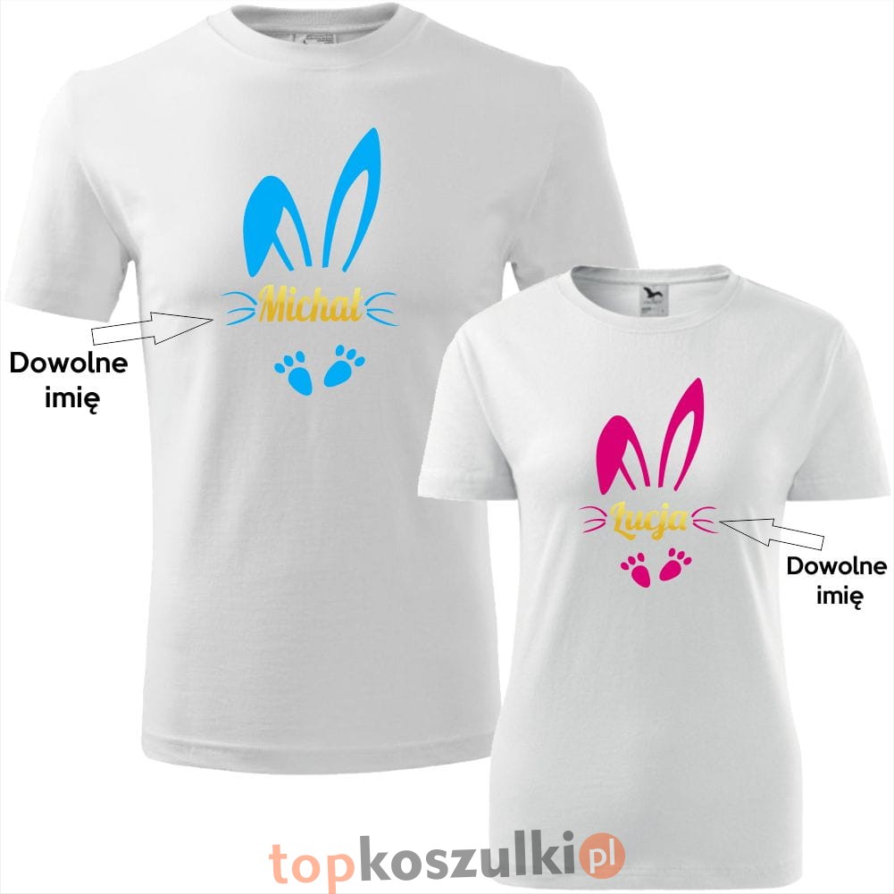 zestaw koszulek damska i męska - zając 04 + twoje 2 imiona, prezent na Wielkanoc