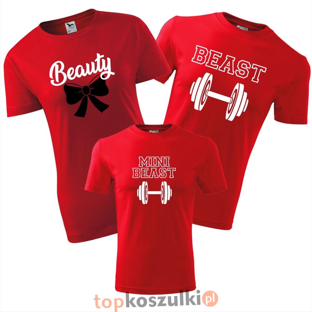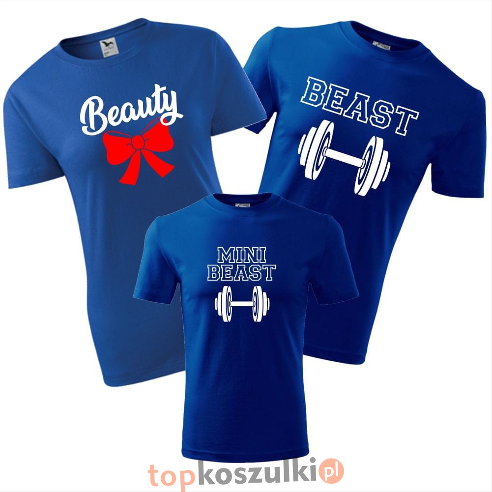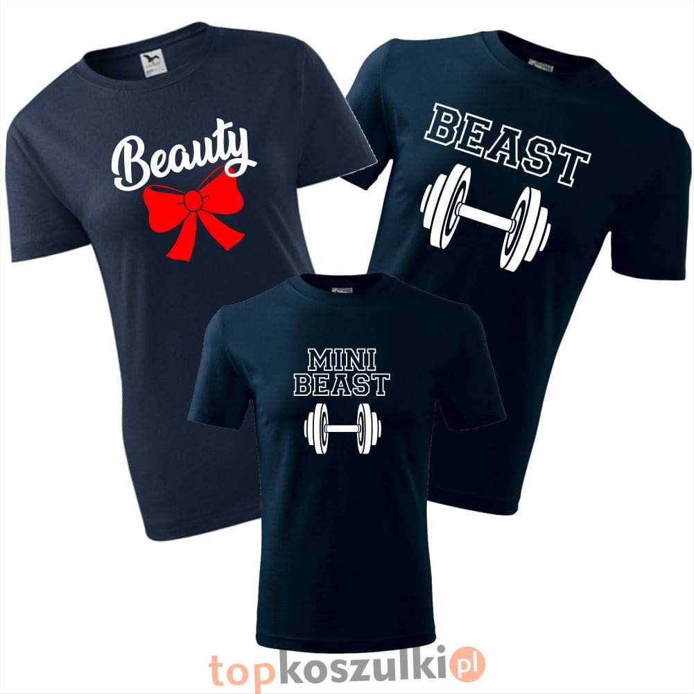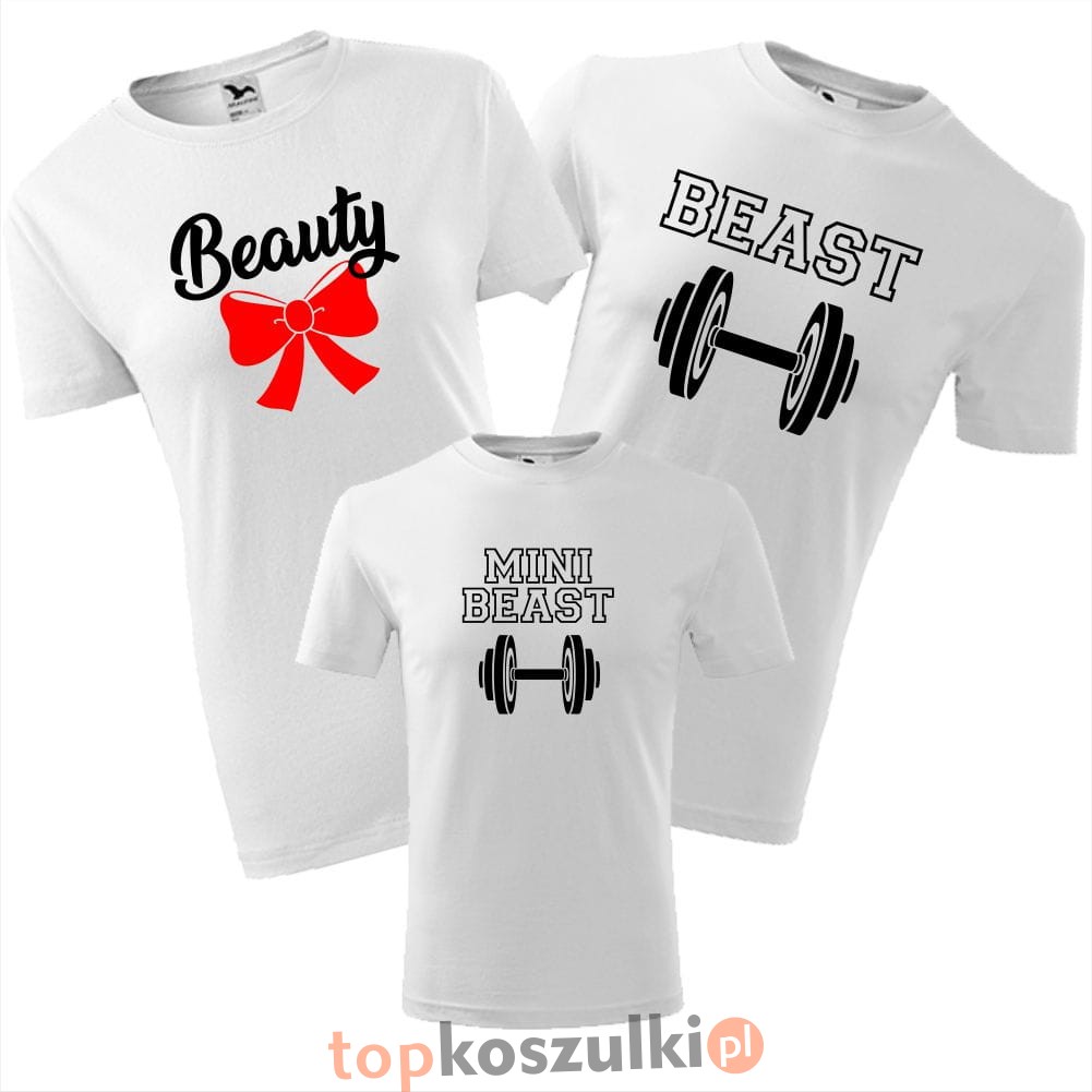 zestaw koszulek dziecięca, damska i męska - beauty, beast, mini beast
