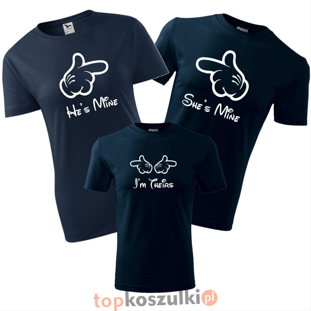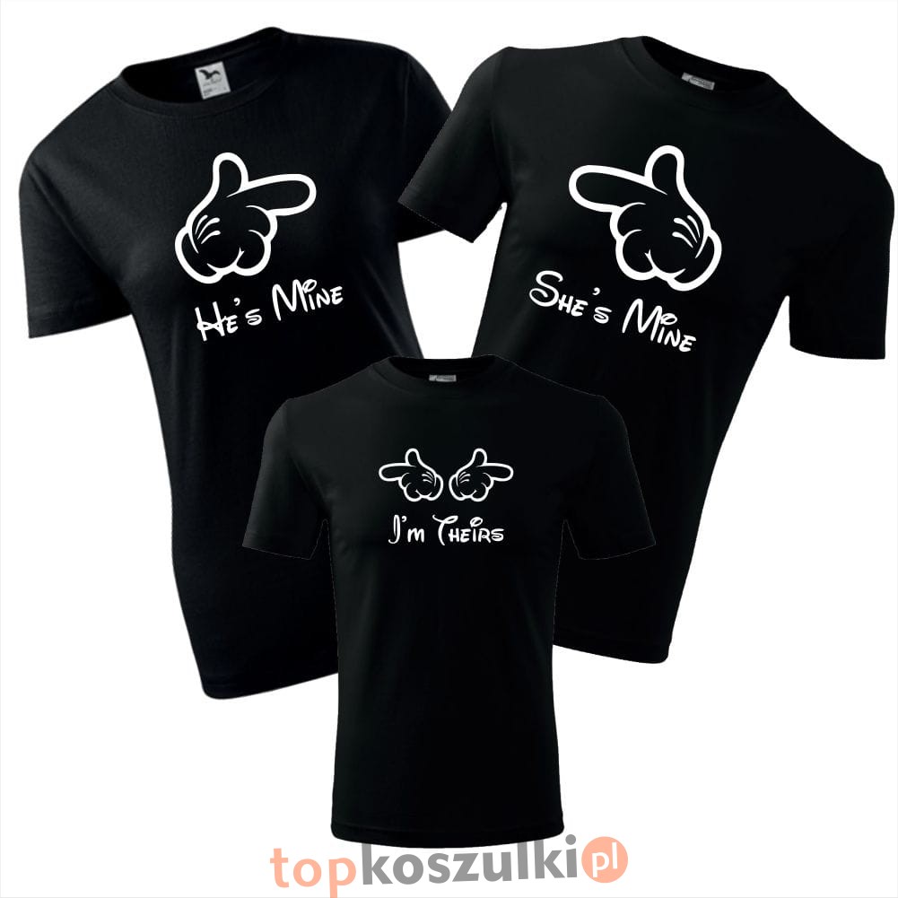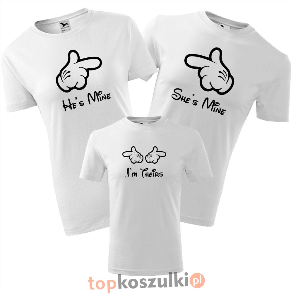 zestaw koszulek dziecięca, damska i męska - he's mine, she's mine, i'm theirs