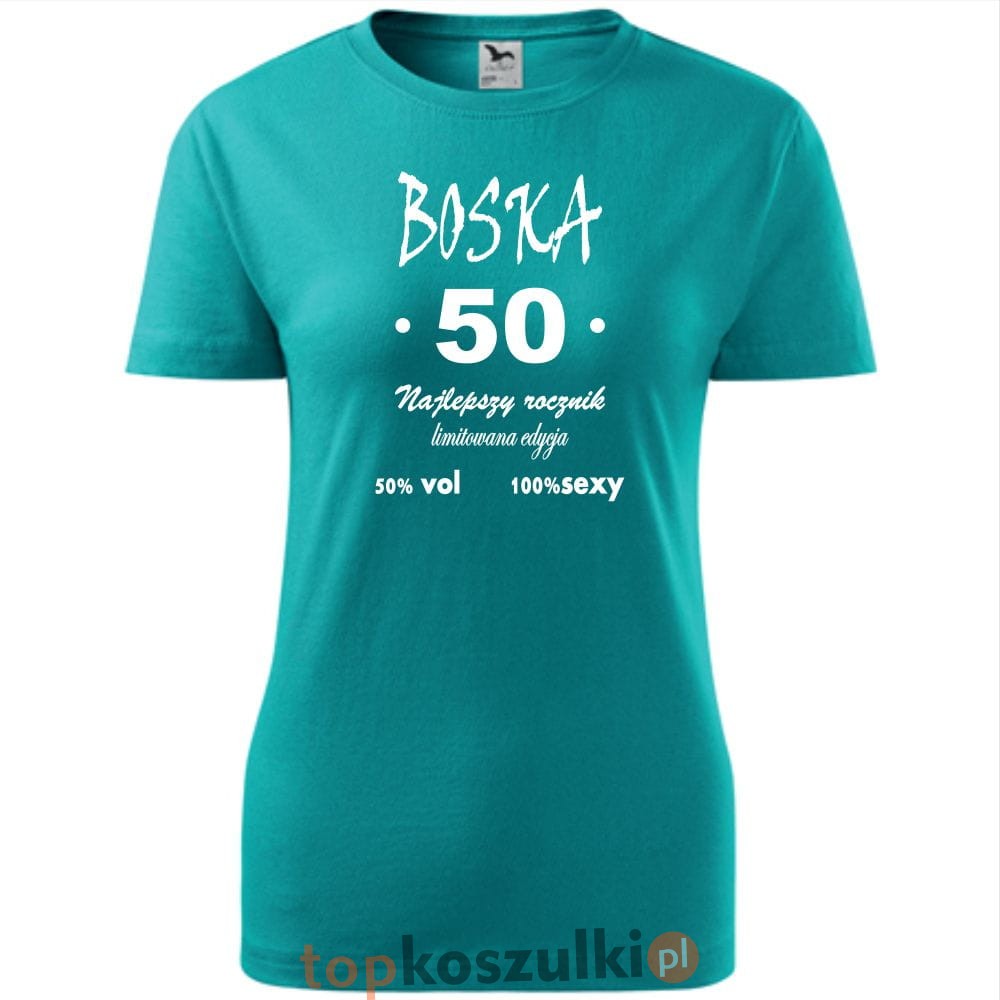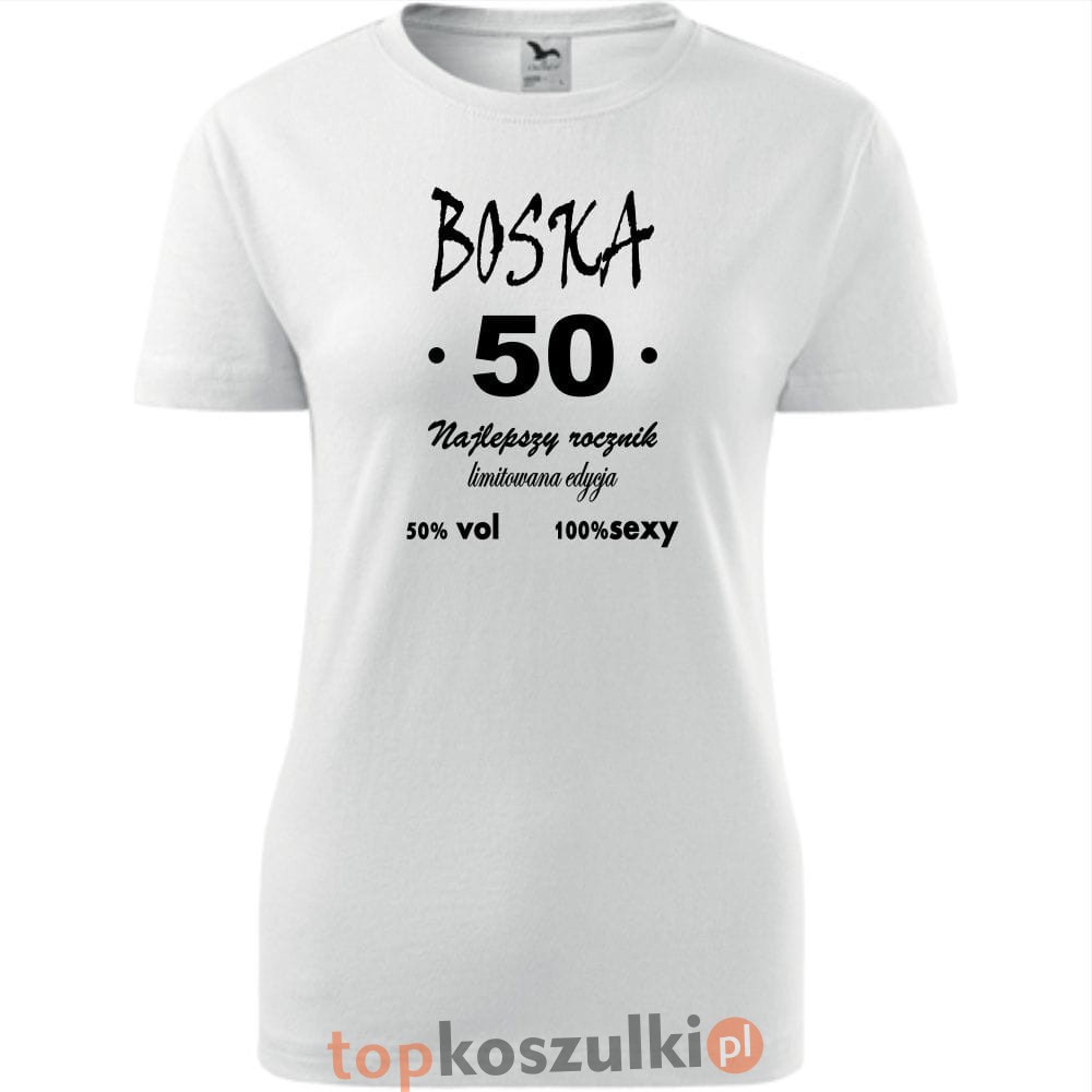 Niech 50 urodziny będą niezapomniane! Podaruj radość i styl z naszą koszulką "BOSKA 50"!