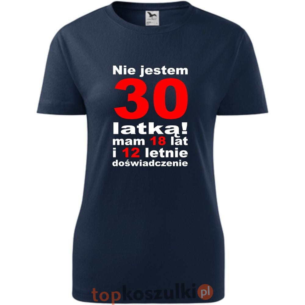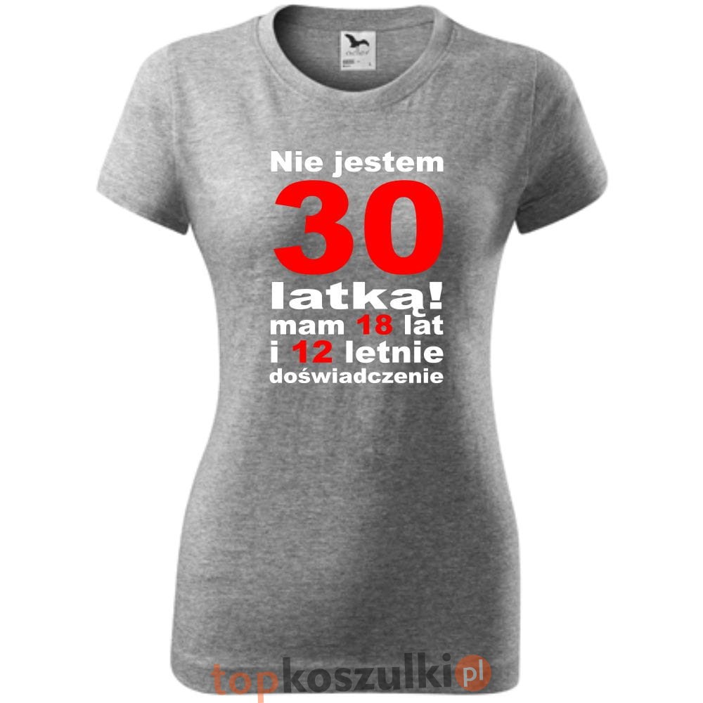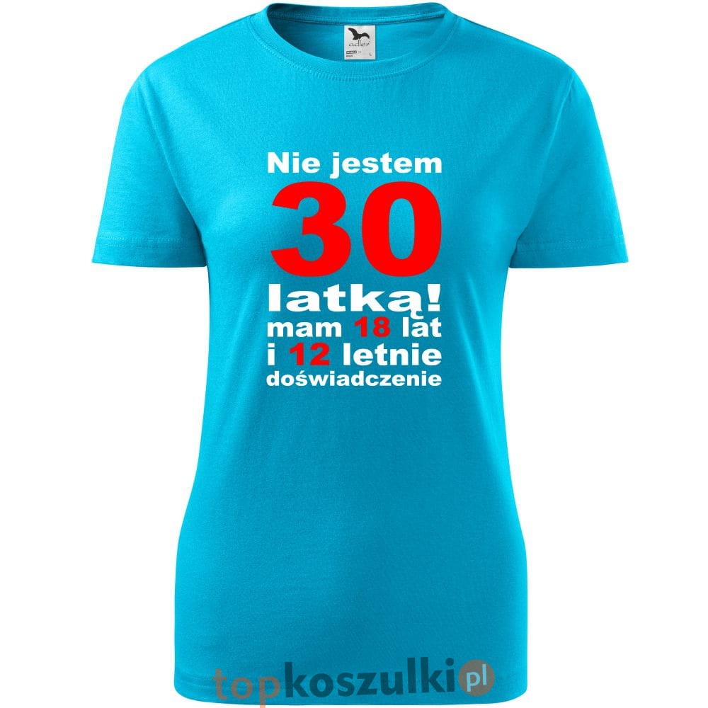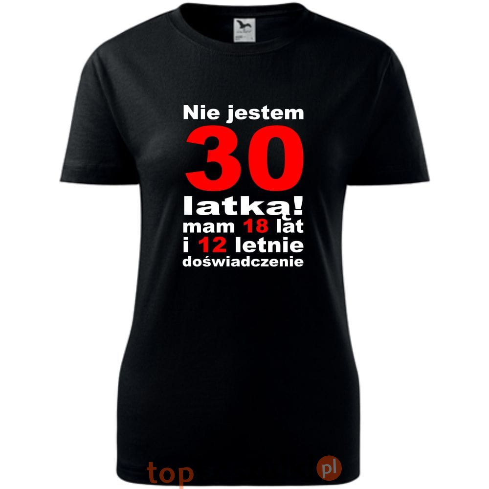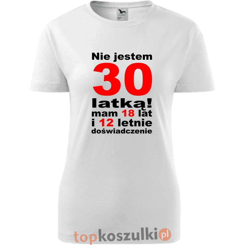 Damska koszulka - nie jestem 30 latką, mam 18 lat i 12 lat doświadczenia urodziny prezent bluzka