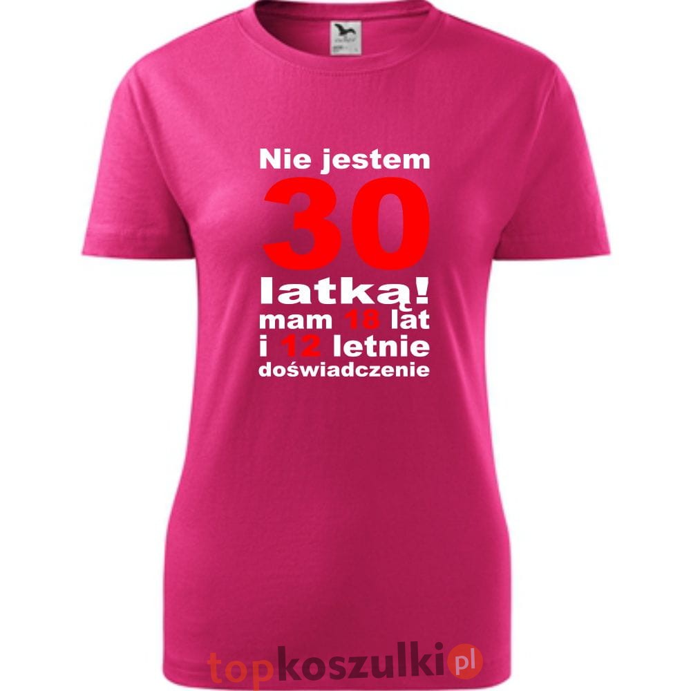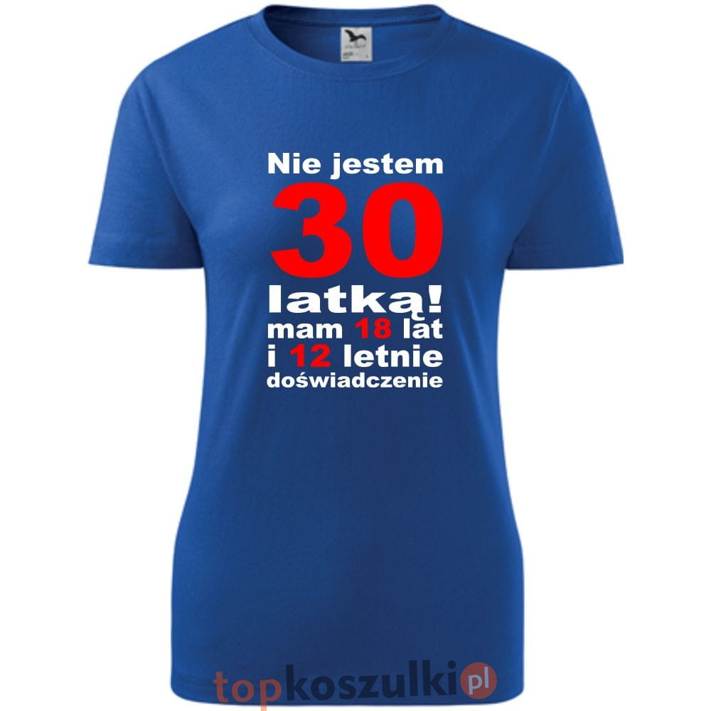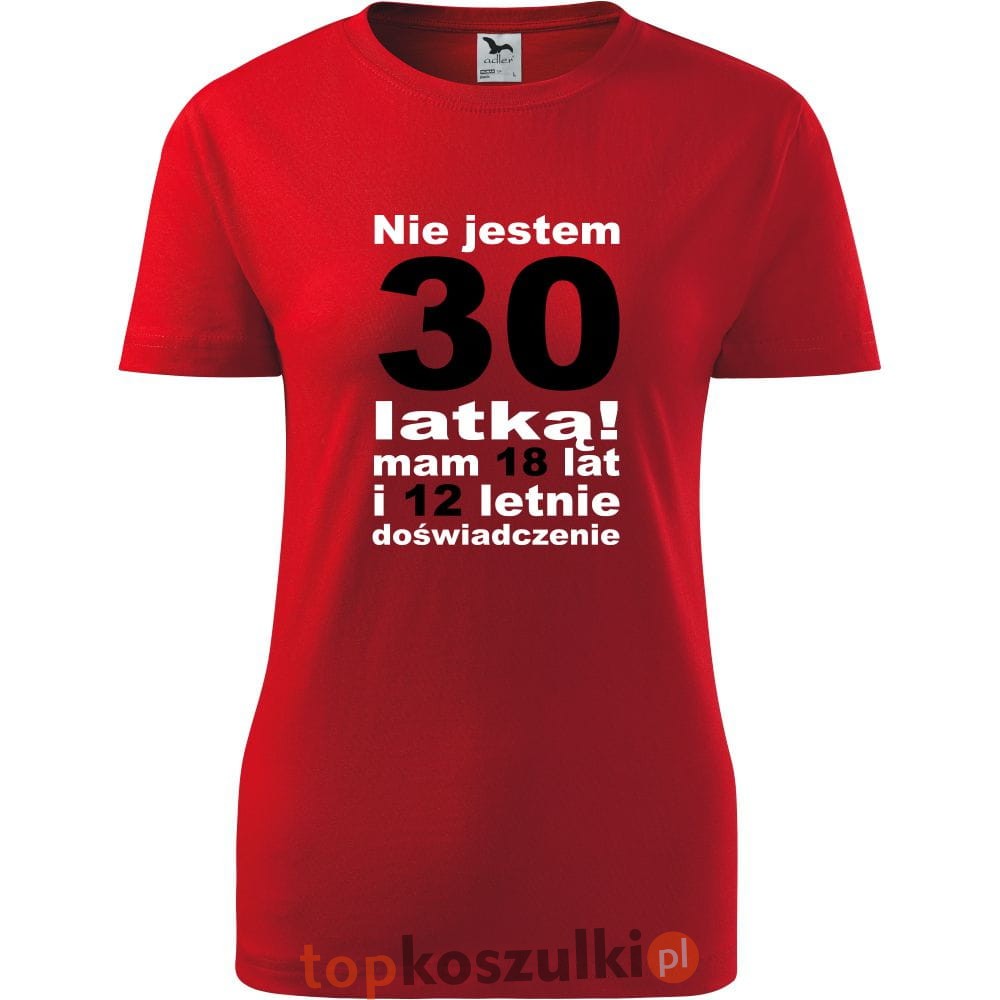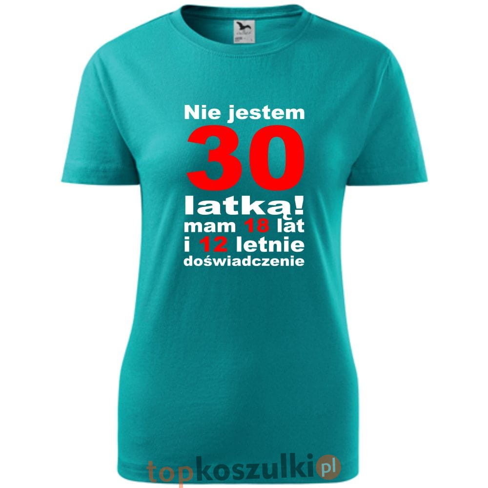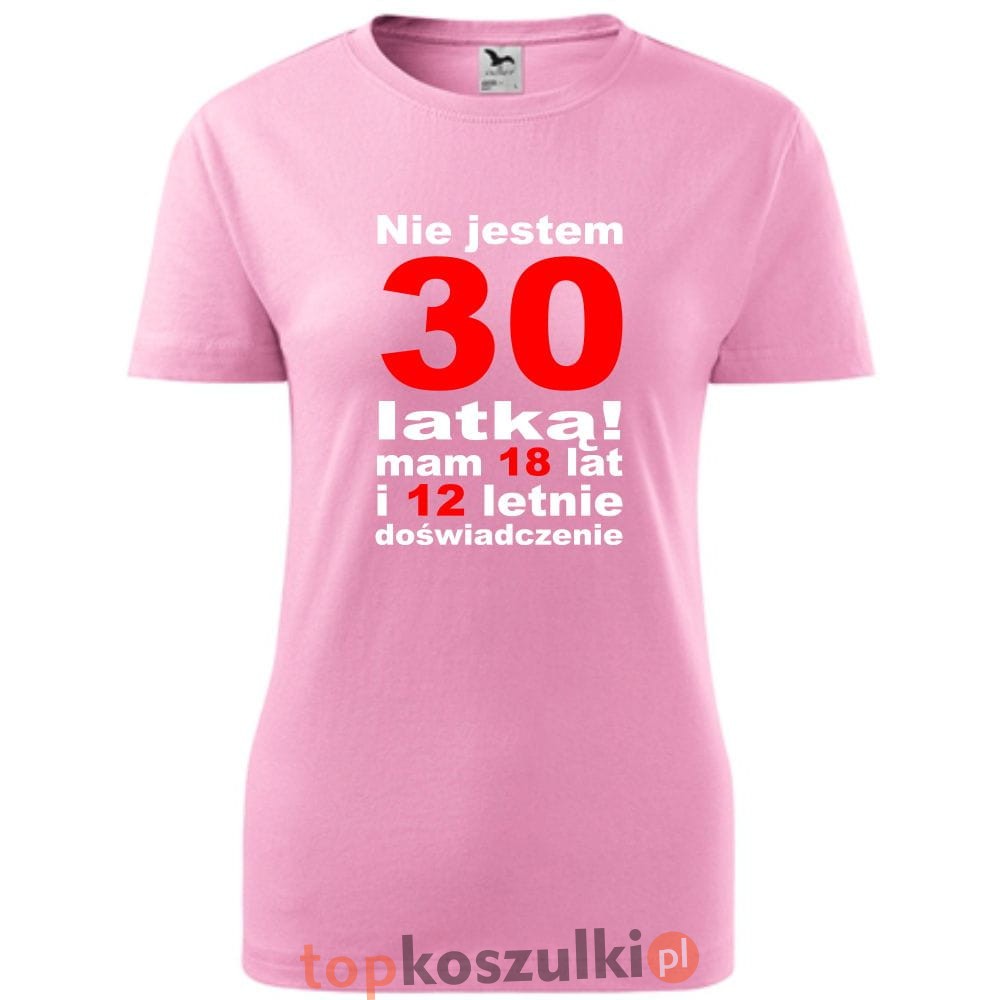 Damska koszulka - nie jestem 30 latką, mam 18 lat i 12 lat doświadczenia urodziny prezent bluzka