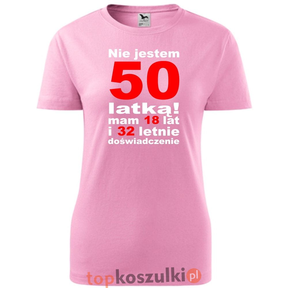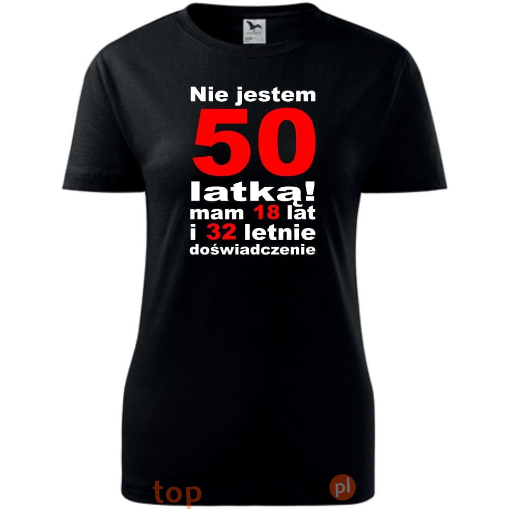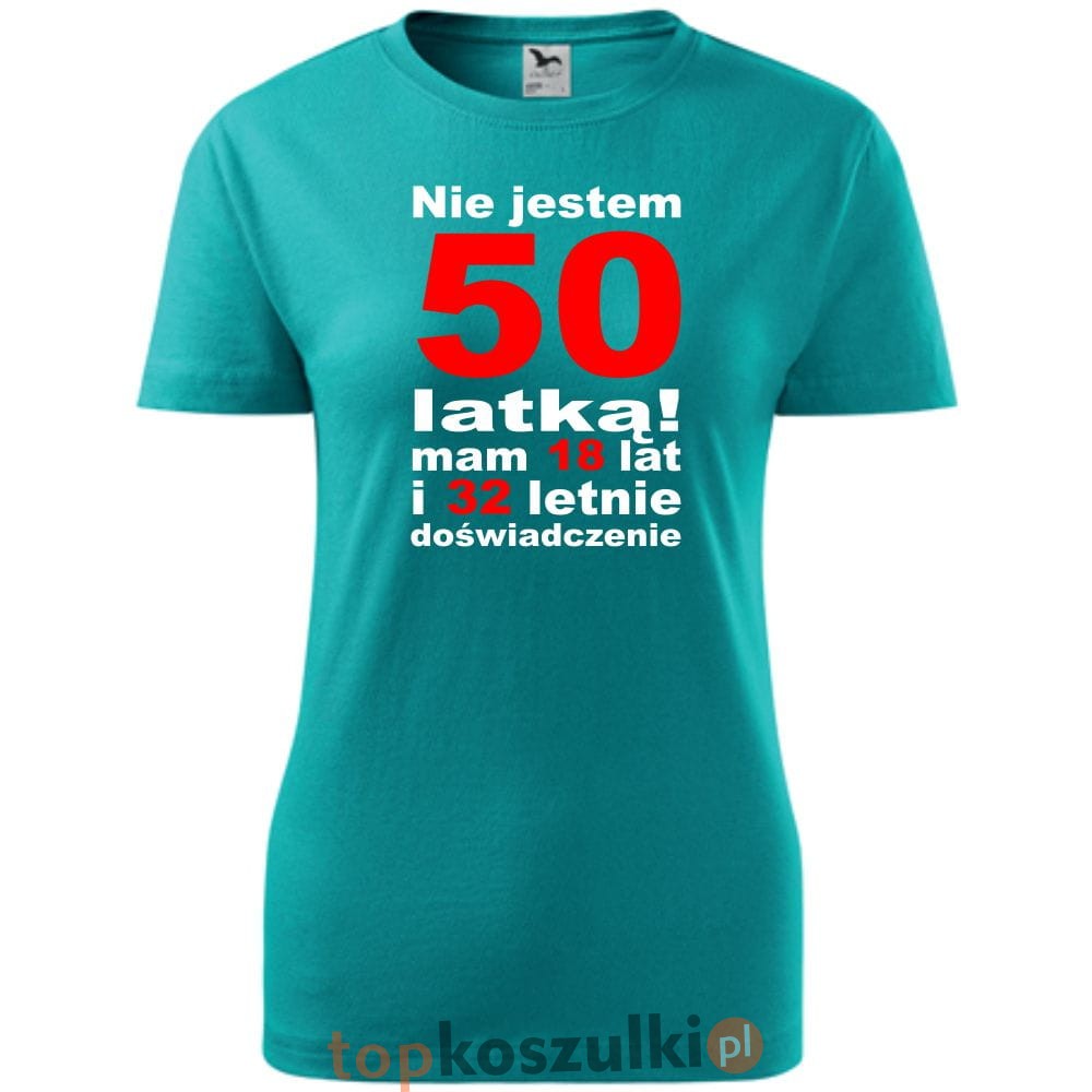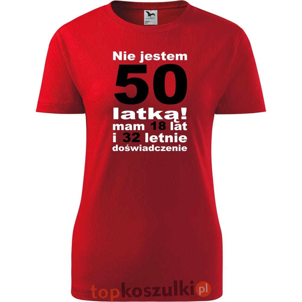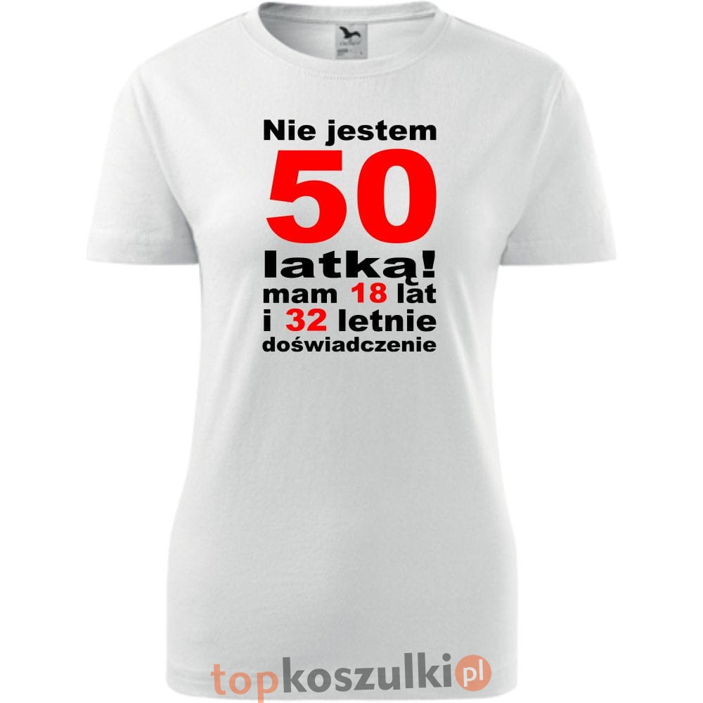 Damska koszulka - nie jestem 50 latką, mam 18 lat i 32 lata doświadczenia urodziny prezent