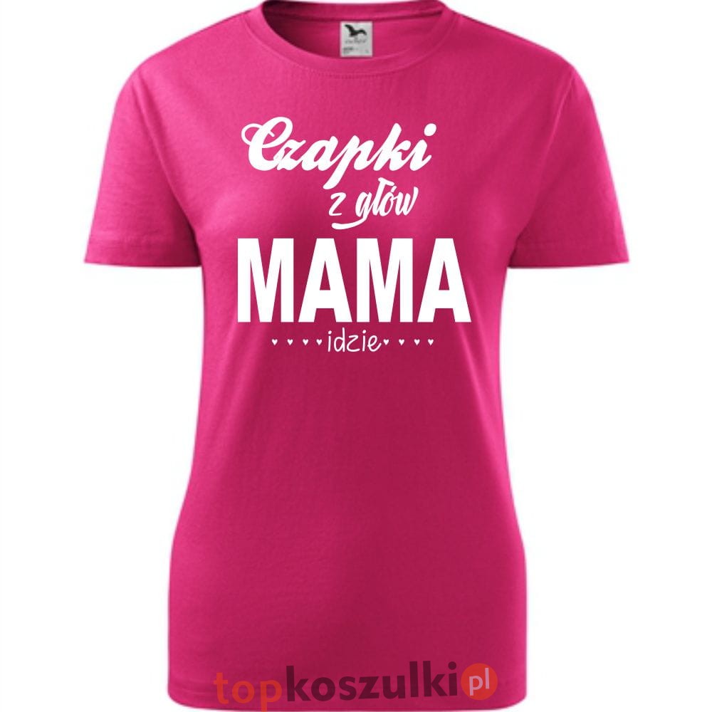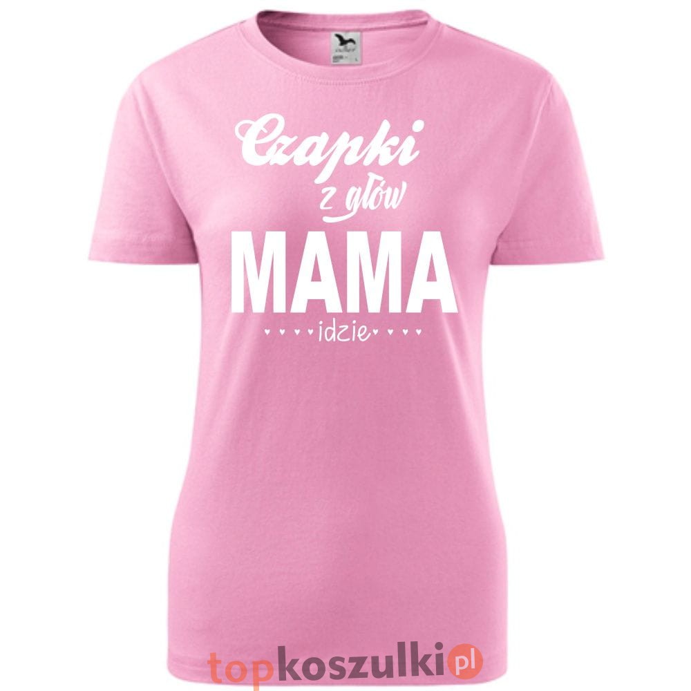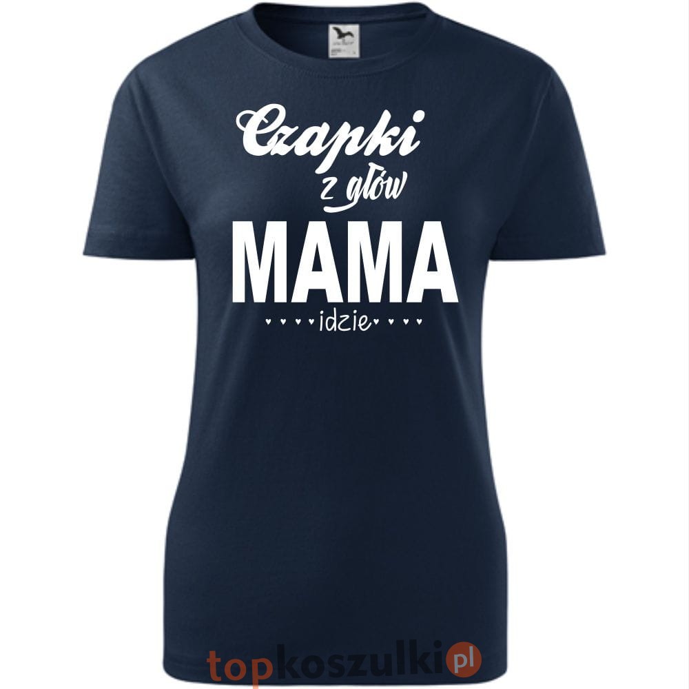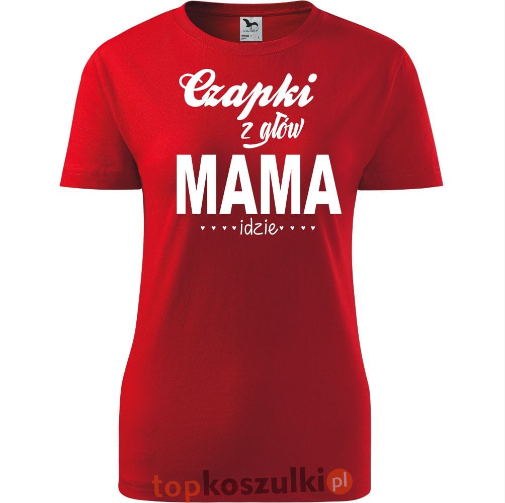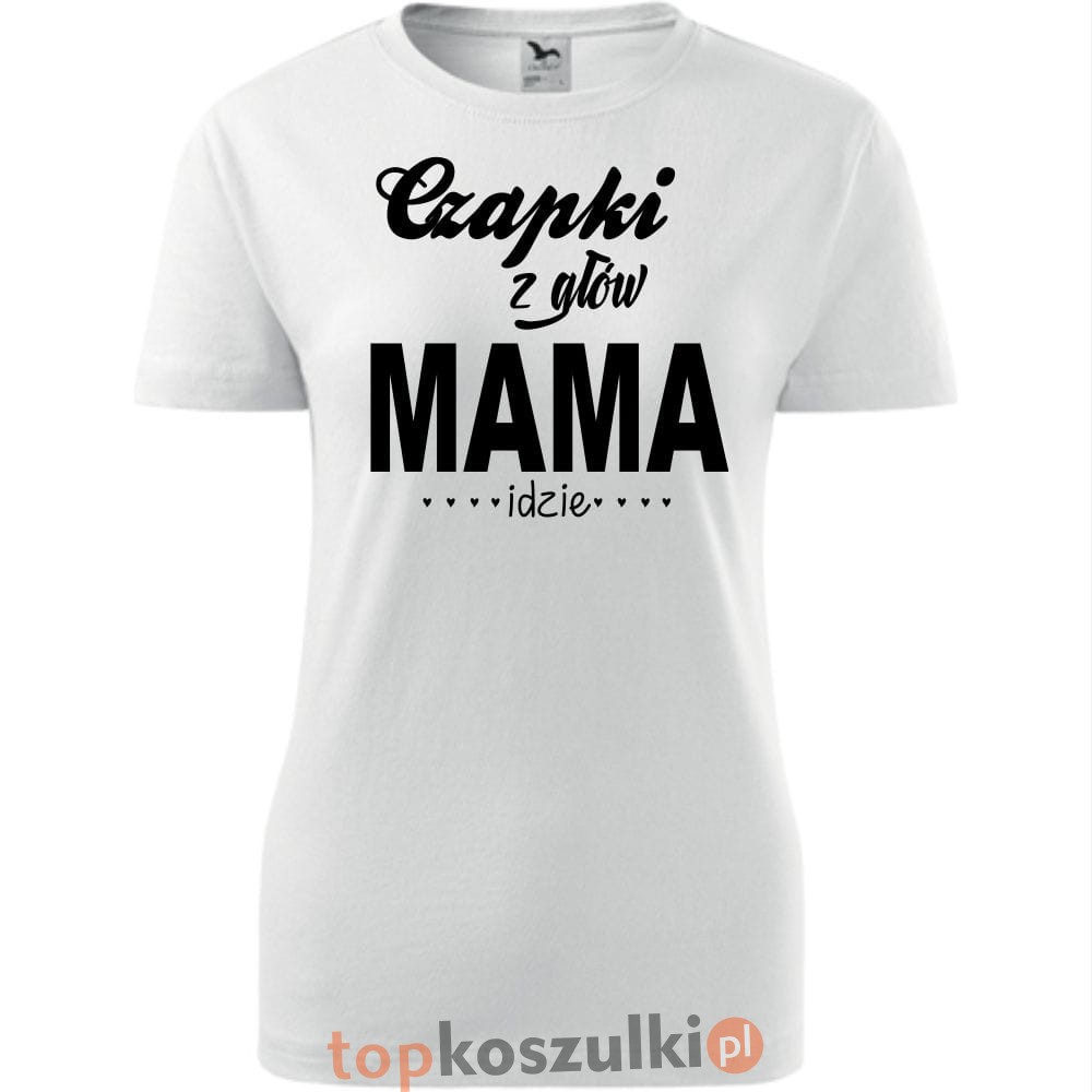 Damska koszulka taliowana - czapki z głów mama idzie
