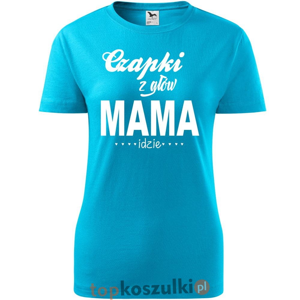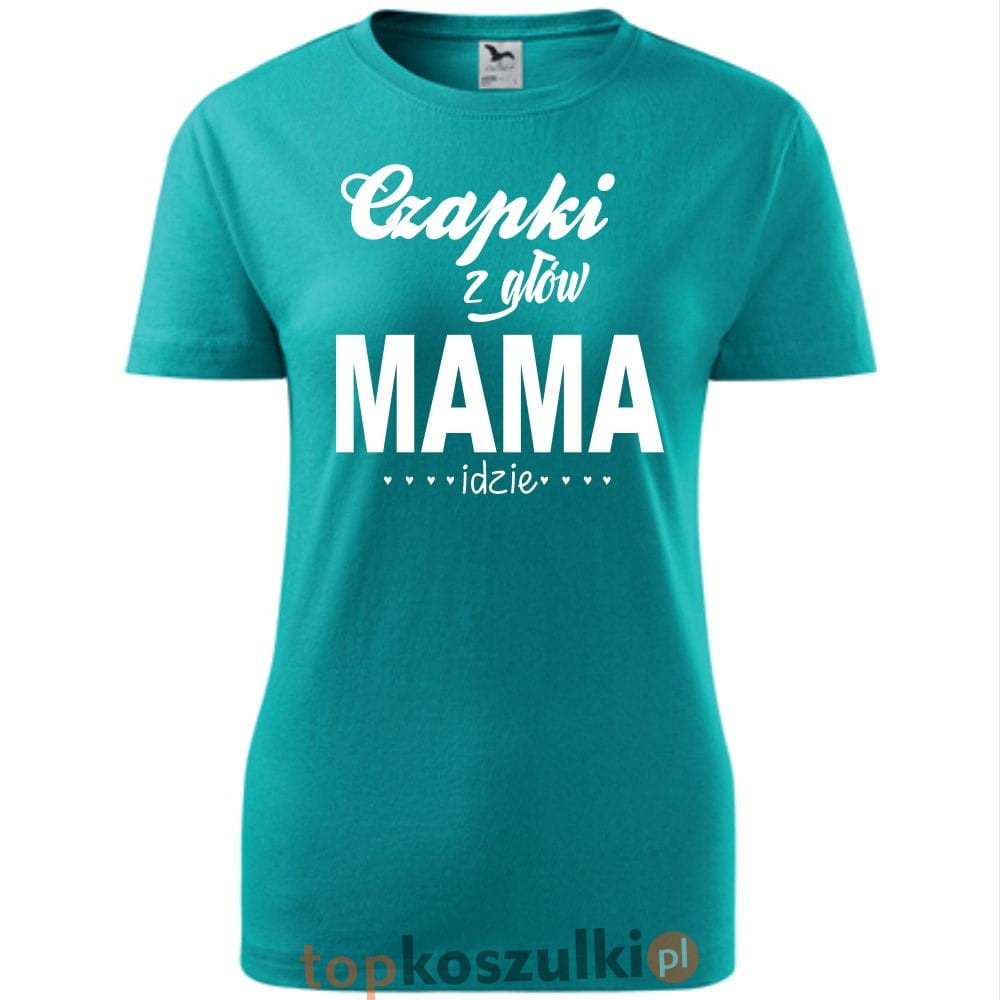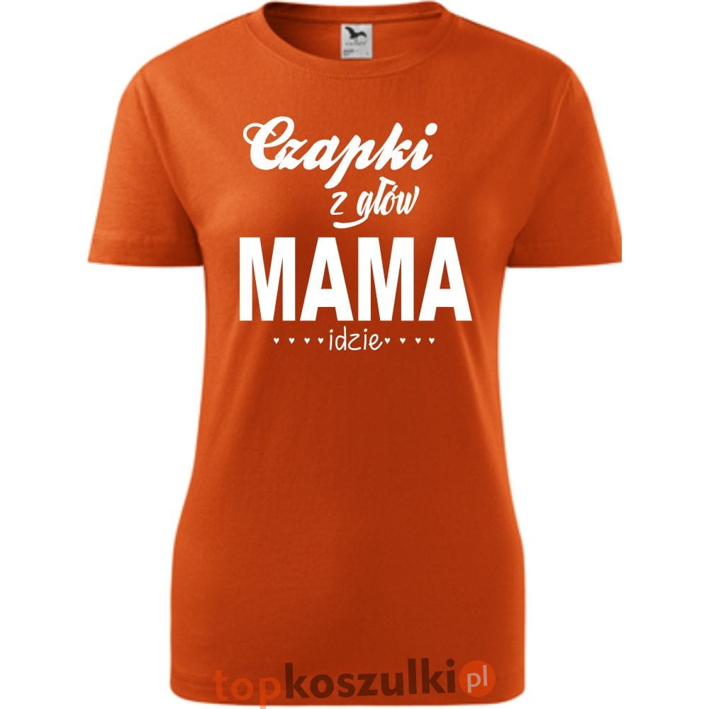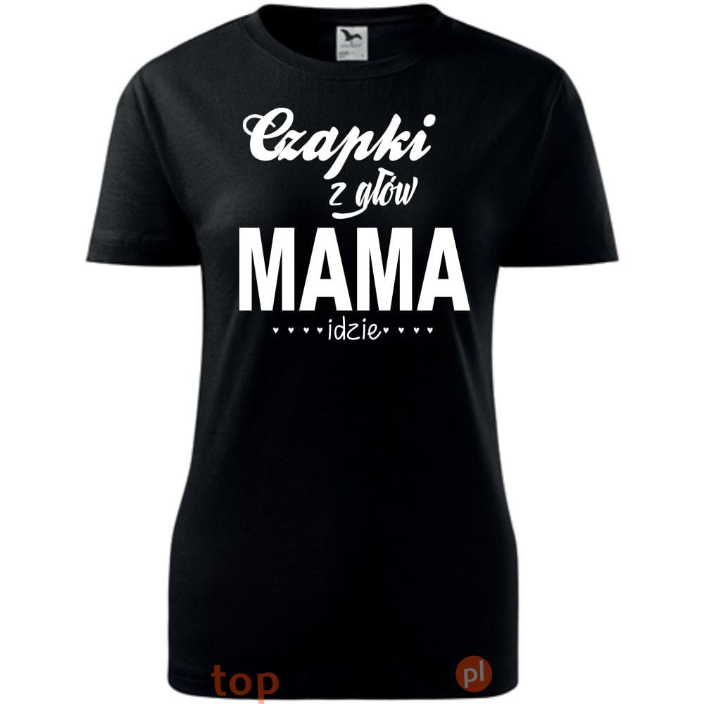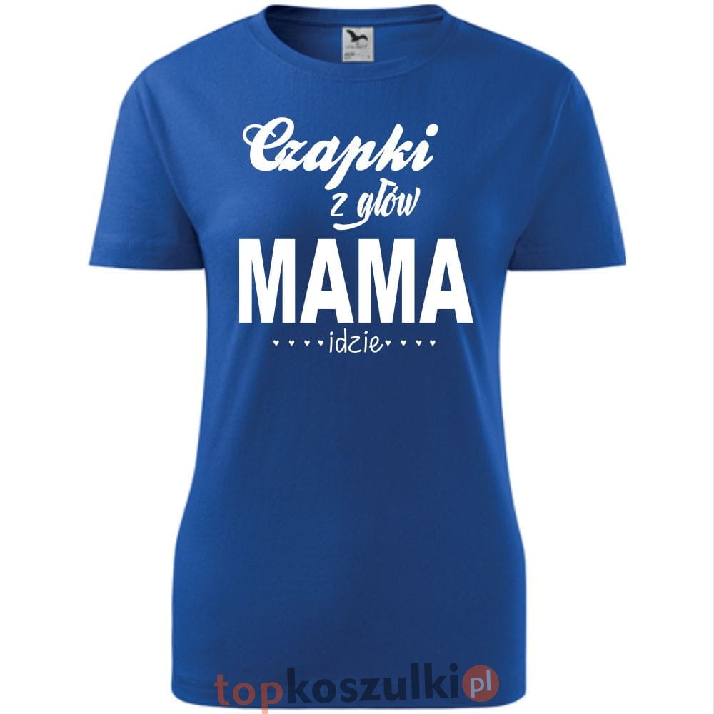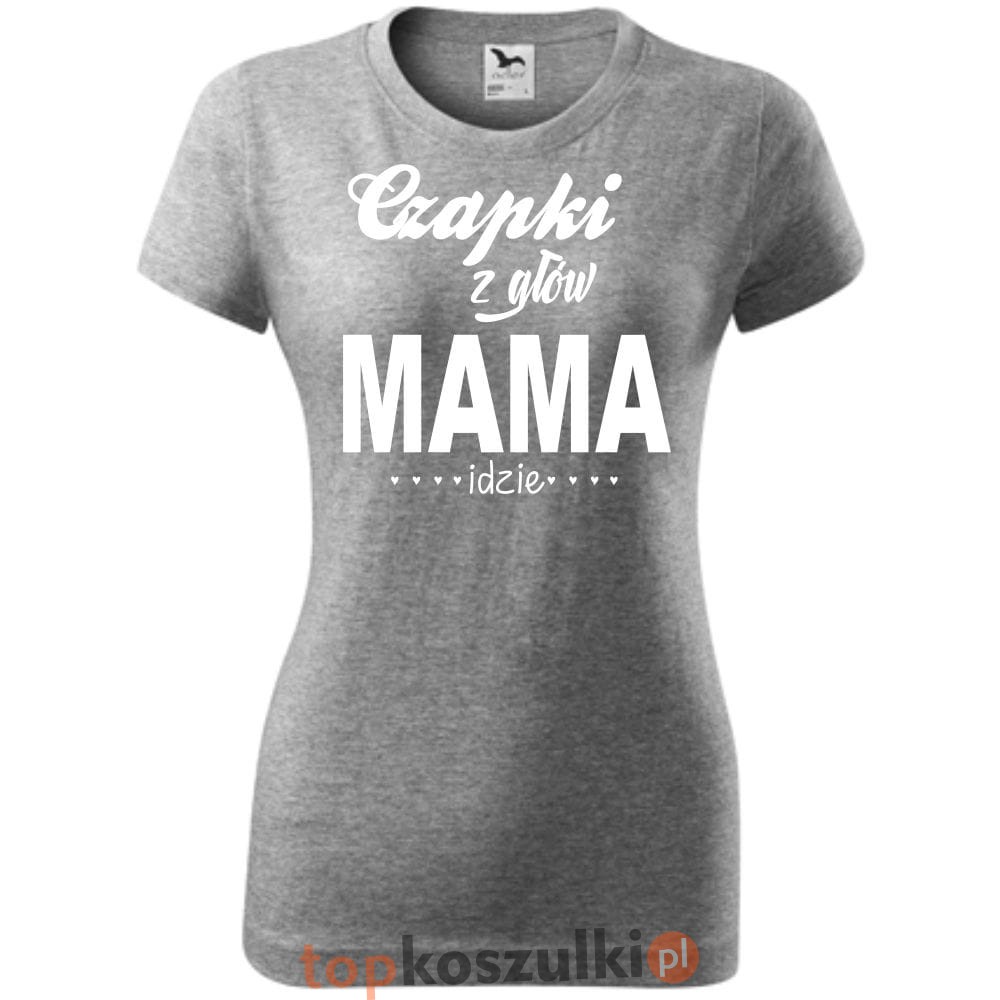 Damska koszulka taliowana - czapki z głów mama idzie