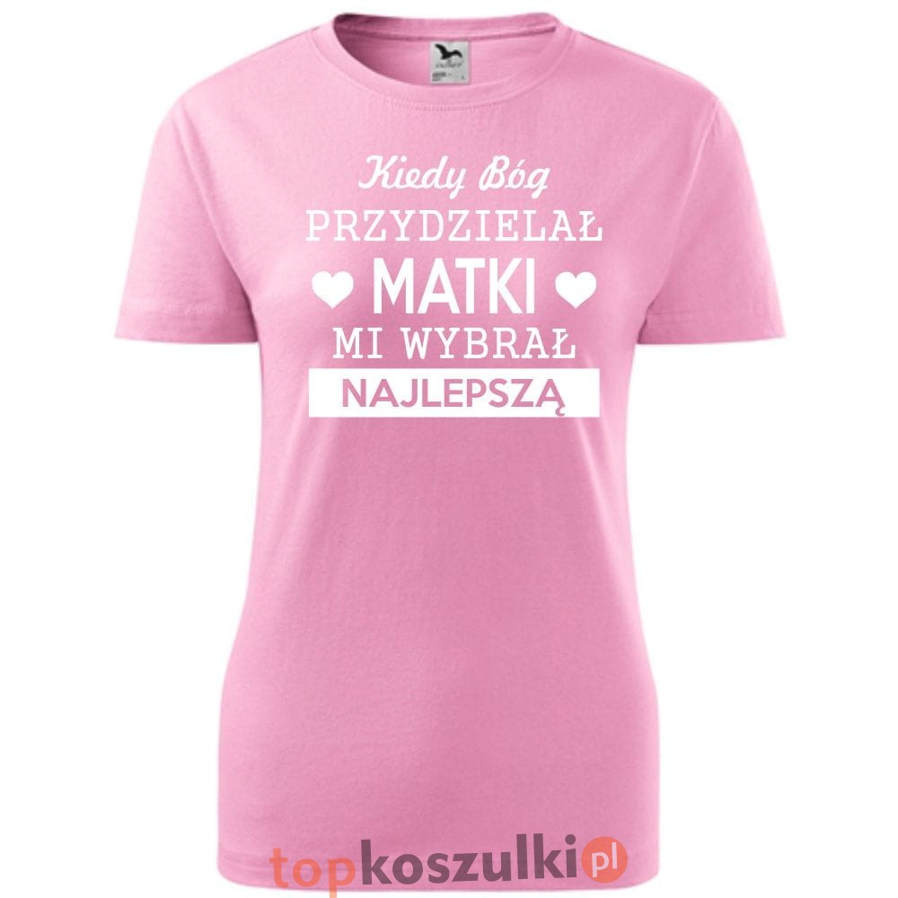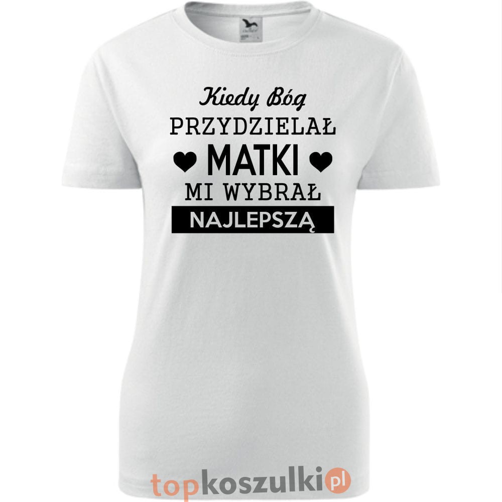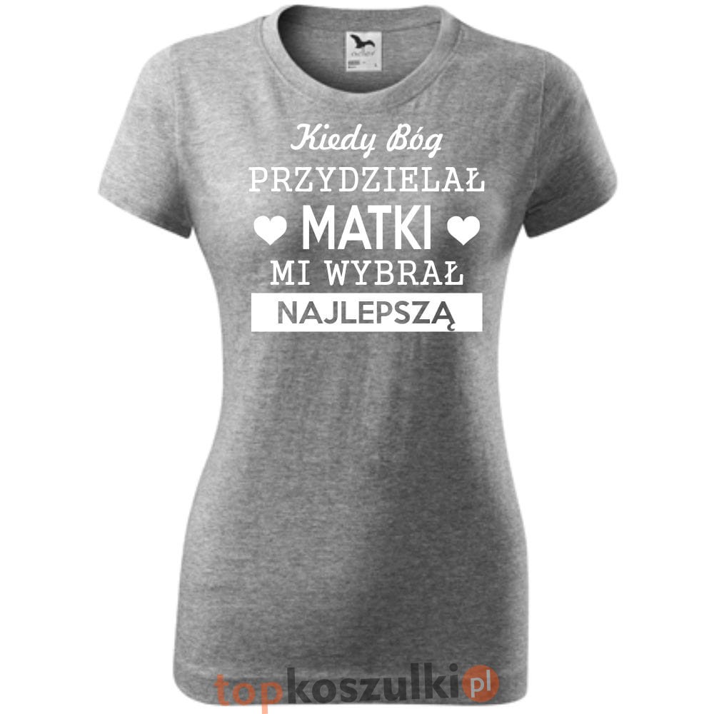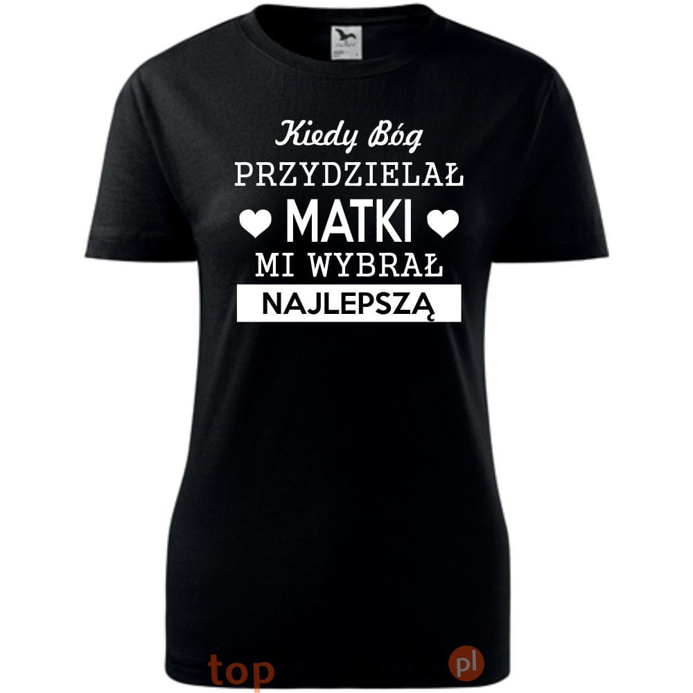 Dzień mamy to bardzo ważne święto dla wielu z nas. Tego dnia staramy się wyrazić wdzięczność dla swoich mam, za to, co dla nas robią. Świetnym pomysłem, aby przekazać swoje uznanie i podziw dla mamy będzie koszulka “kiedy Bóg przydzielał matki, mi wybrał najlepszą!” Taki top to gwarancja uśmiechu na buzi mamy. Każdy z nas uwielbia komplementy, ale te wypowiadane z ust dzieci mają podobno potrójną moc. Taliowana koszulka specjalnie dopasowana do kobiecego ciała