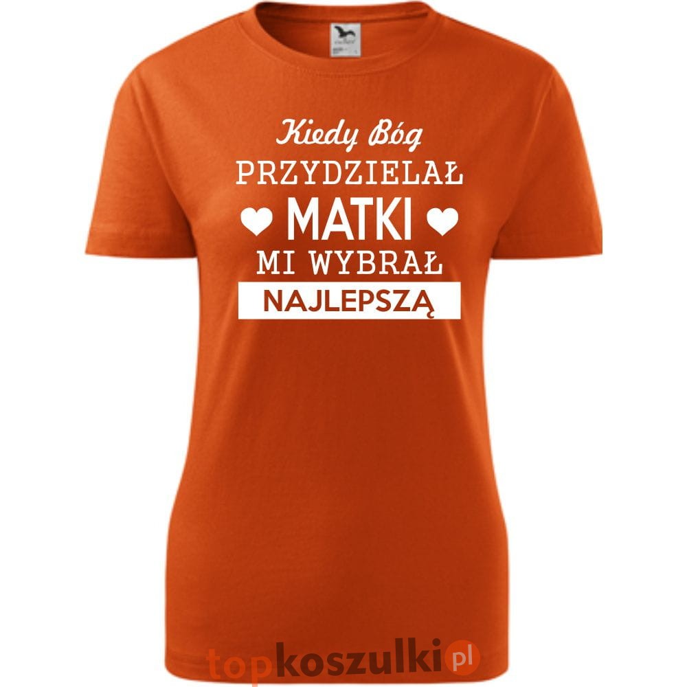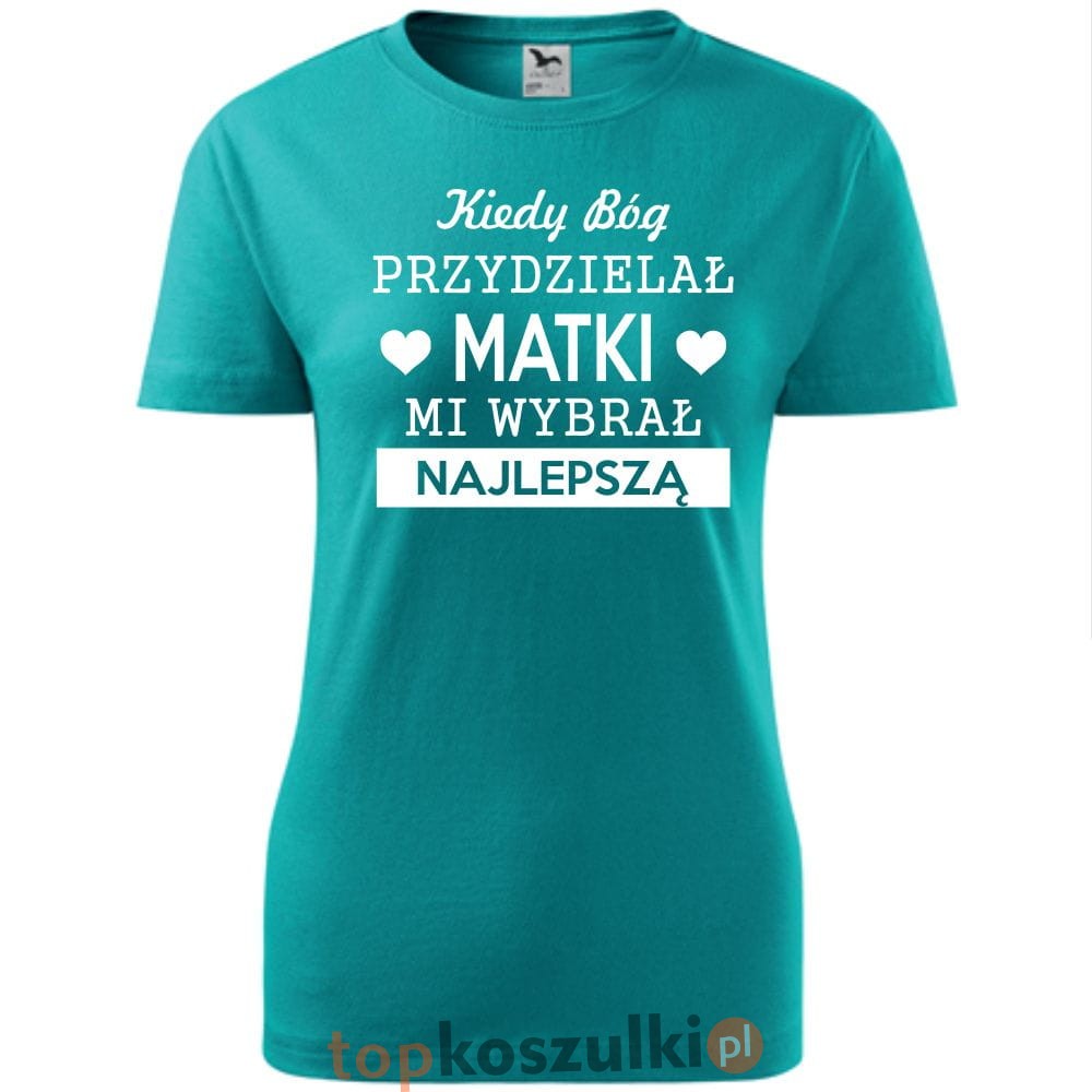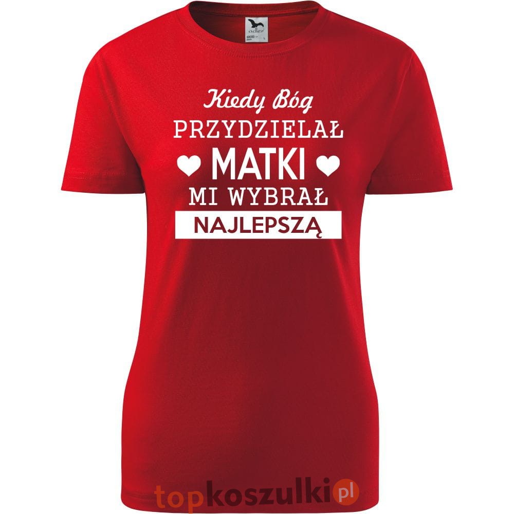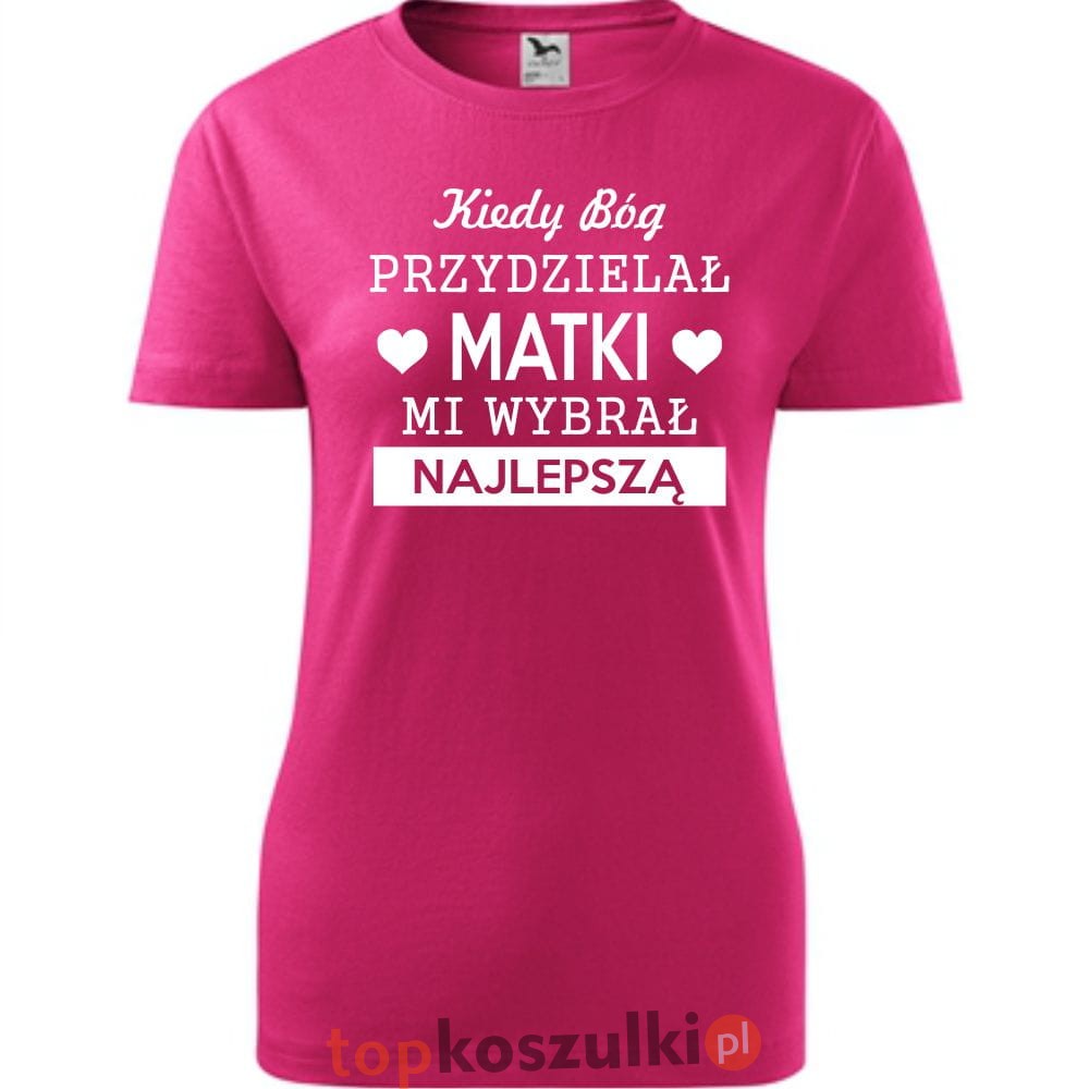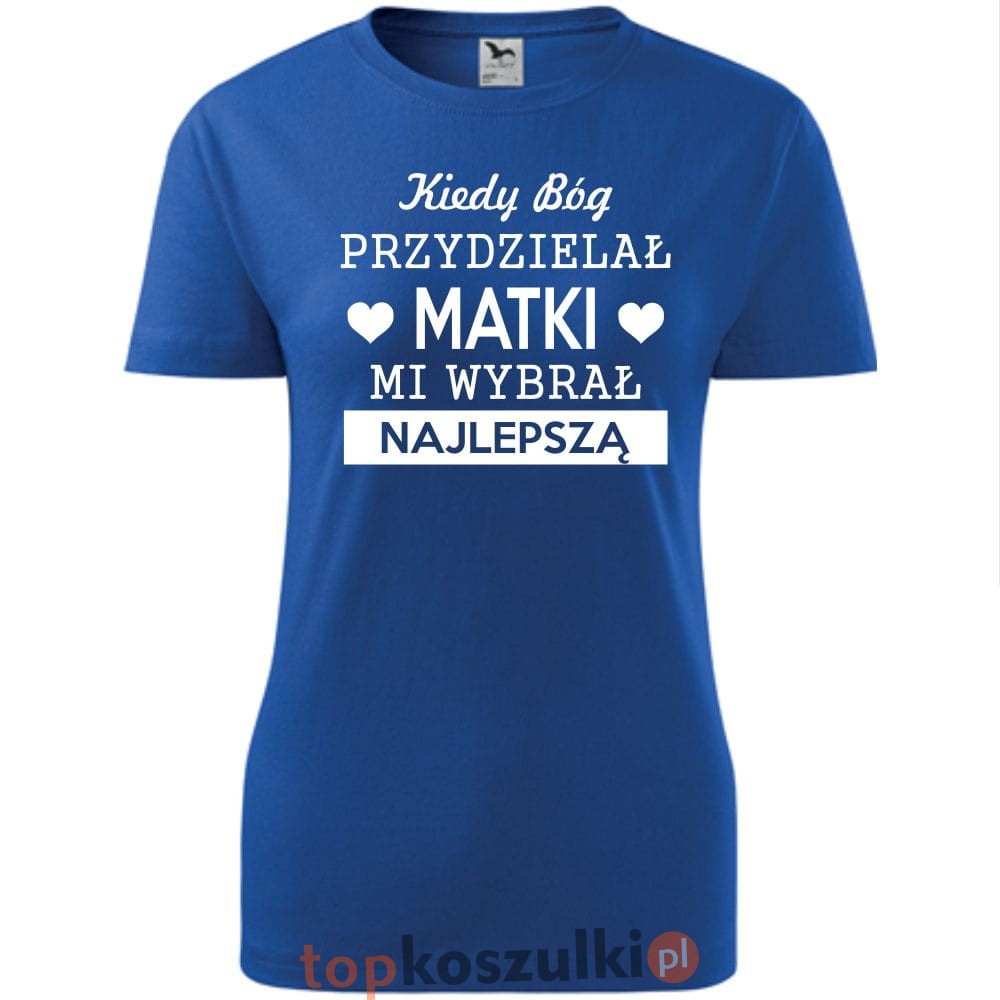 Dzień mamy to bardzo ważne święto dla wielu z nas. Tego dnia staramy się wyrazić wdzięczność dla swoich mam, za to, co dla nas robią. Świetnym pomysłem, aby przekazać swoje uznanie i podziw dla mamy będzie koszulka “kiedy Bóg przydzielał matki, mi wybrał najlepszą!” Taki top to gwarancja uśmiechu na buzi mamy. Każdy z nas uwielbia komplementy, ale te wypowiadane z ust dzieci mają podobno potrójną moc. Taliowana koszulka specjalnie dopasowana do kobiecego ciała
