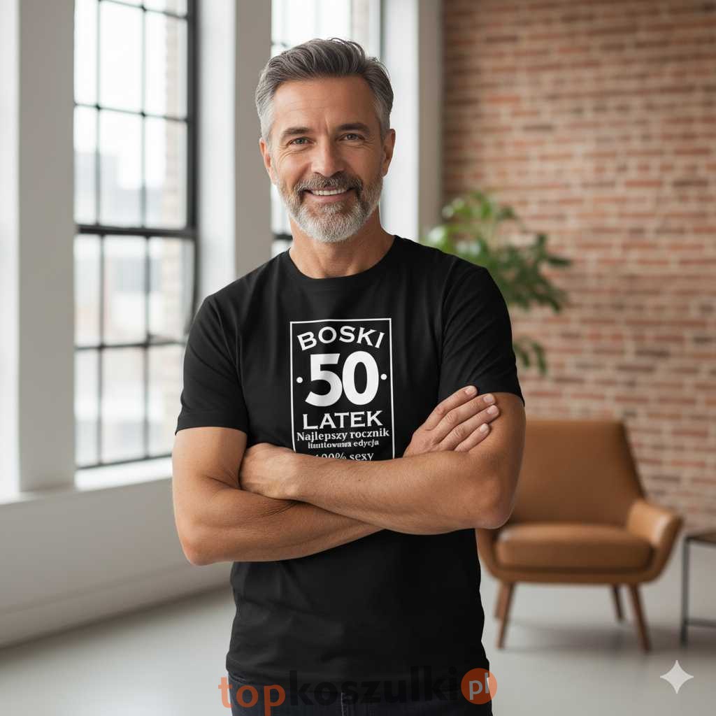 Podaruj uśmiech i styl w jednym! Zamów koszulkę "Boski 50-latek" już dziś i spraw, by 50. urodziny były niezapomniane!