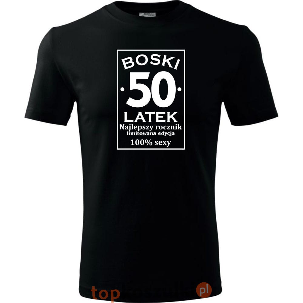 Szukasz idealnego prezentu na 50. urodziny dla mężczyzny? Ta wyjątkowa, czarna koszulka to strzał w dziesiątkę! Napis "Boski 50-latek. Najlepszy rocznik. Limitowana edycja. 100% sexy" sprawi, że jubilat poczuje się wyjątkowo i z humorem podejdzie do kolejnych lat.