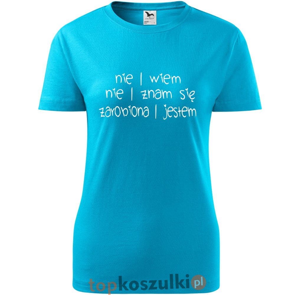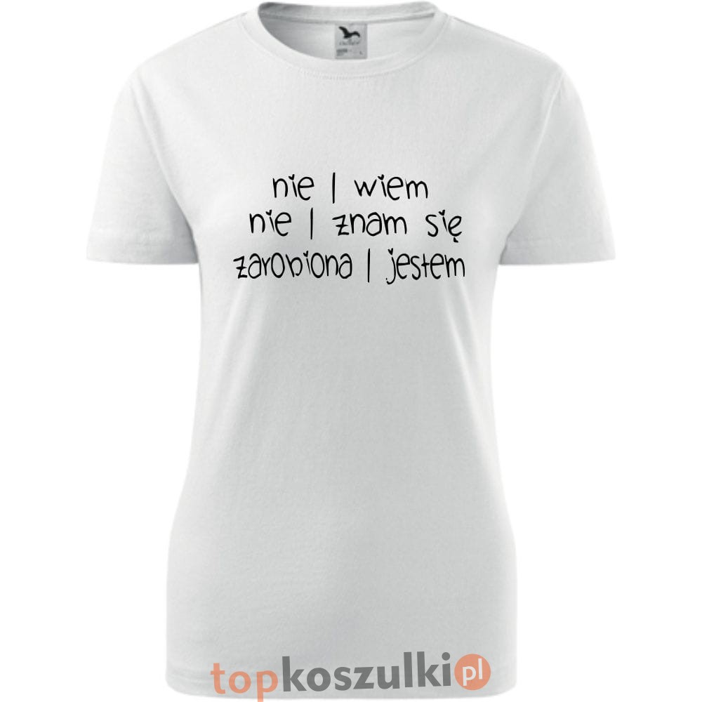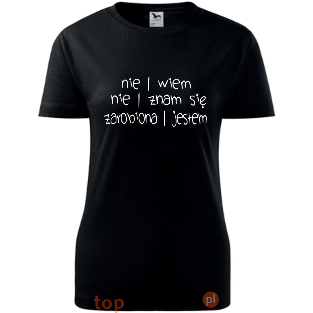 Damska koszulka - Nie wiem, nie znam się, zarobiona jestem