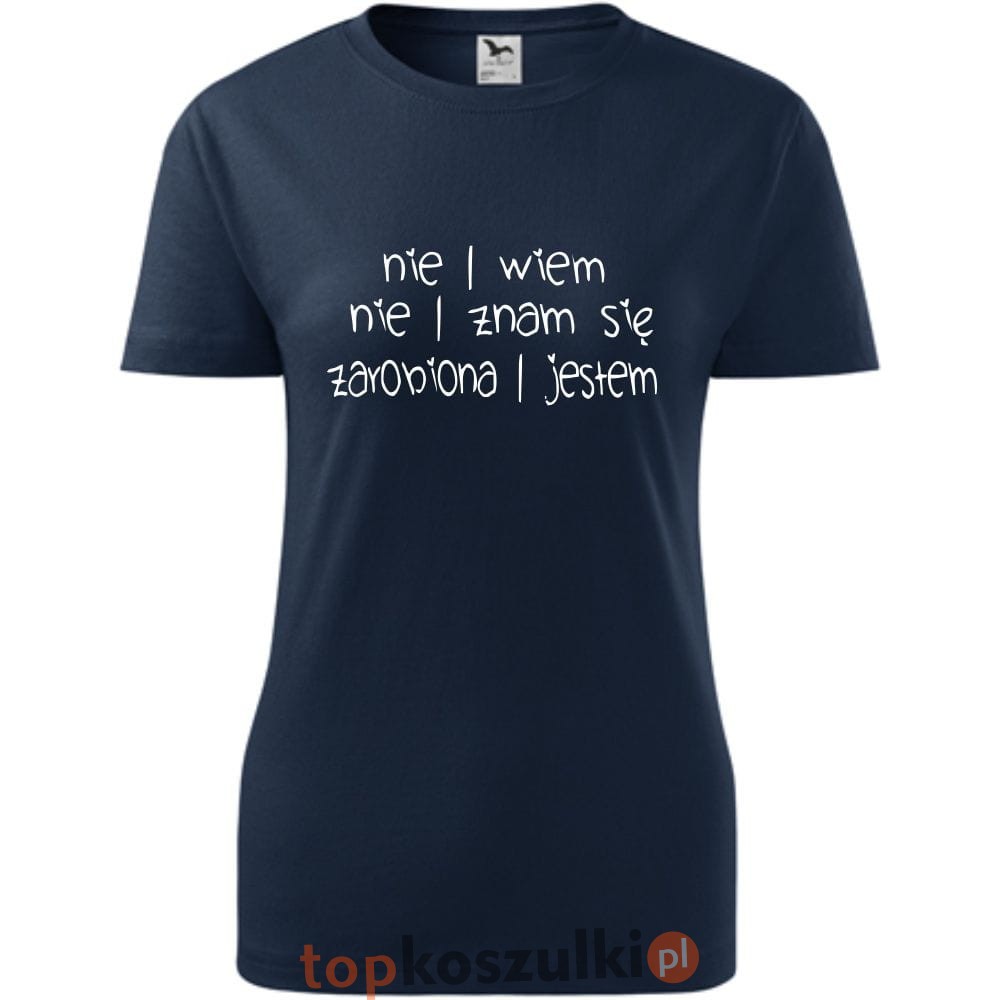 Wyjątkowy T-shirt "Nie Wiem, Nie Znam Się, Zarobiona Jestem" – Must-Have dla Zapracowanych