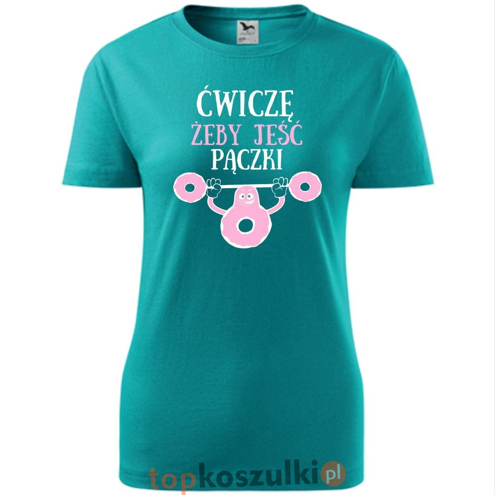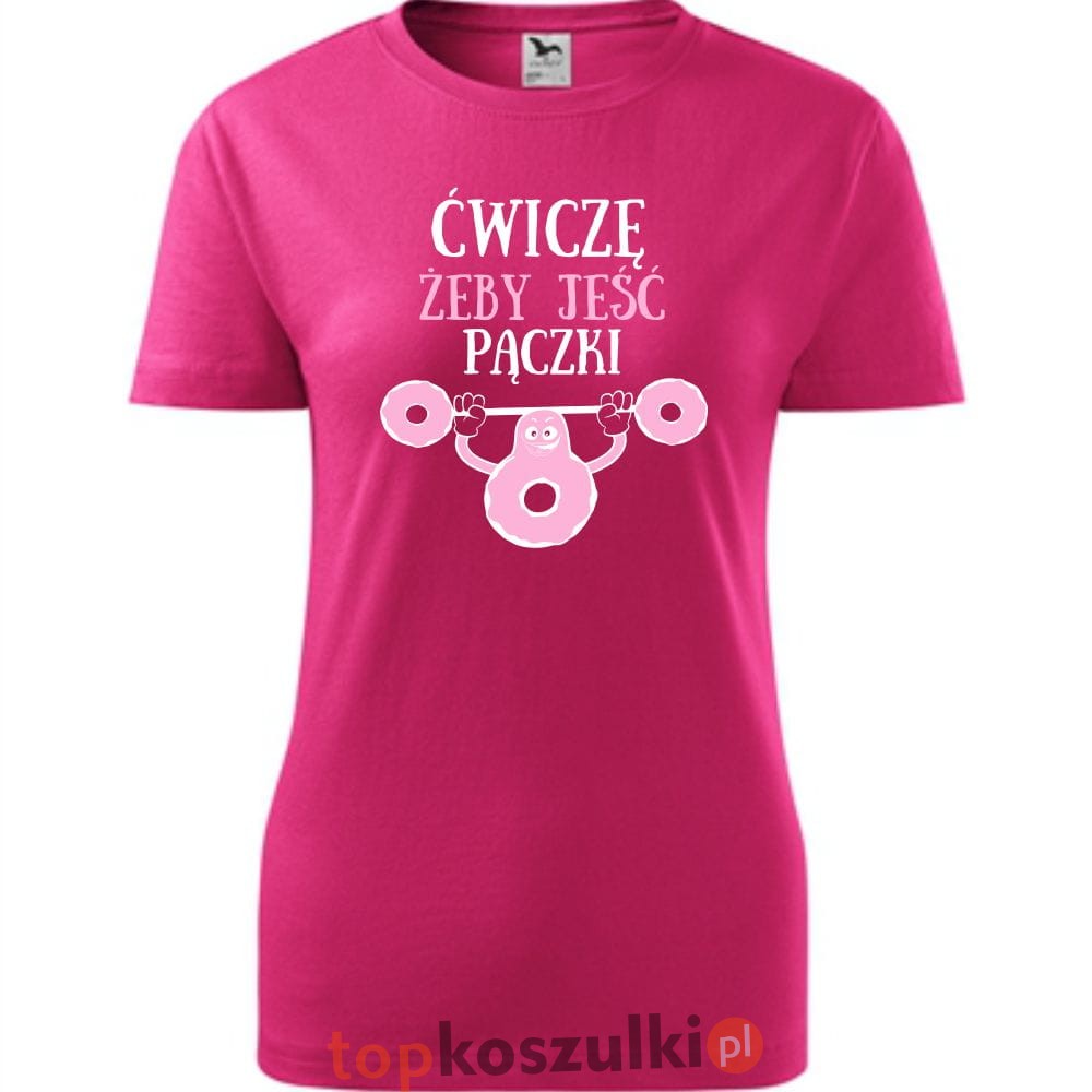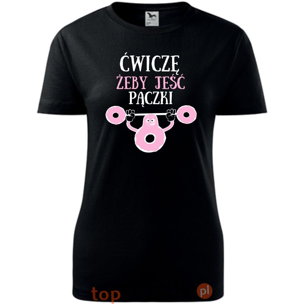 damska koszulka taliowana - ćwiczę żeby jeść pączki