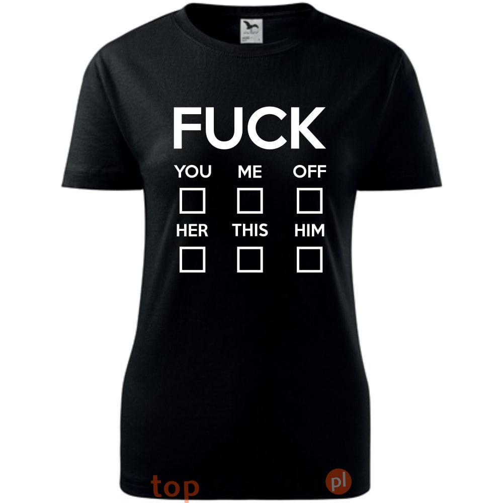 damska koszulka taliowana - fuck- you, me, off, her, this, him