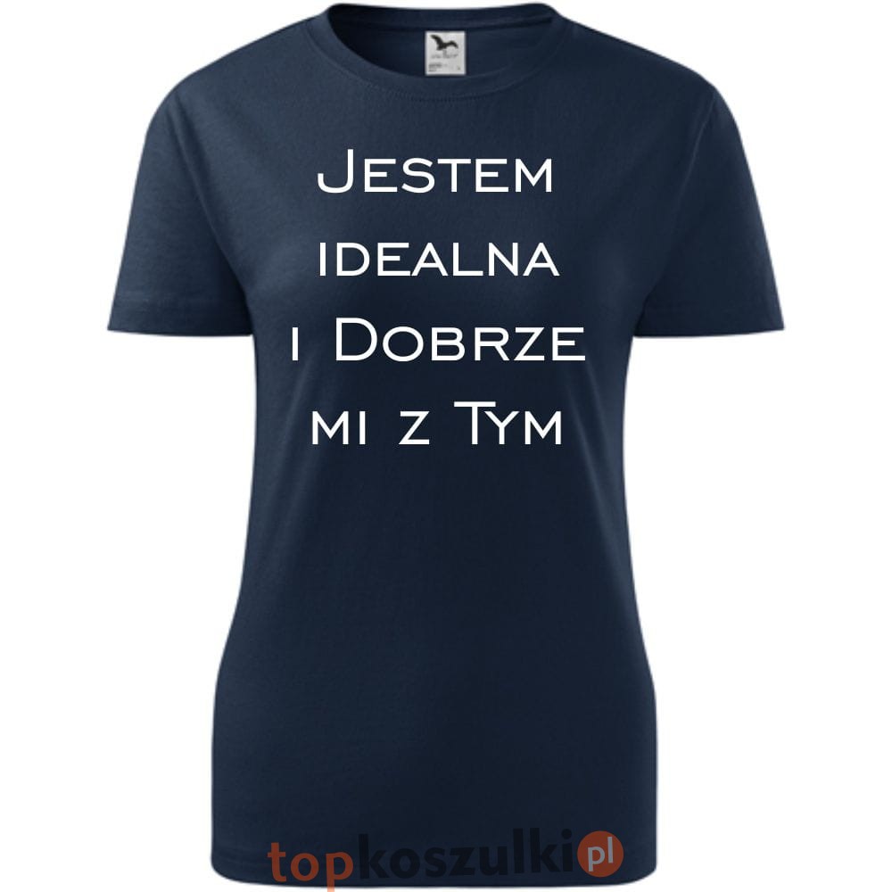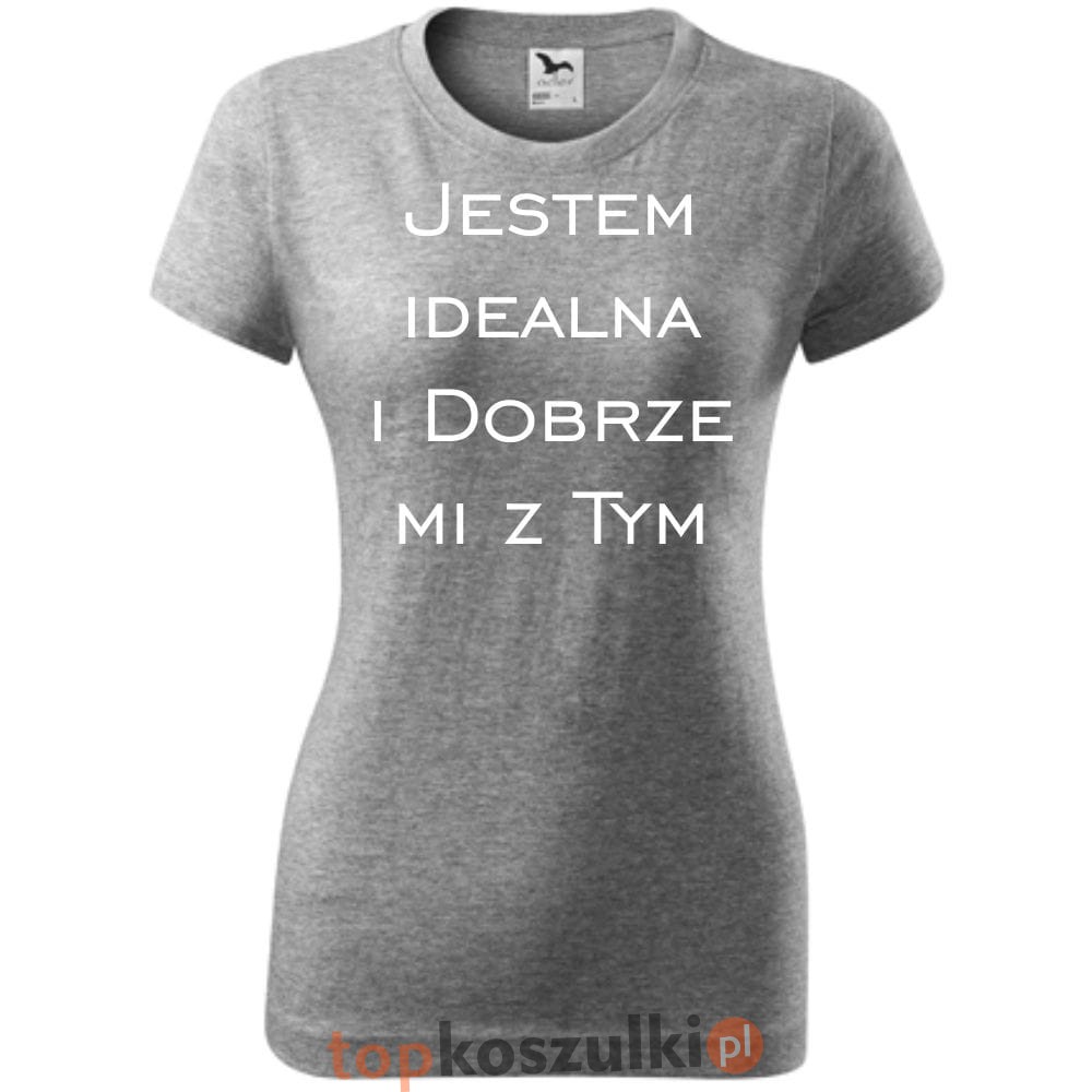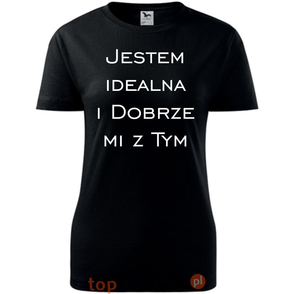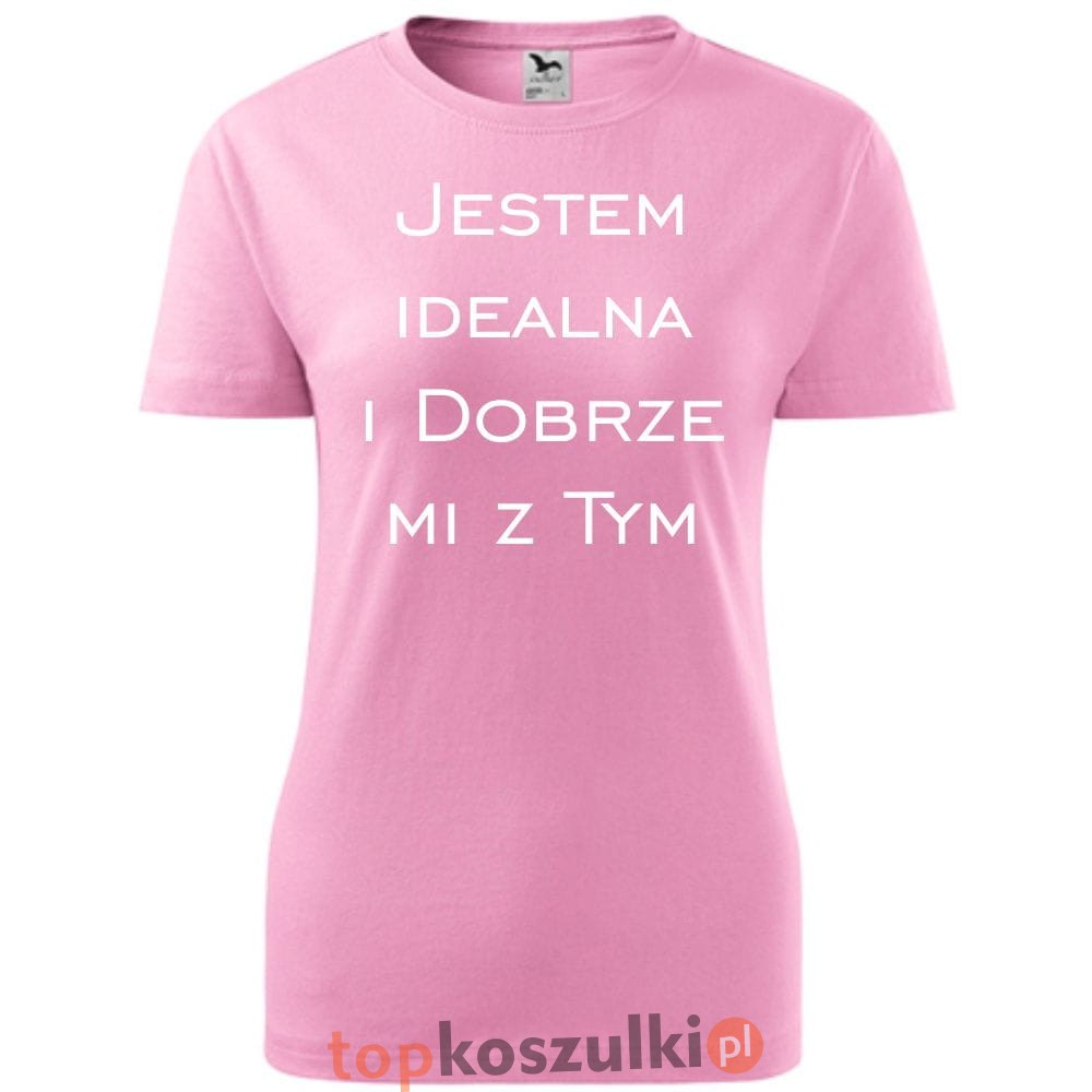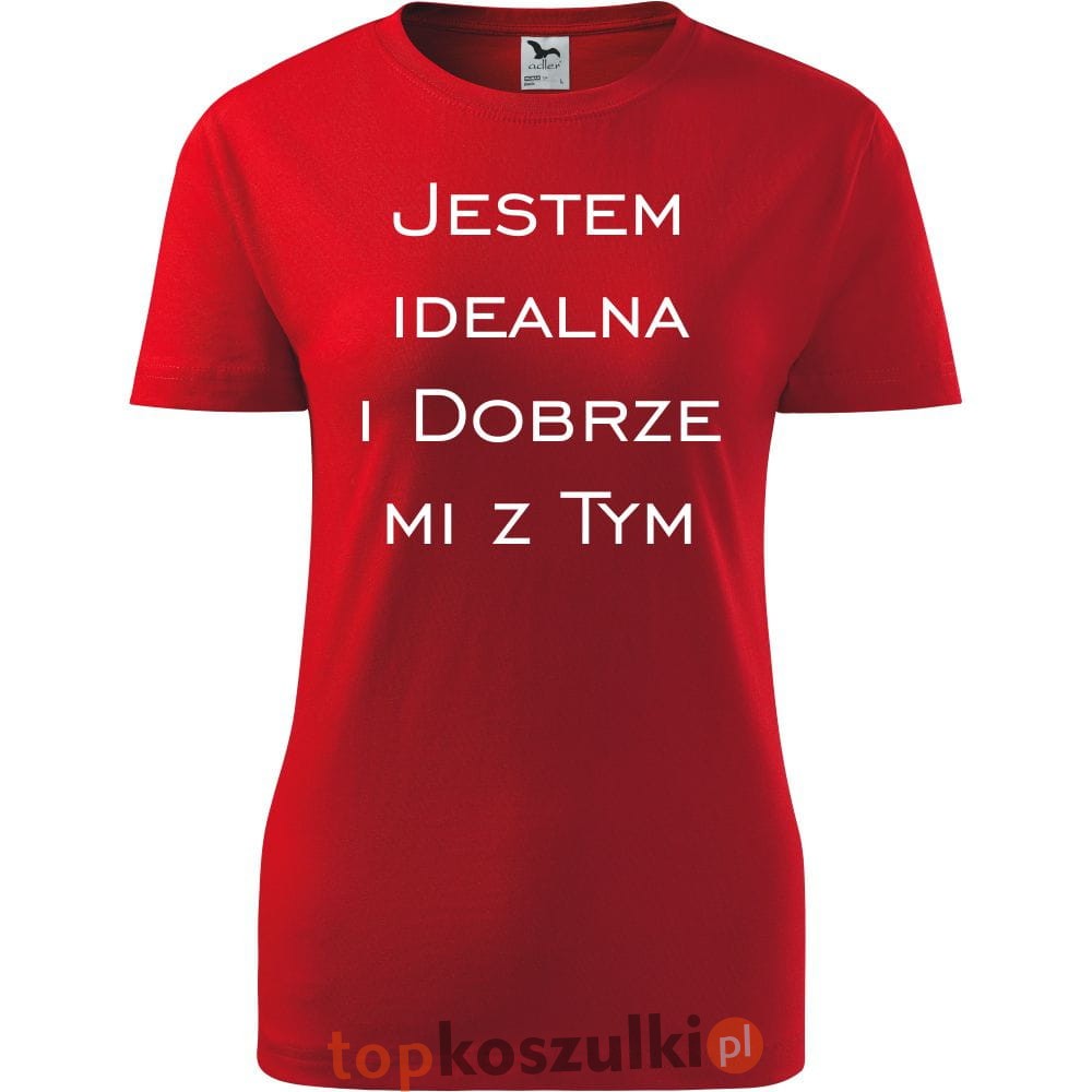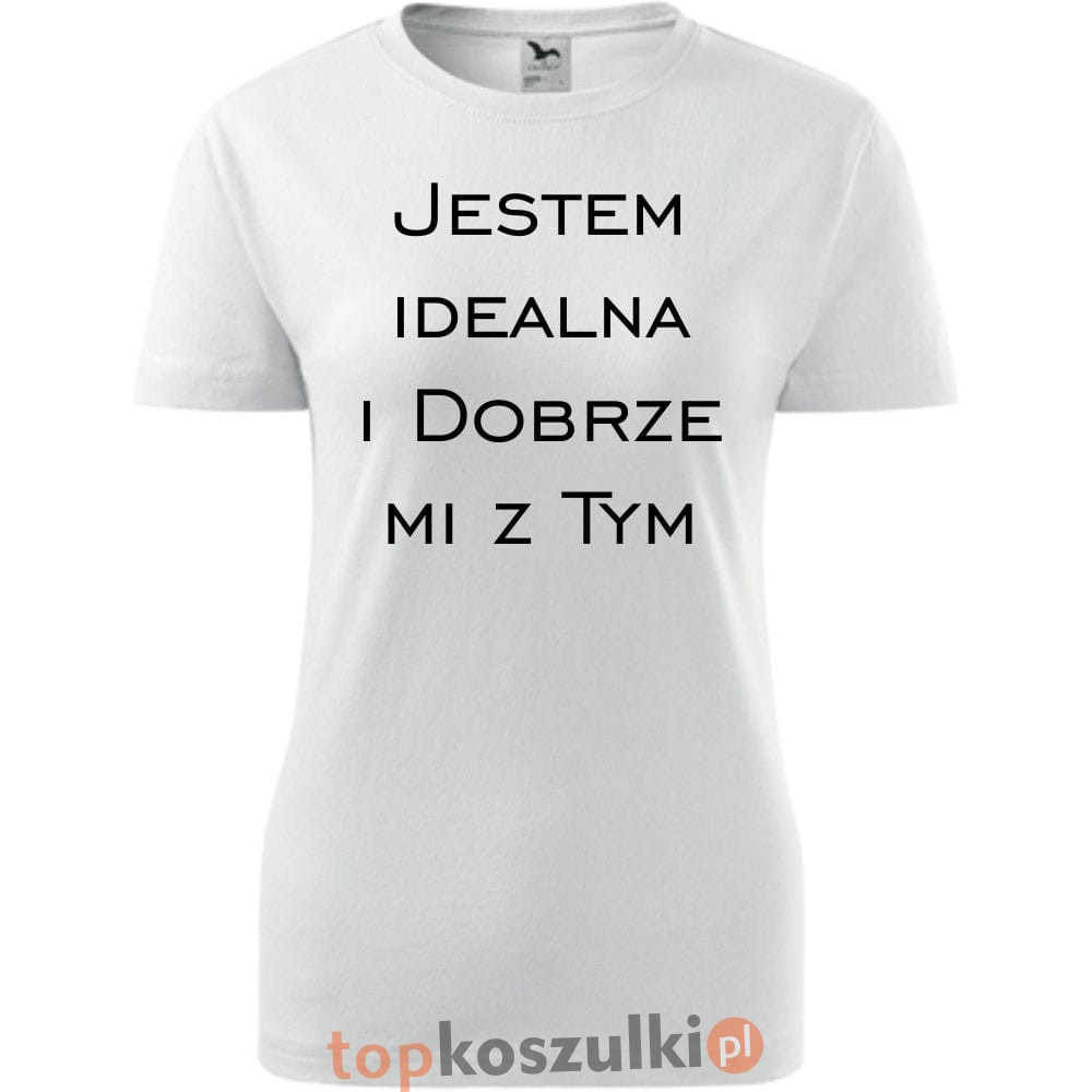 Damska koszulka taliowana - Jestem idealna i dobrze mi z tym